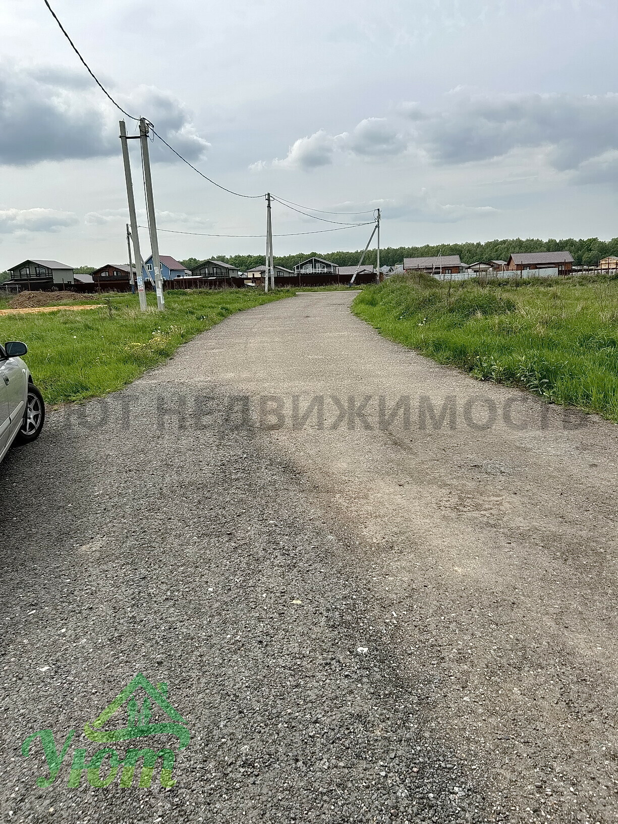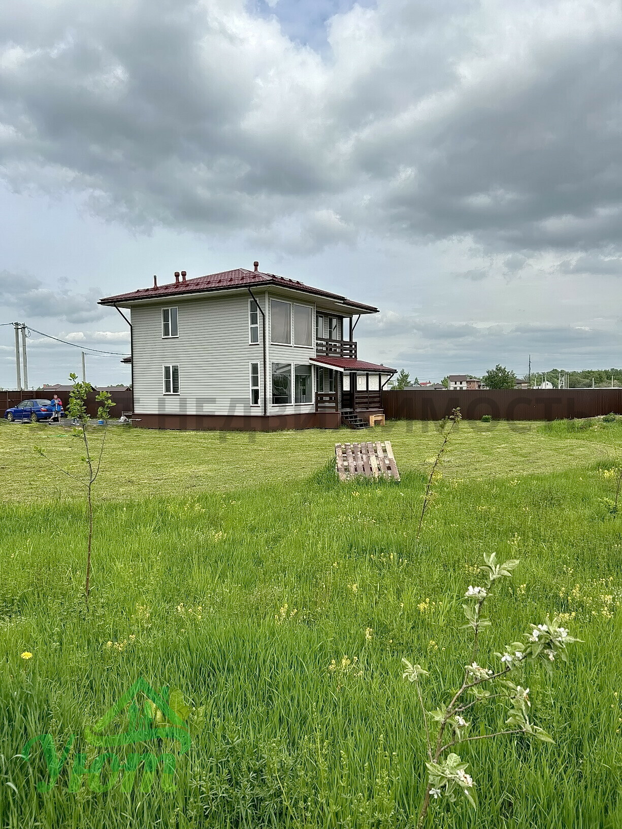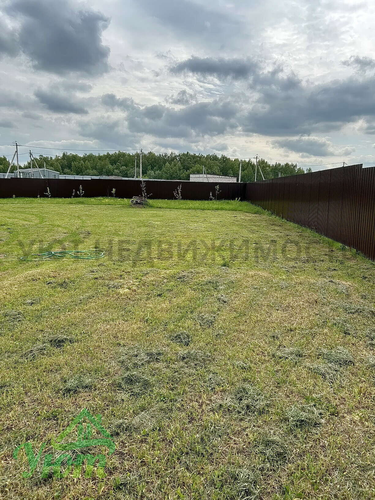 Участок – не квадрат, боковые части расходятся. Но из самых больших в поселке.На участке высажен газон и полтора десятка деревьев - яблоня, груша, слива, абрикос.
