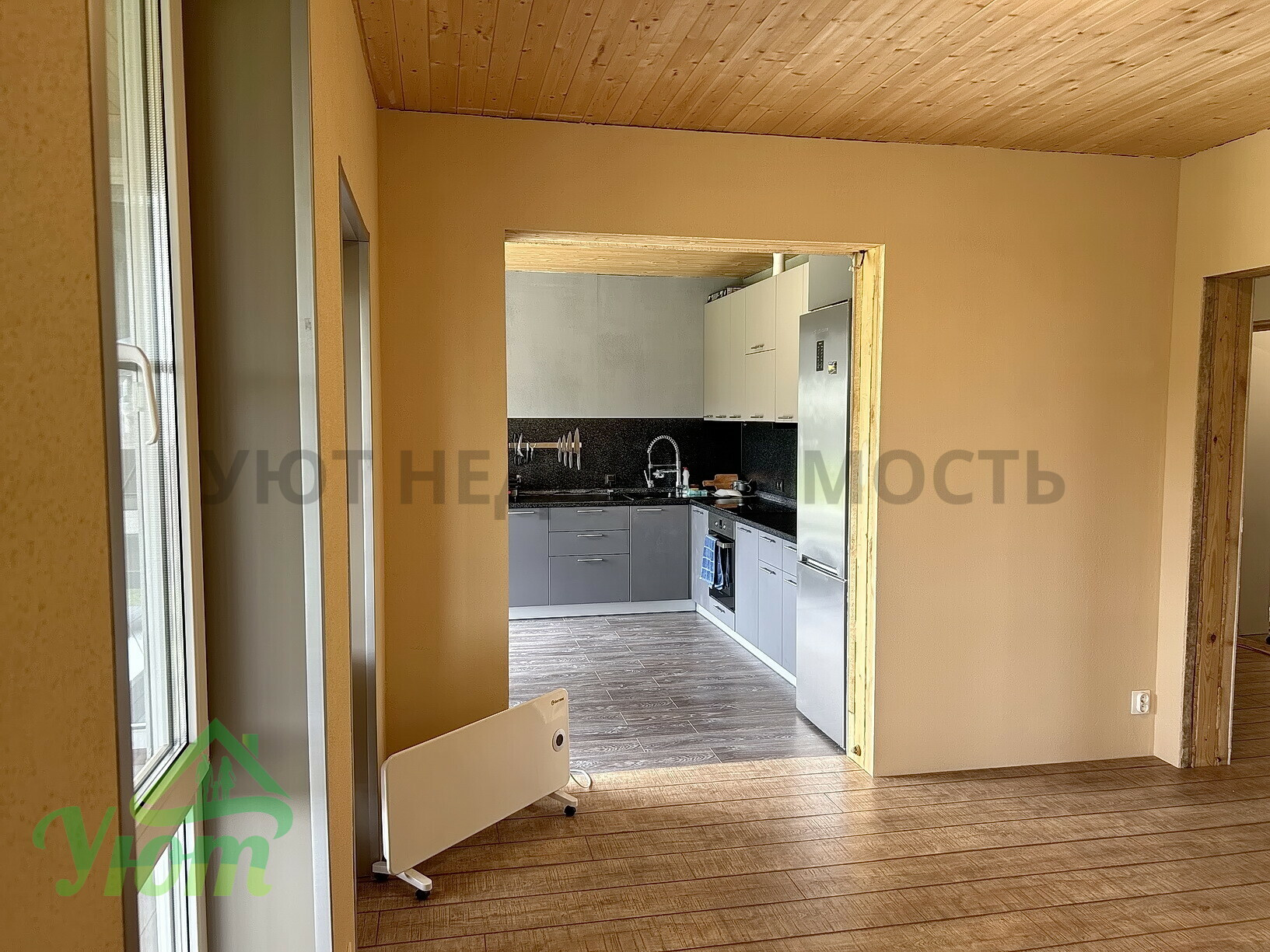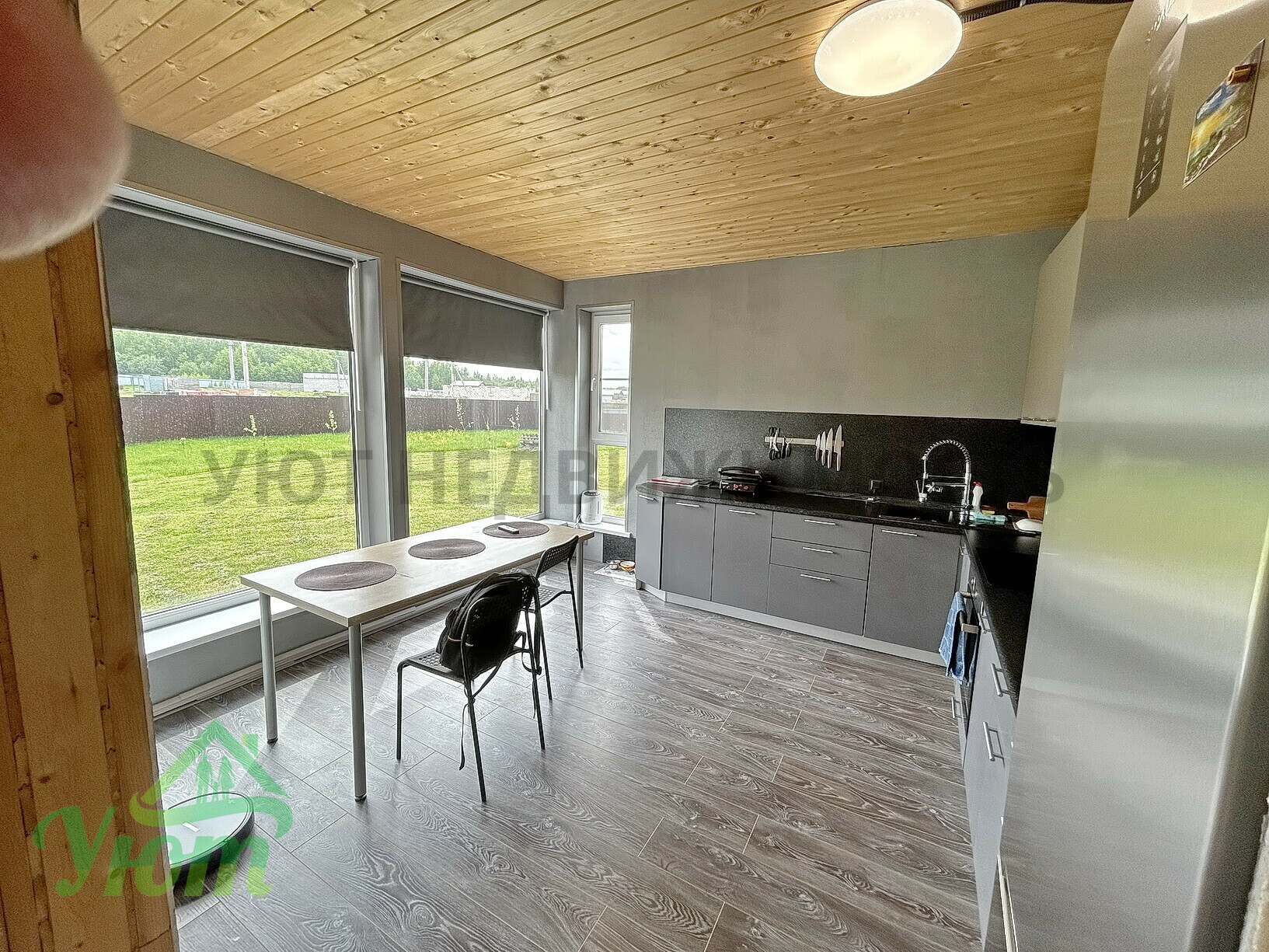Эт.1: студия-кухня 25м2 с панорамными окнами, спальня 12 м2, бойлерная, с/у, выход на веранду 12 м2.