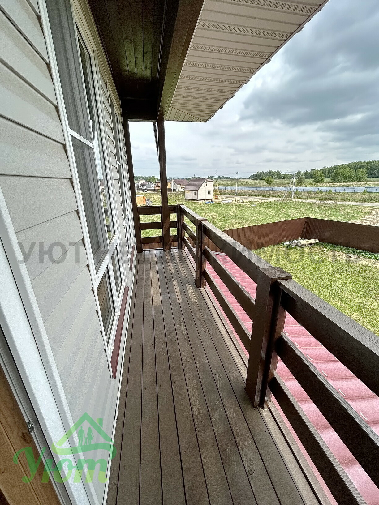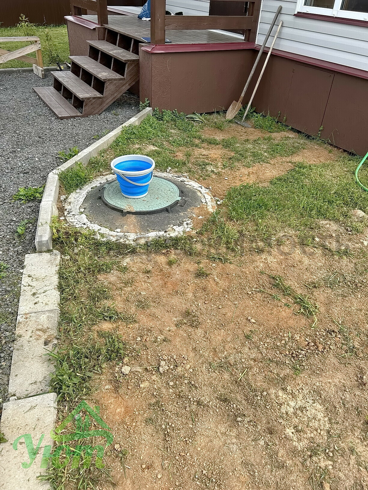 Перед домом и на территории отсыпка под парковку.