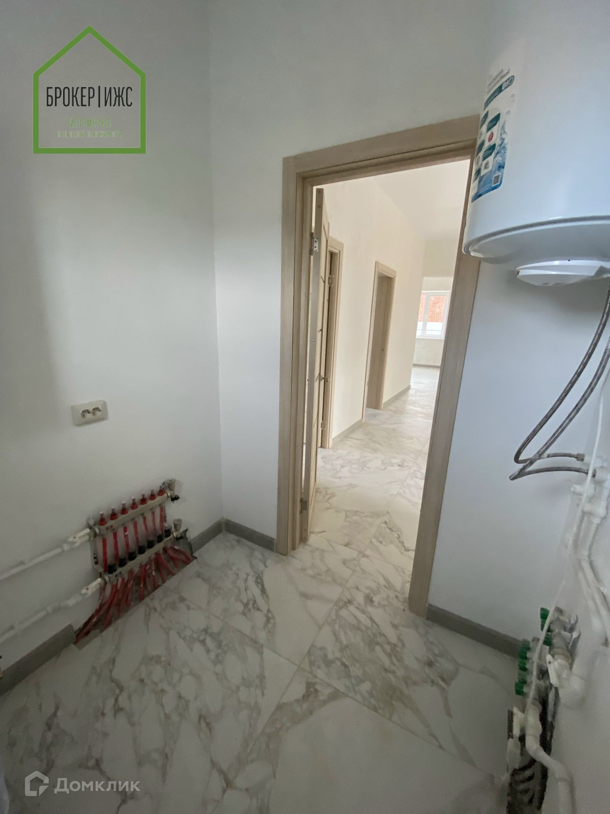 Просторная прихожая,справа сан узел, далее просторная кухня гостиная, прямо комната, узкий коридор слева, по обе стороны ещё две спальни, прямо котельная.