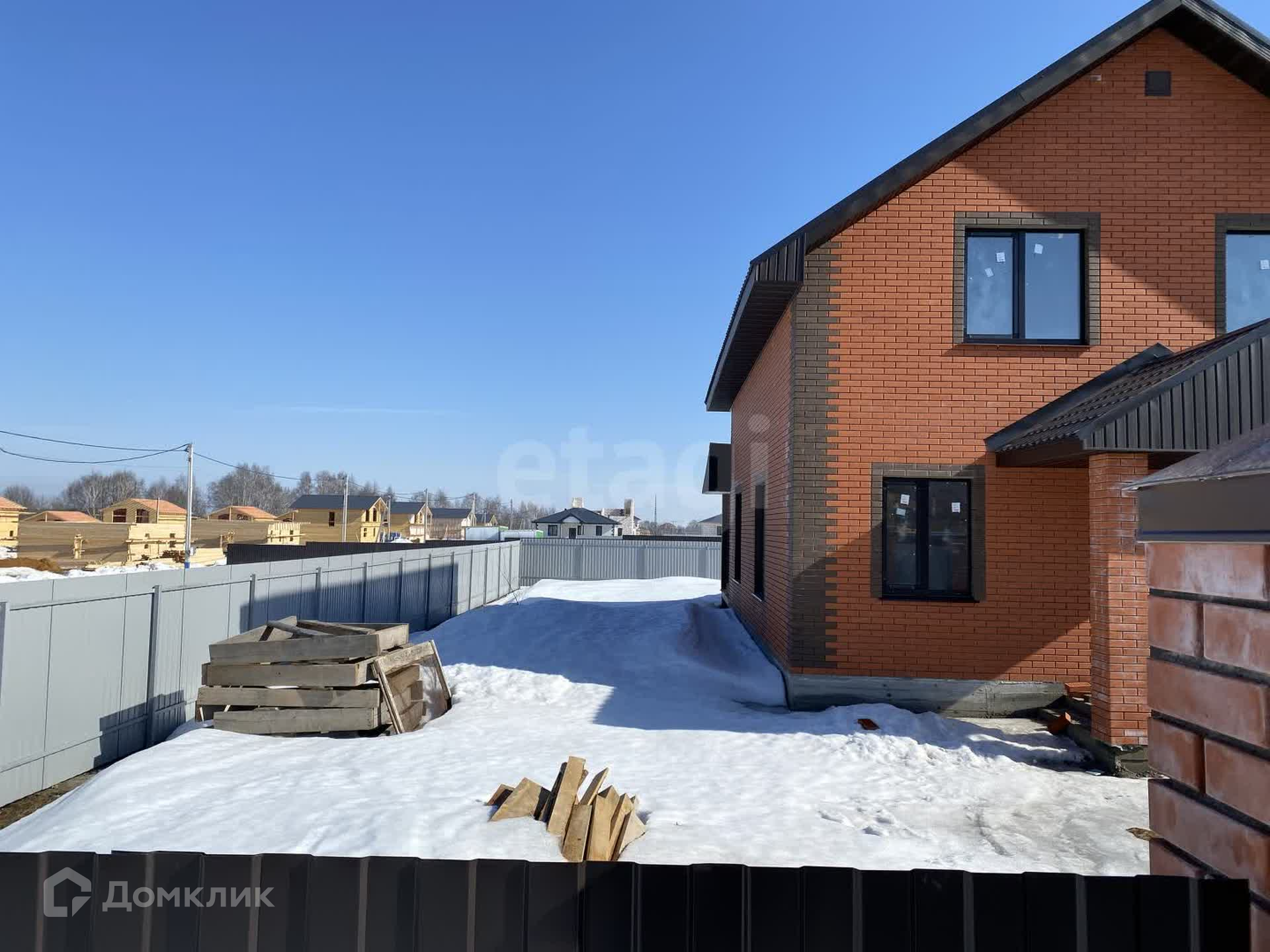 2-этажный каменный дом 150 кв.м., 4 спальни на ровном участке  правильной формы 7 соток в коттеджном поселке "Новая Европа". Участок огорожен забором из профнастила, распашные ворота + калитка.
