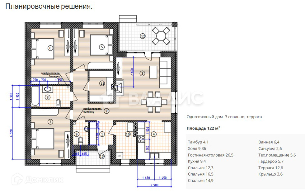 Общая площадь 122 м2