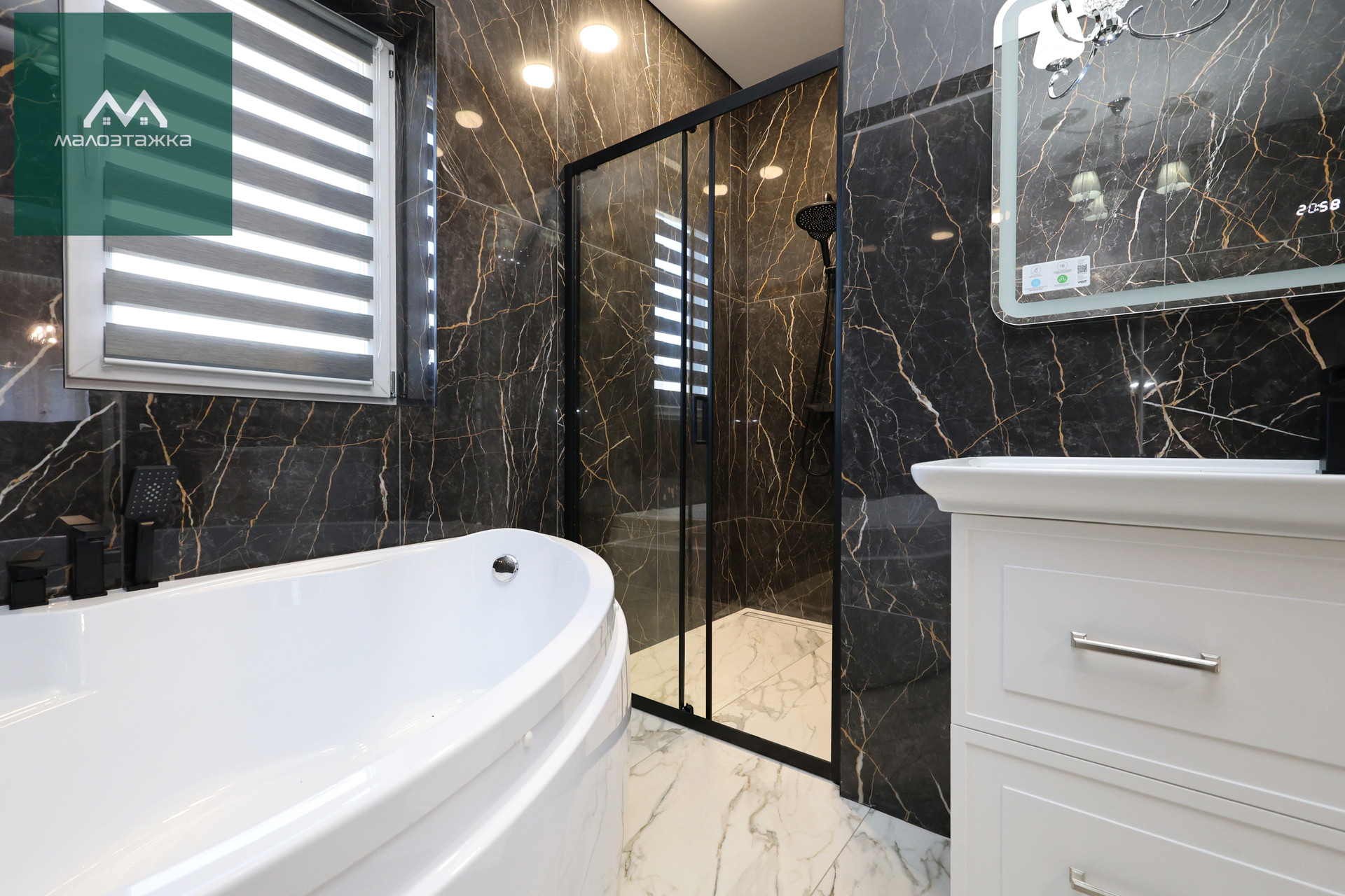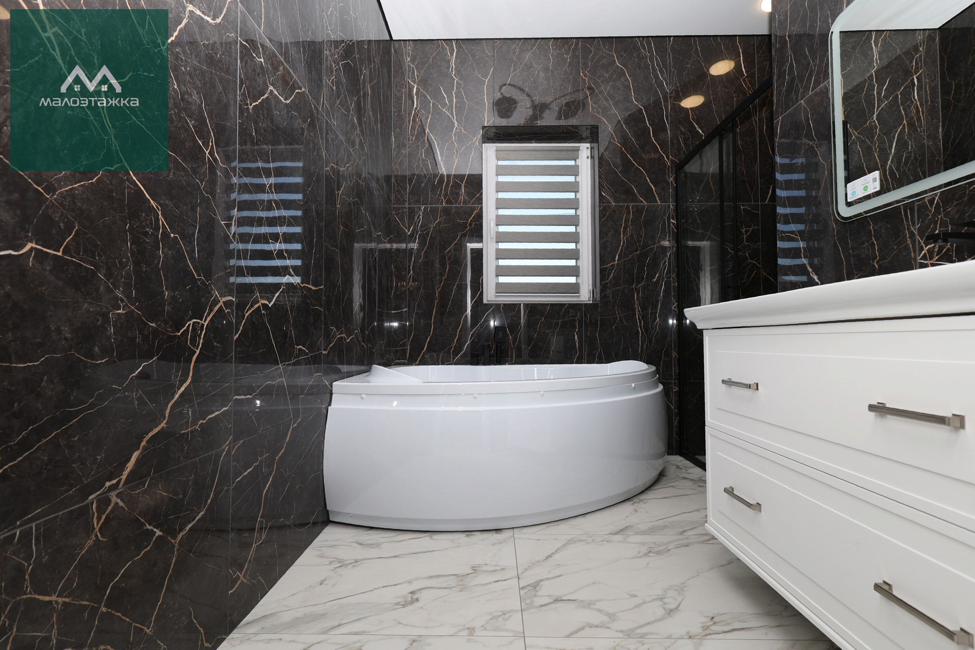 - Ванная комната с отдельной душевой и большой угловой ванной;