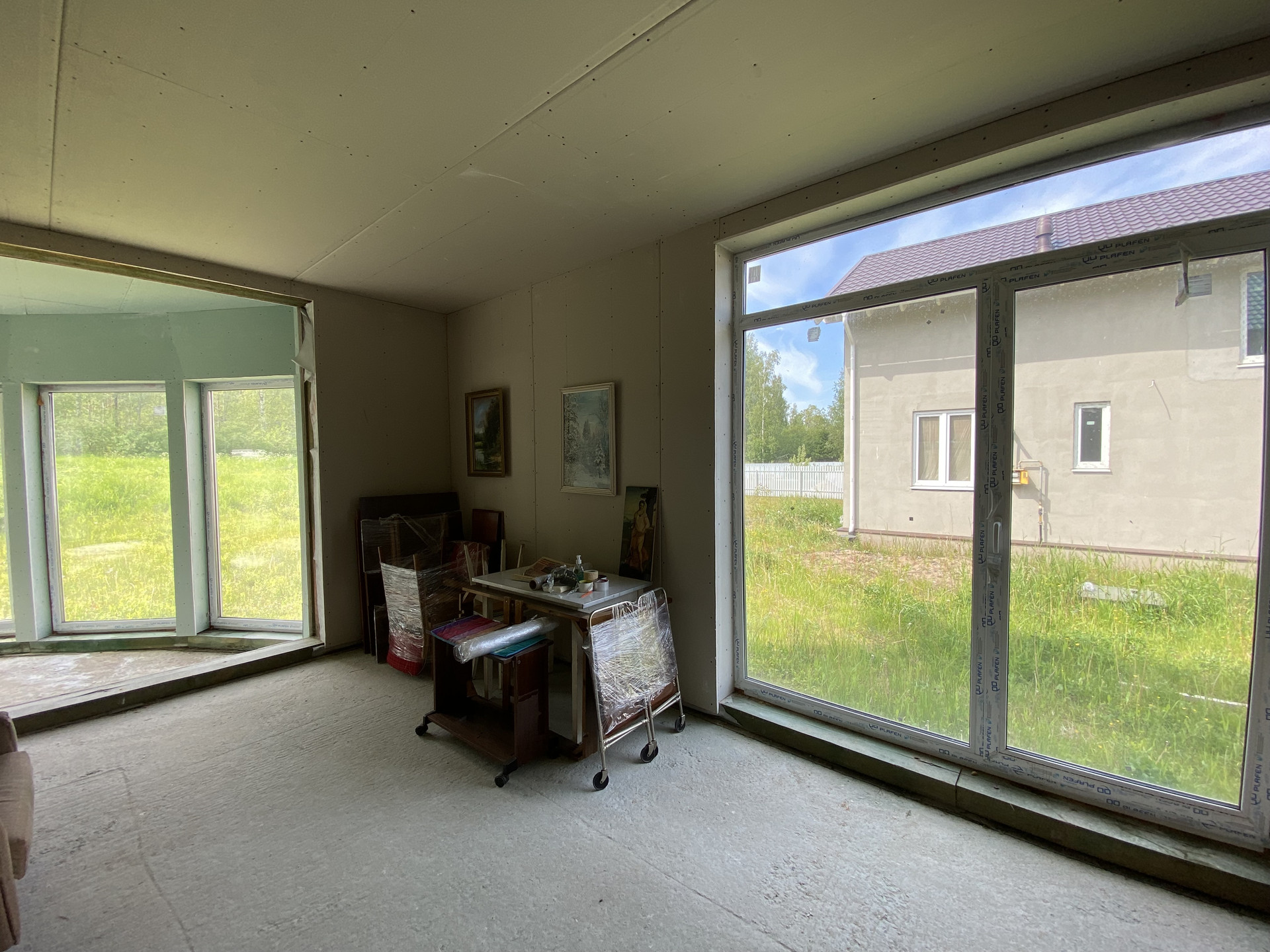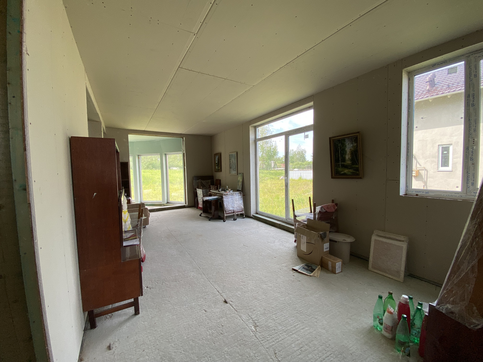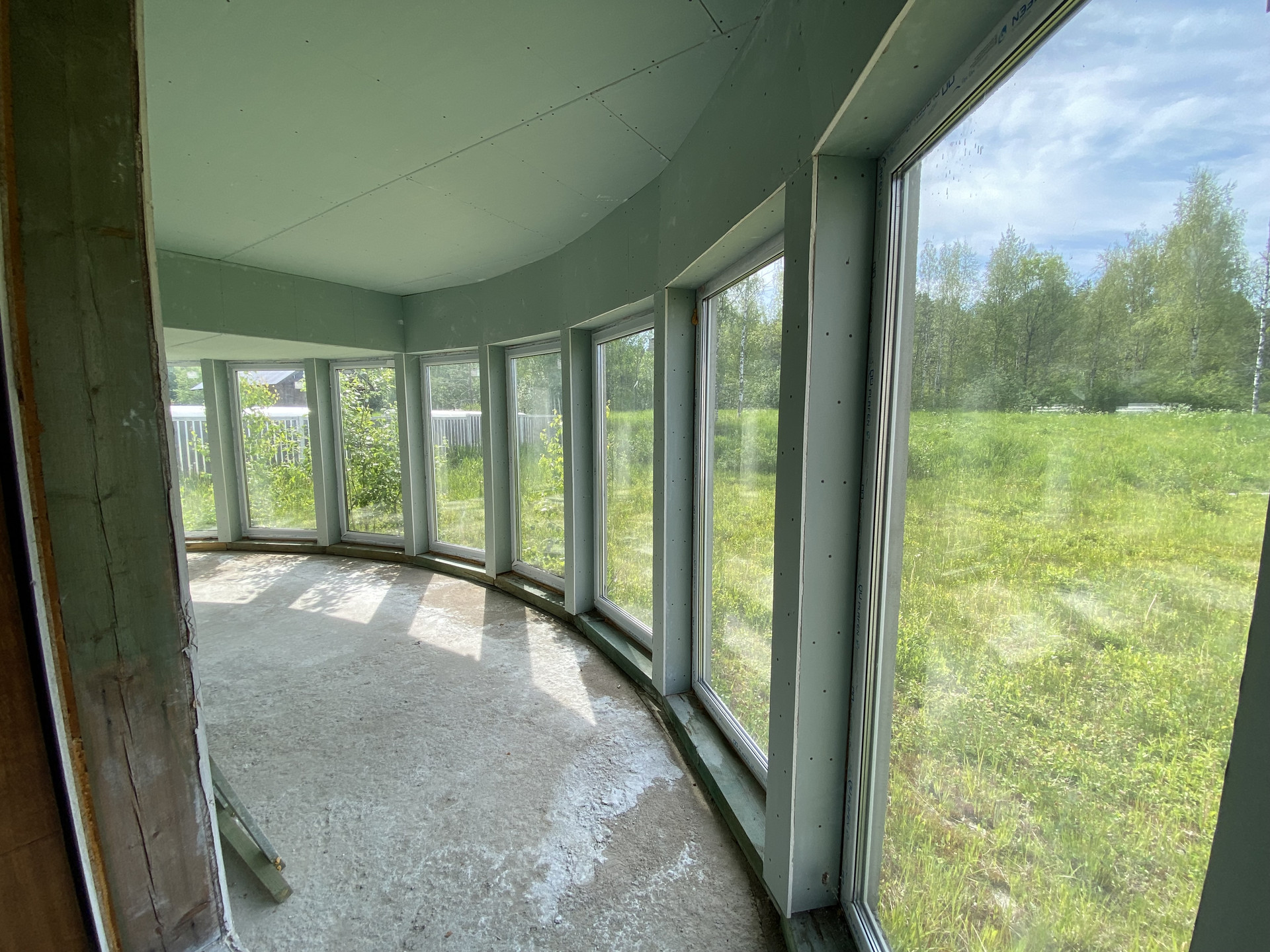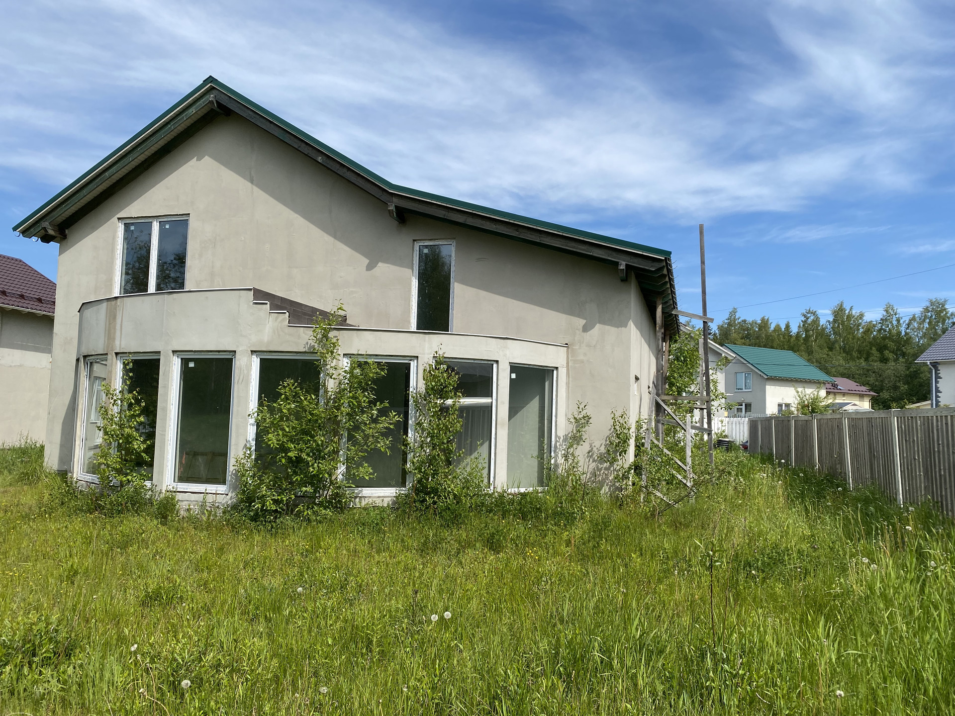Фундамент дома цельная бетонная подушка, кровля металочерепица. Технология изготовления дома GeenEx ecohause, полистиролбетон, конструкция по шведской технологии. Внутри каркас из толстых бревен квадратного сечения. На участок проведено центральное водоснабжение и газ. Установлен электрический счетчик, планируемая подача электроэнергии 15 кв. Локальная канализация, септик Топаз. Центральная ливнево-дренажная система. Дом без внутренней отделки.