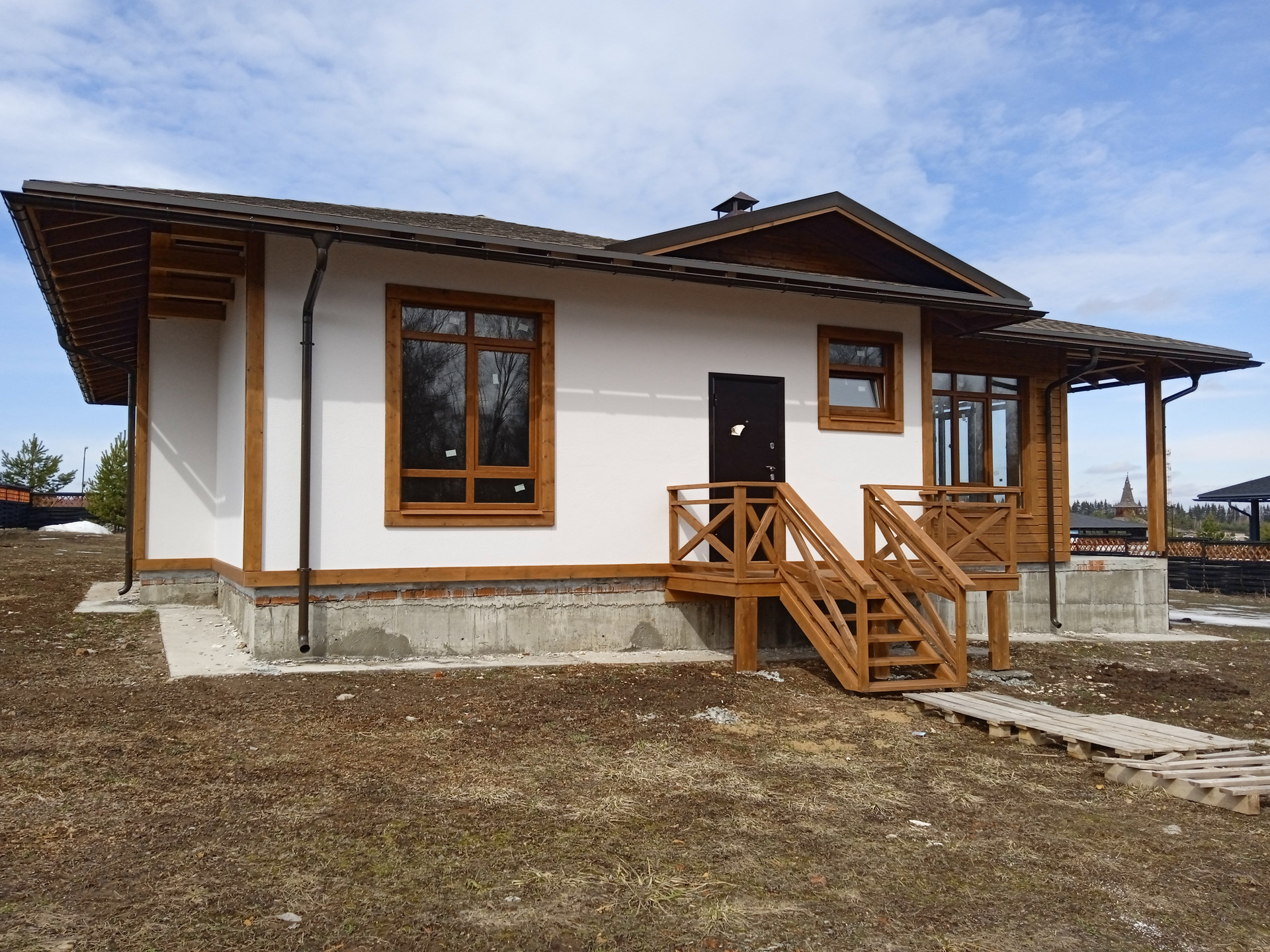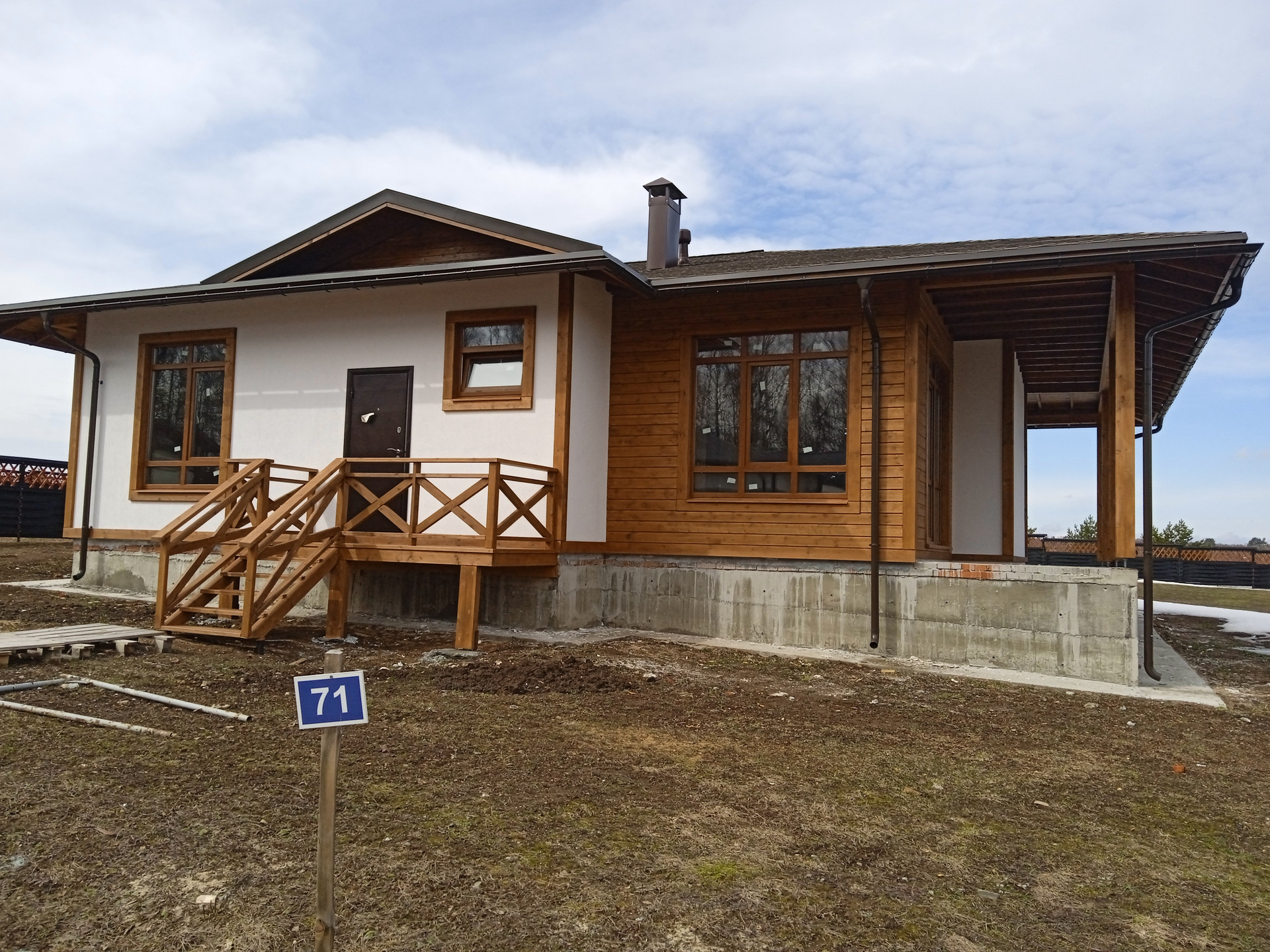 Продается готовый дом  71  от застройщика Капитан-club! Дом расположен в  поселке Новиково. Дом построен по проекту "Меридиан", одноэтажный, выполнен по канадской каркасной технологии из СИП панелей (очень теплый), кровля - Shinglas, установлены 2-х камерные стеклопакеты КВЕ (профиль 70), выполнена наружная отделка, все центральные коммуникации введены в дом. Участок 17,6 соток, правильной формы без уклона. Документы полностью готовы к сделке. Возможна ипотека. Расположение объекта - в непосредственной близости ко всем действующим объектам инфраструктуры поселка. Приобретая дом в поселке Новиково от Капитан-club, Вы покупаете больше, чем просто дачу! Инфраструктура поселка включает в себя все для жизни, здоровья, спорта, комфорта, безопасности и счастливого детства!