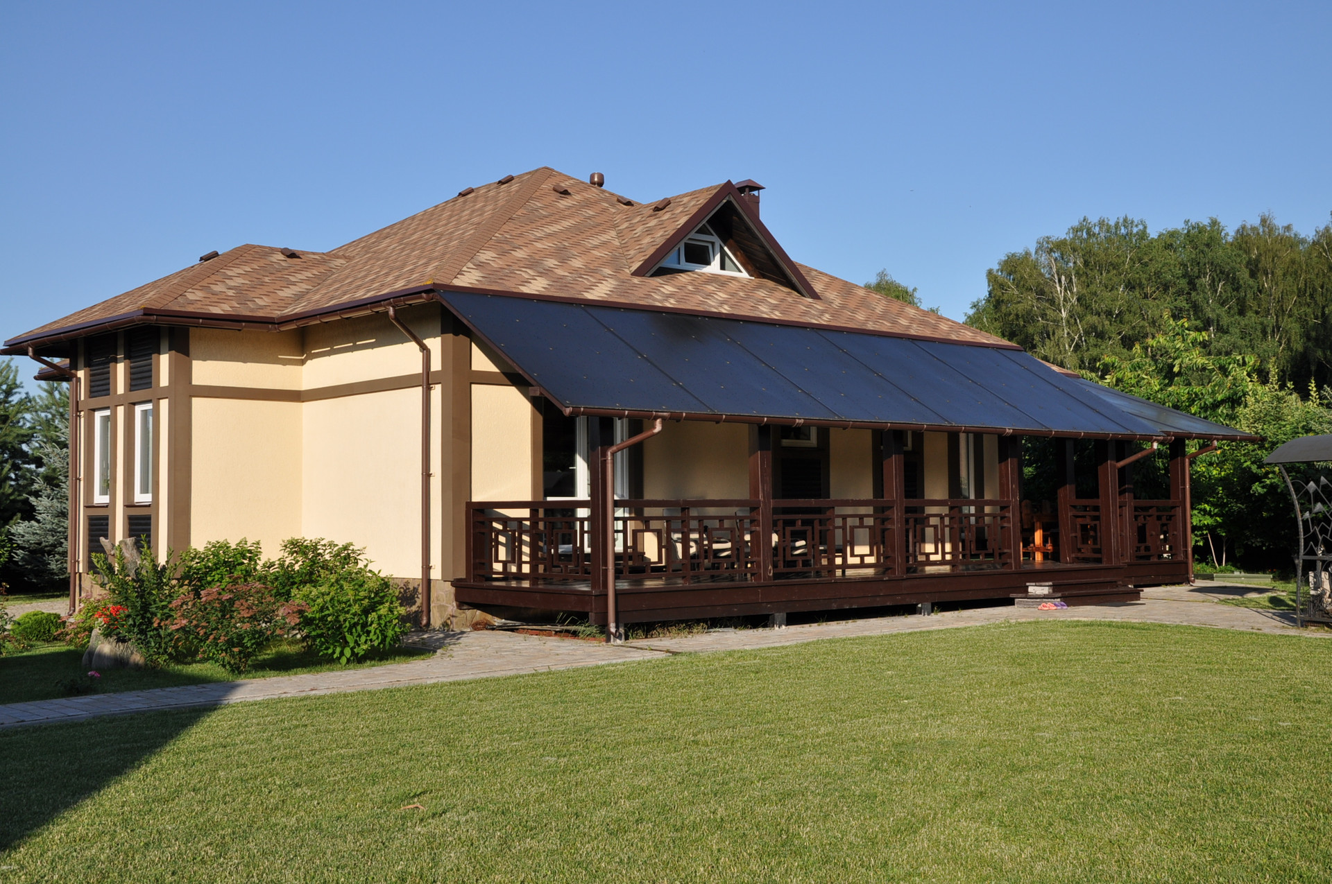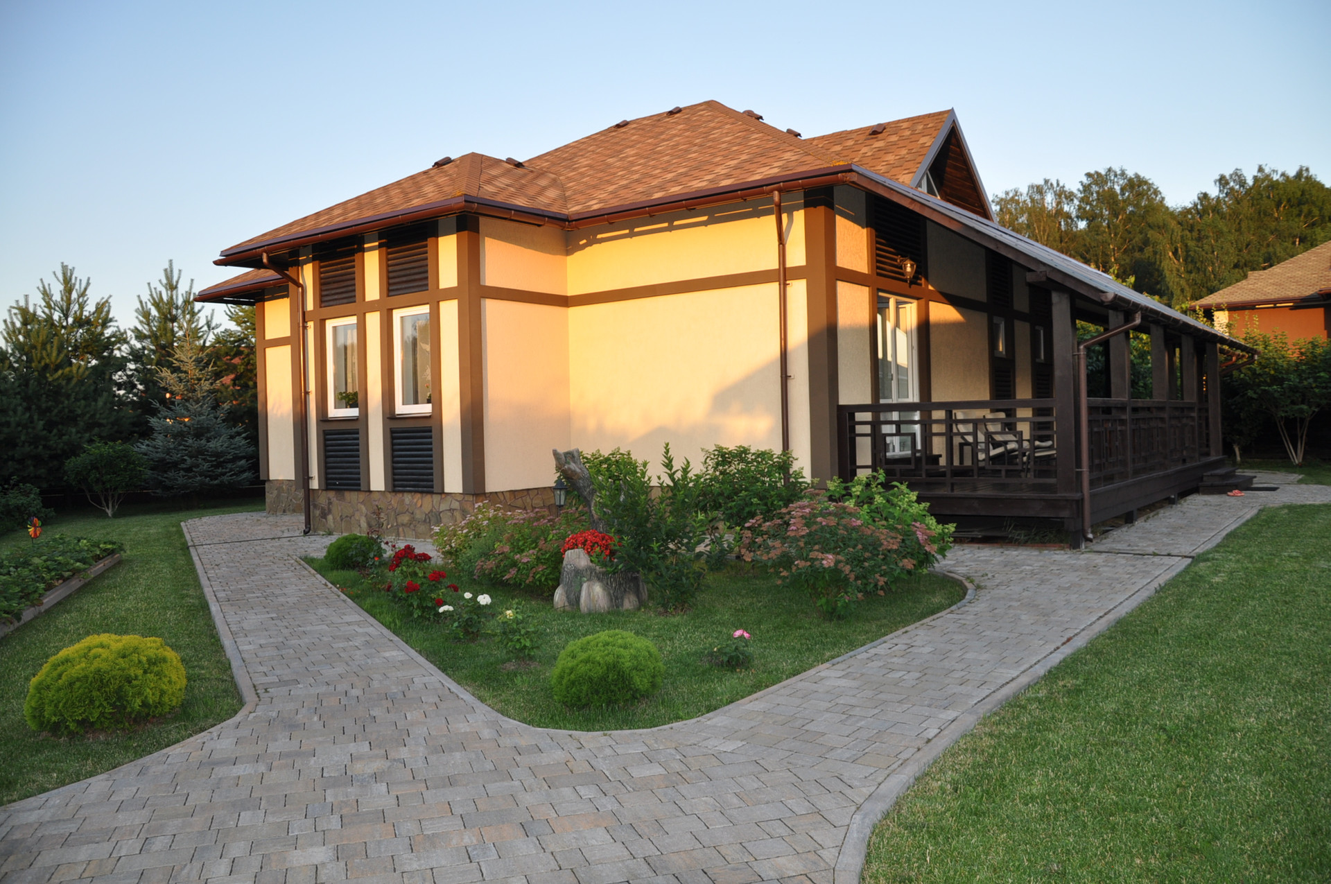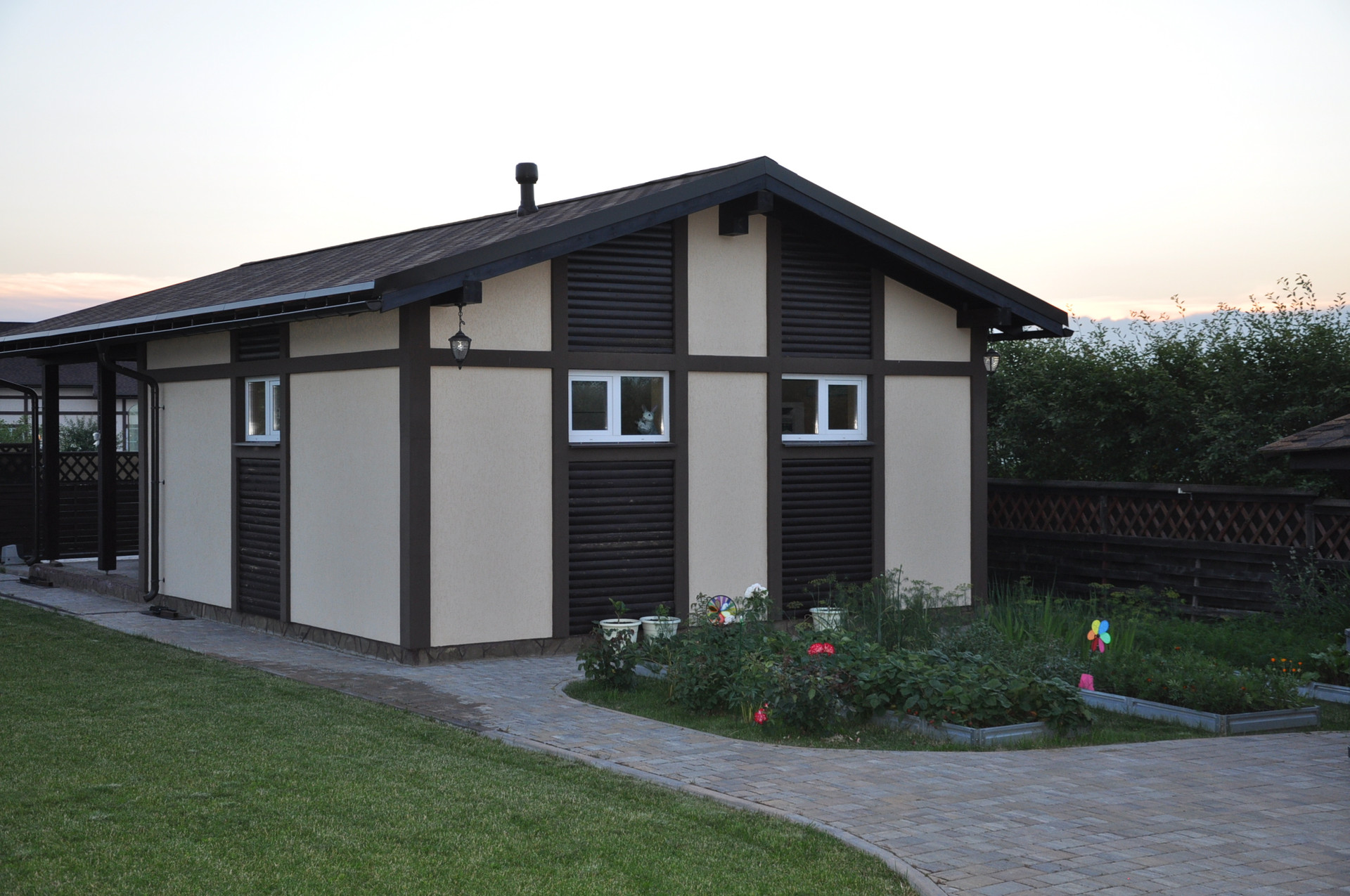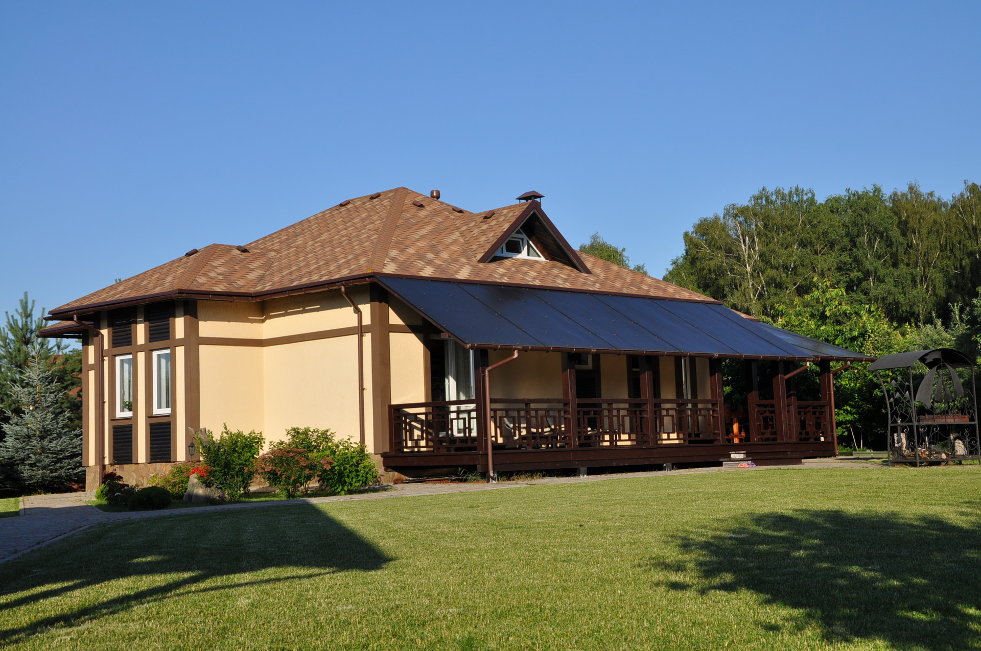 Материал использованый для строительства - газосиликатные блоки, утепление, декоративная штукатурка, окна пвх, мягкая кровля.