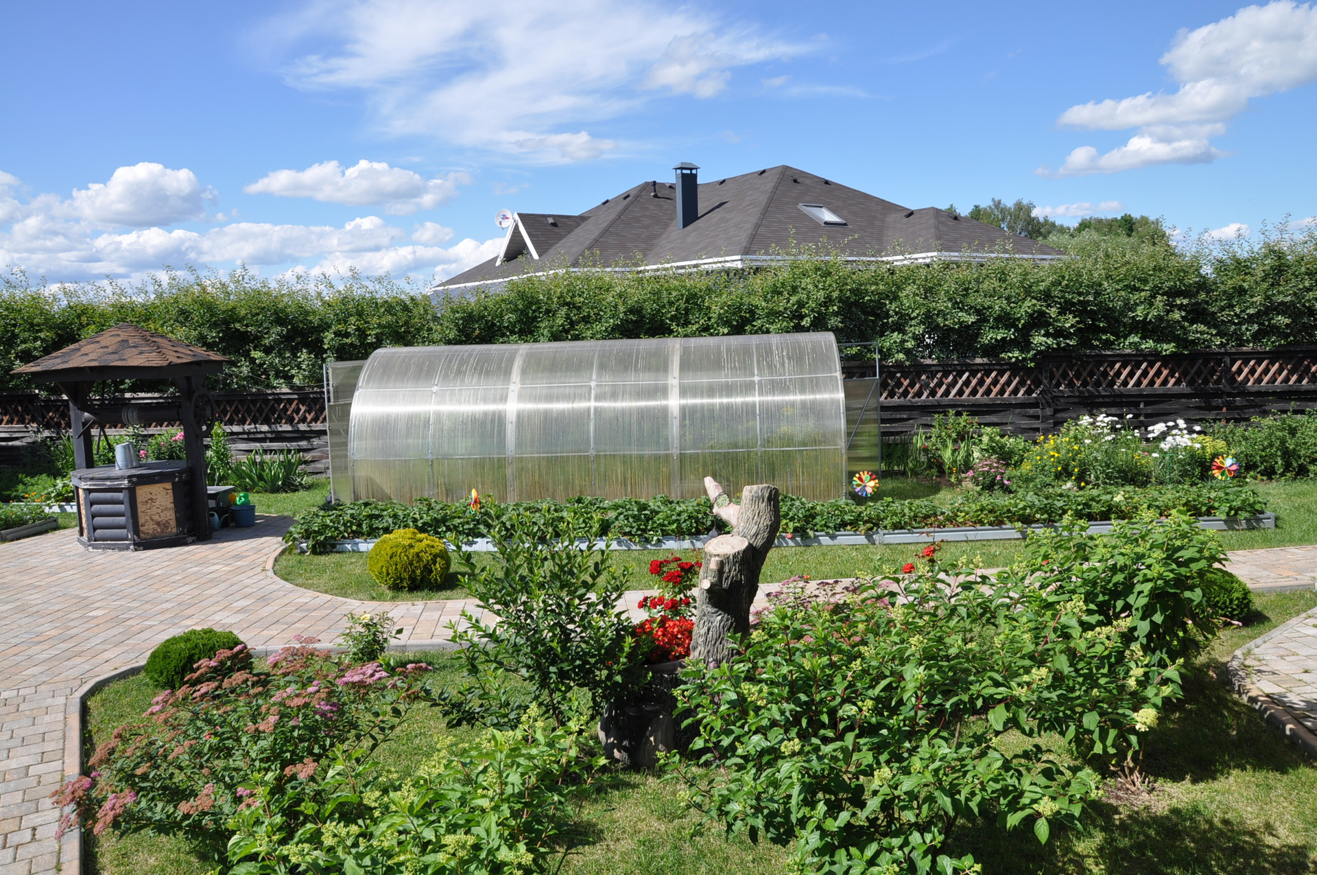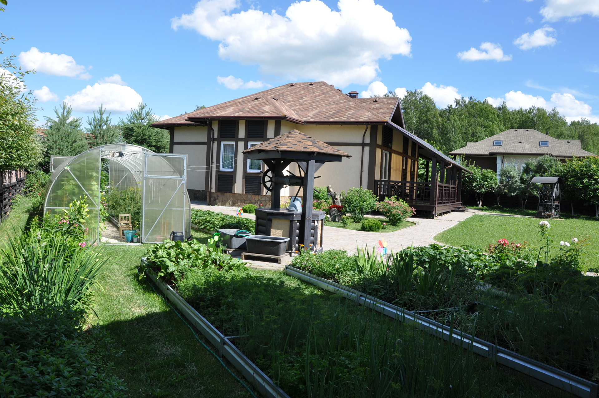 Участок на 100% охвачен автоматической системой полива (в т.ч. теплица). Оборудование- Италия, США.