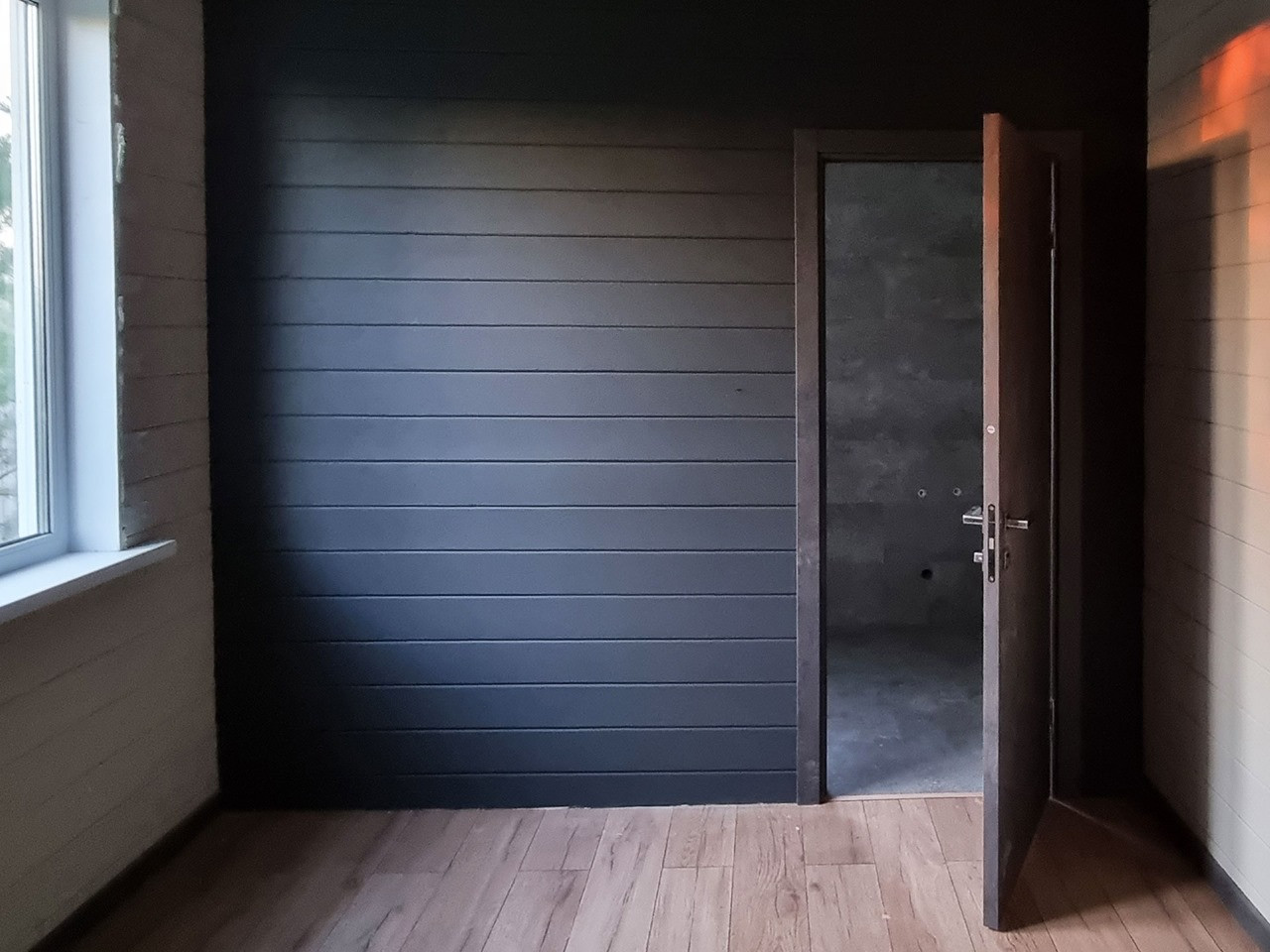 — Внешняя отделка стен и подбоя: сайдинг Docke, дерево
