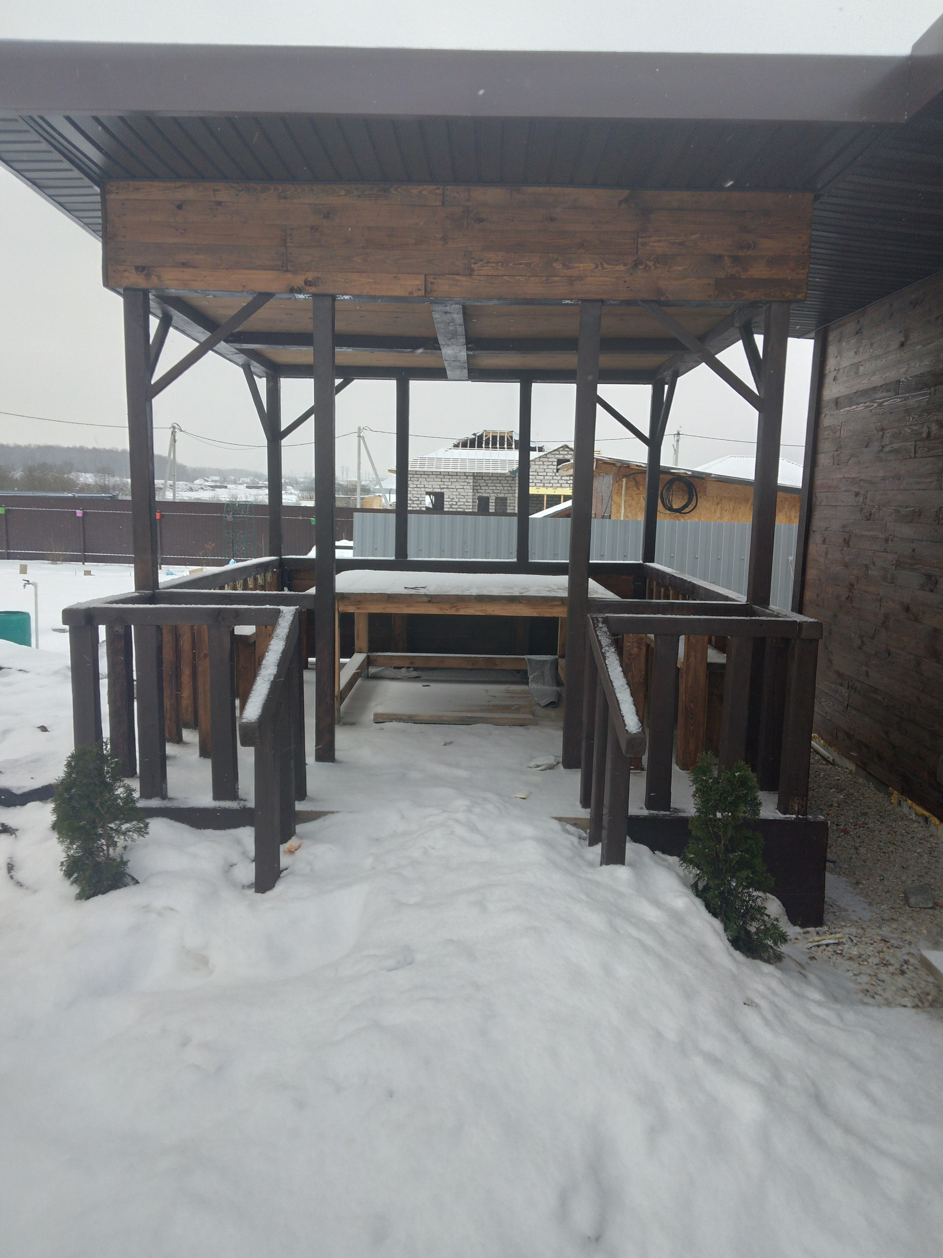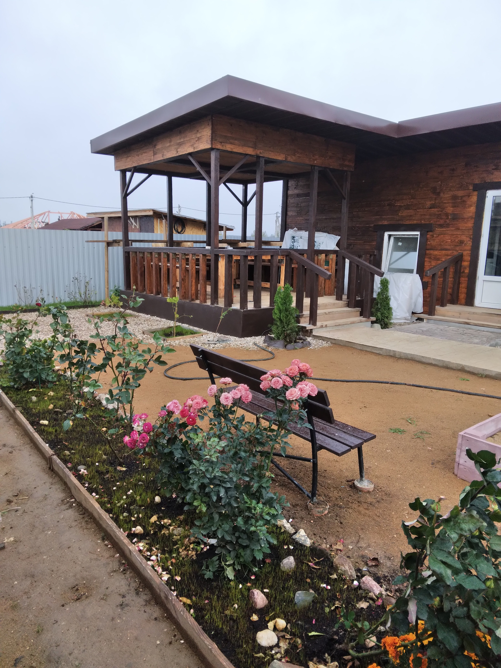 На участке построена баня (3,2 х 9) м. с комнатой отдыха, парилкой, душевой, туалетом из бруса 150 х150, окна и двери пластик и стекло. Хозблок (3,2 х7,2)м. из бруса 100 х100, с двумя комнатами по 9 кв., окна и двери пластиковые. Беседка (3,2 х3,2)м., под беседкой колодец с питьевой водой, вода проверенная. В беседке- пол, лавки, стол изготовлены из доски на 50., от беседки до хозблока и дома и бани, дорожки, есть посадки- три куста винограда, три куста смородины, две сливы, восемь кустов малины, ежевика, восемь кустов роз, туи, декоративные кустарники, все делали для себя, с любовью.
