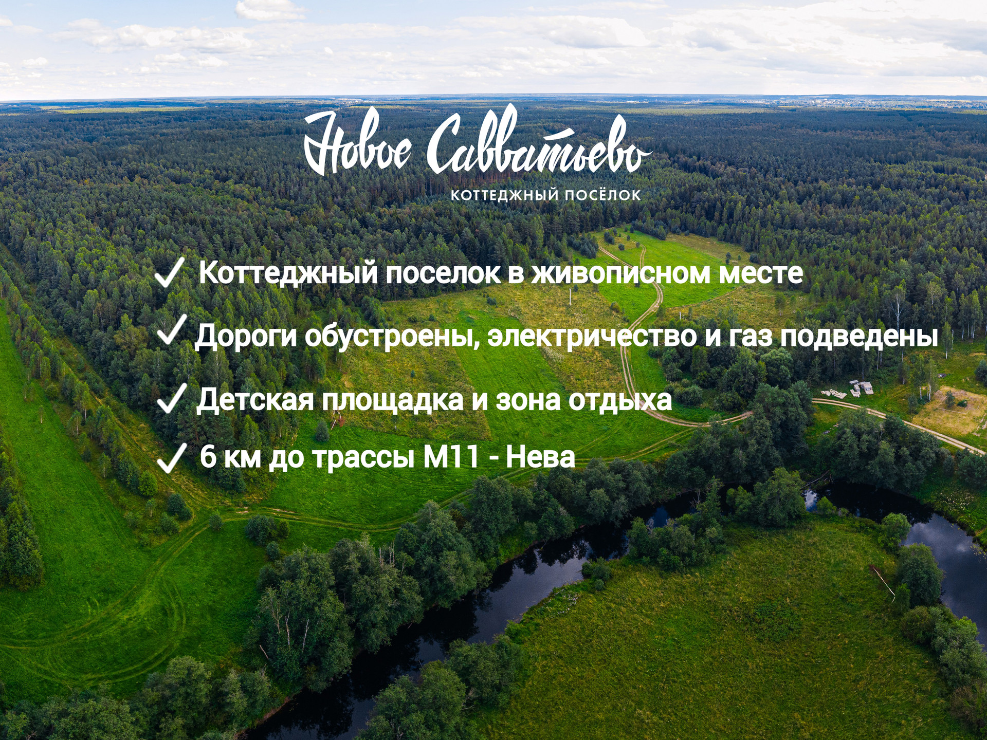 - Коттеджный поселок граничит с памятником природы «Монастырский лес» - чистейшая природная среда, больше застройки не будет.