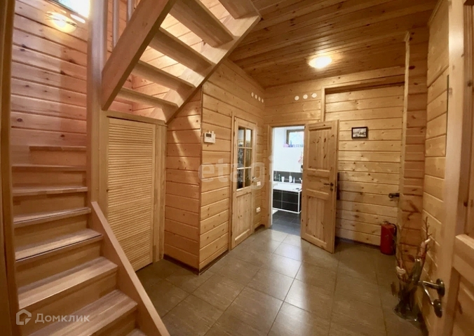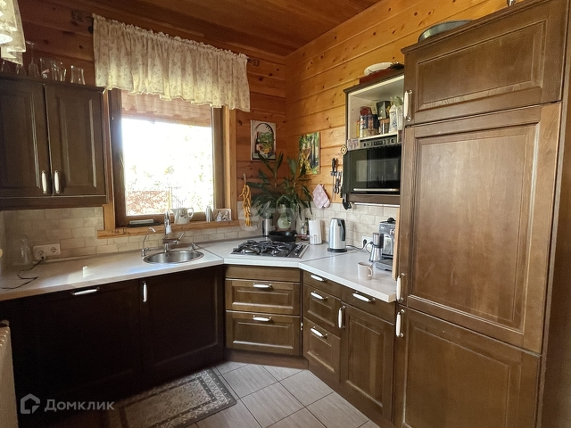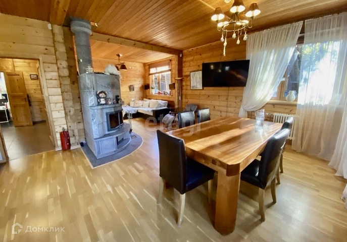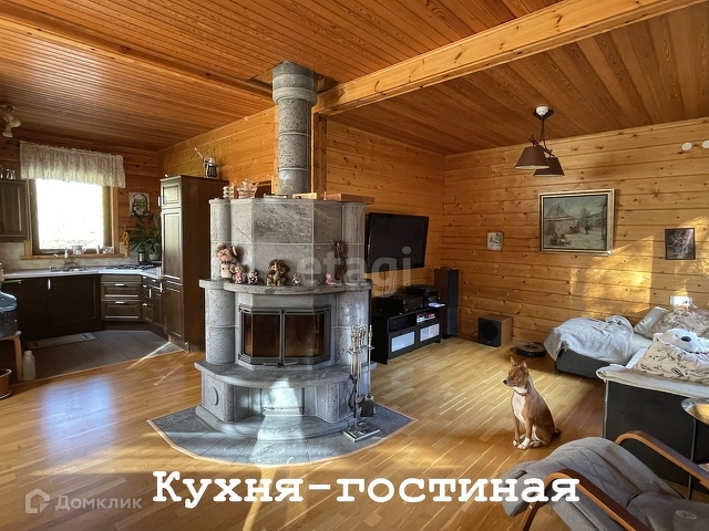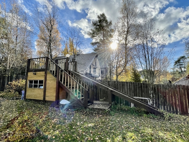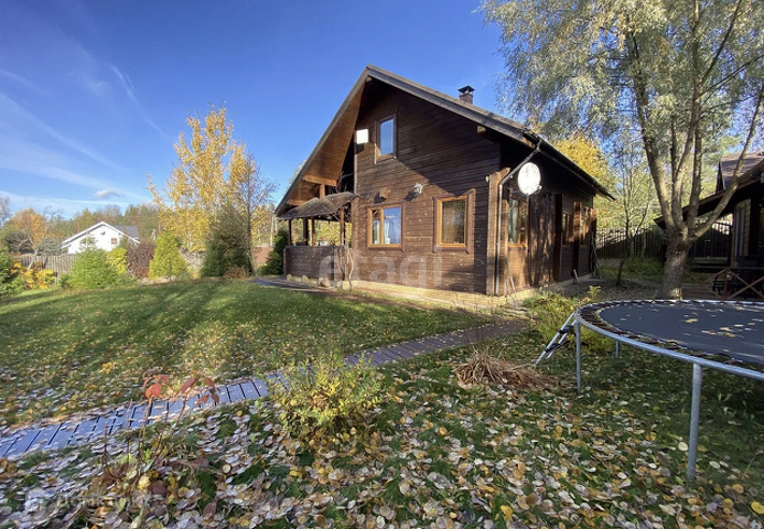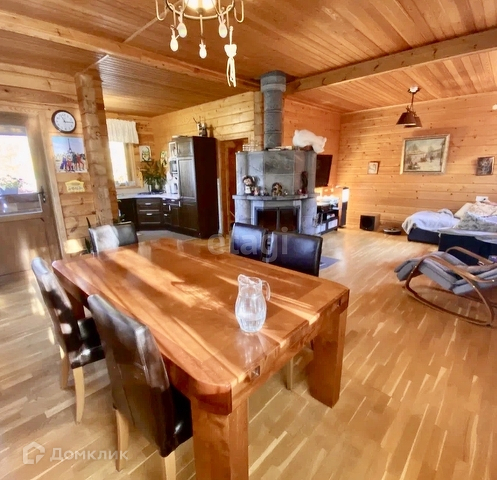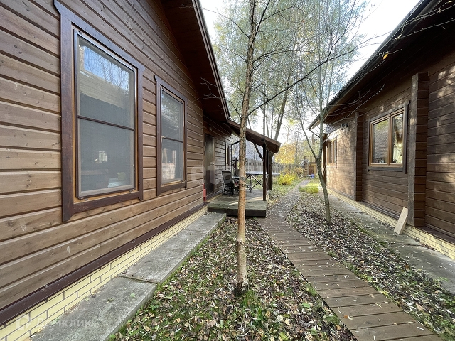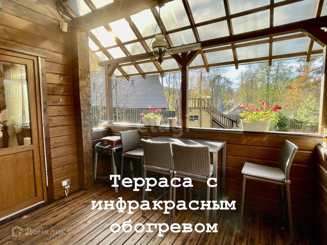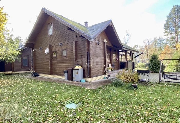 Основной дом 156 м. Фундамент монолитная плита, стены клееный брус 180х185 мм. Полы паркетная доска, кафельная плитка с подогревом, в комнатах пробковое покрытие. В гостиной 37,2 м установлен камин Tulikivi (Финляндия), музыкальный центр Pioneer, ТВ. На кухне 6,3 м установлен кухонный гарнитур Икея со встроенной техникой Siemens, Whirpool. На первом этаже одна спальня 13,3 м, санузел 5,8 м, электрическая сауна 3,6 м, просторный холл 15 м. Выход на террасу 17,6 м с инфракрасным обогревом. Внутри все стены в доме отделаны имитацией бруса. Качественные стеклопакеты имитация дерева, жалюзи деревянные.