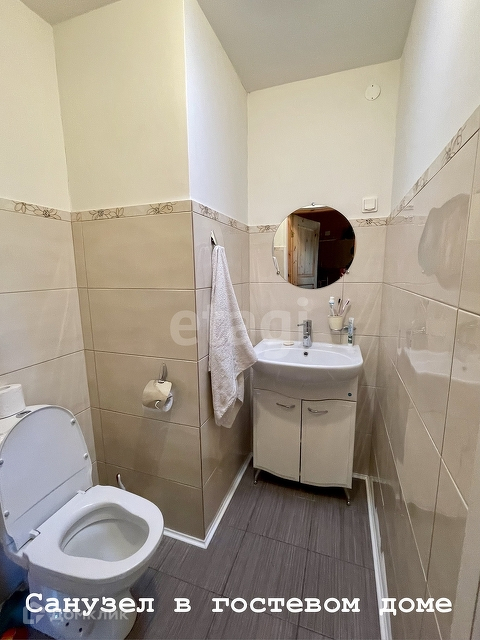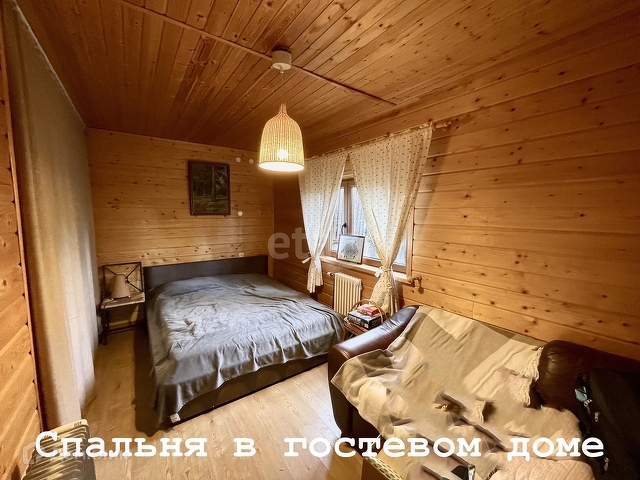 В гостевом доме 54 м одна спальня 14,7 м, кухня-гостиная 12,9 м, санузел 2 м, душевая 3,6 м, дровяная баня 7,7 м. В комнате постелен ламинат, в остальных помещениях кафельная плитка. Мастерская 8,1 м с отдельным входом, котельная 5,4 м с отдельным входом.