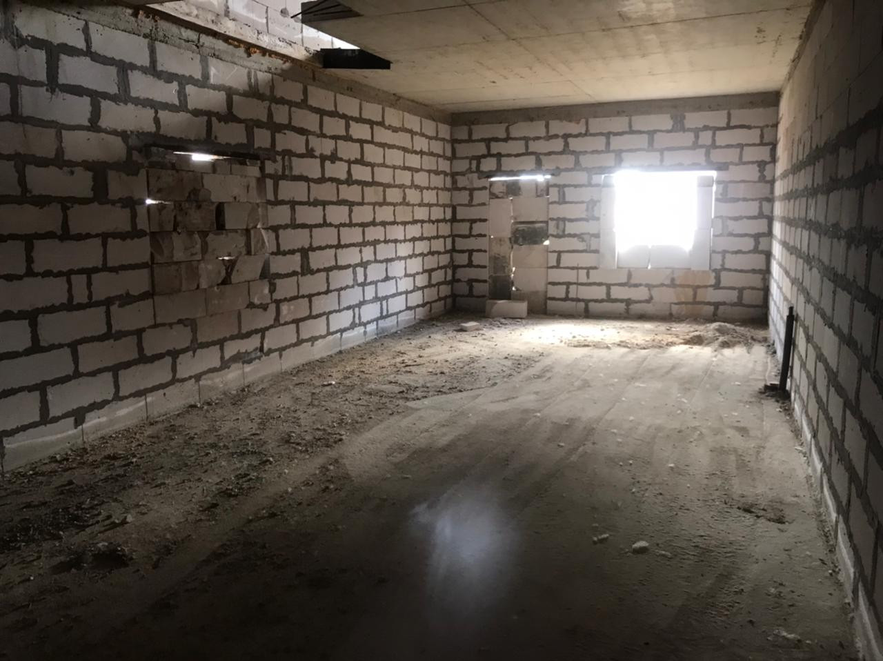 Газосиликатный блок, монолитный фундамент свайно-ленточный, бетонные перекрытия.