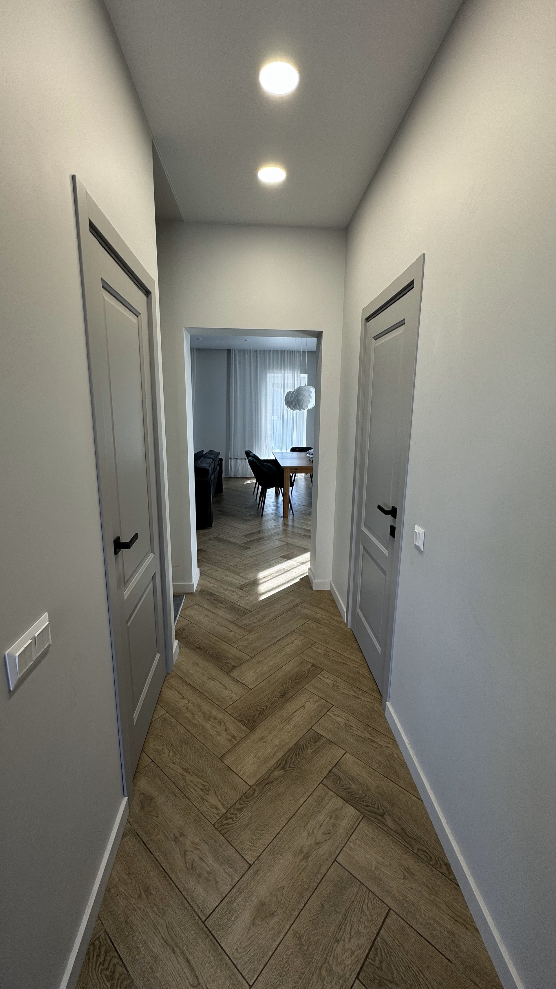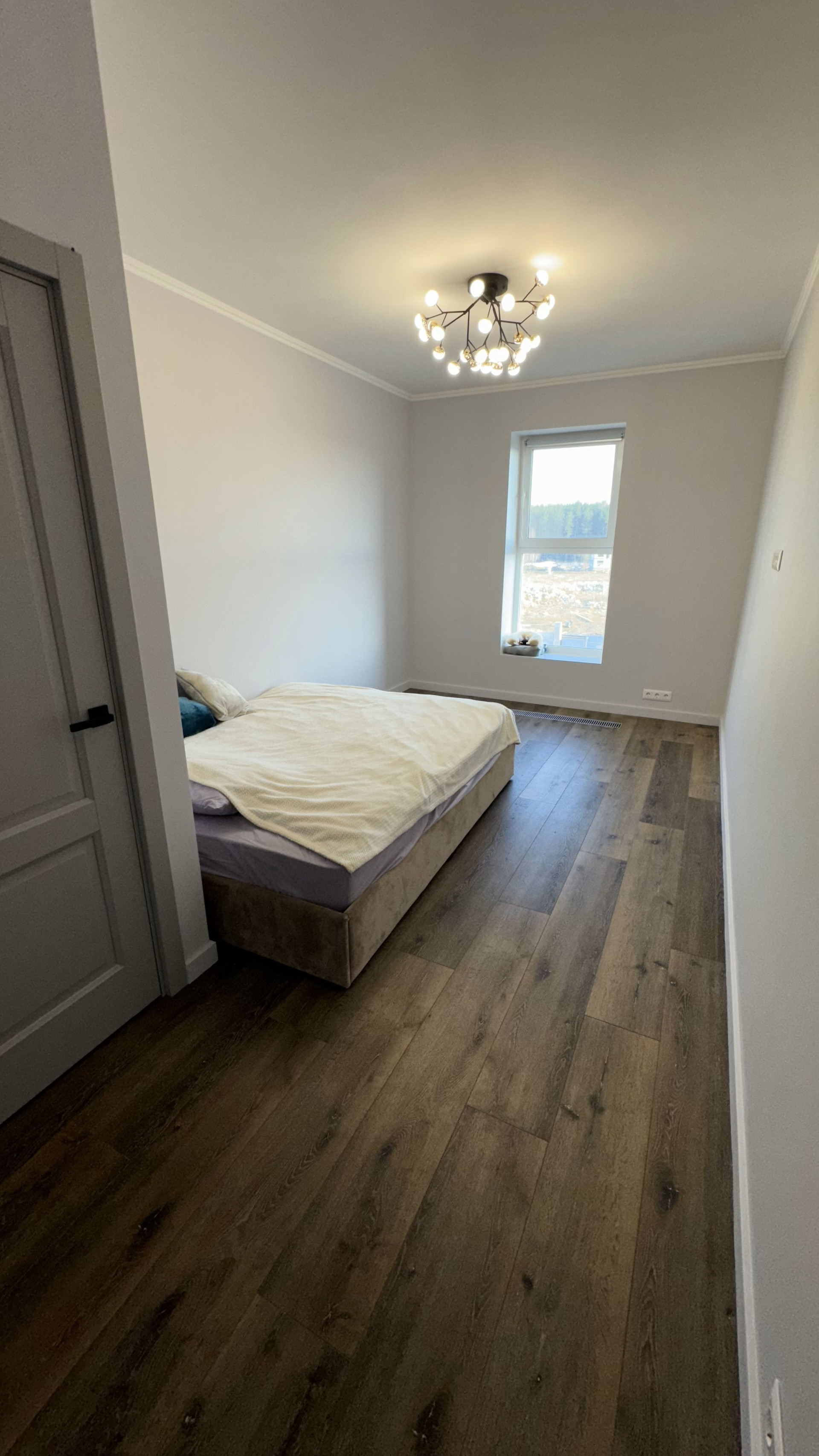 По всему полу на втором этаже расстелен кварц-винил AquaFloor, который не боится воды, максимально износостойкий и нет ни одного стыка-пылесборника между комнатами))