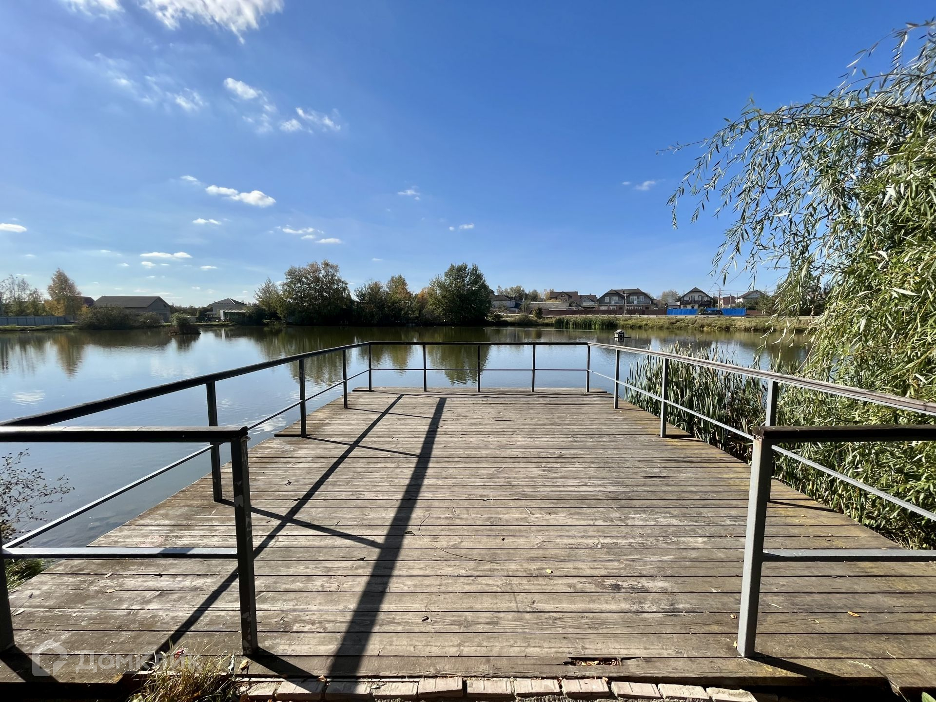 Участок прямоугольной формы, ровный, крайний к лесу. Участок расположен на отдельной улице от поселка, соседи только справа и слева. Полностью готов под строительство. С прямым выходом к пруду.