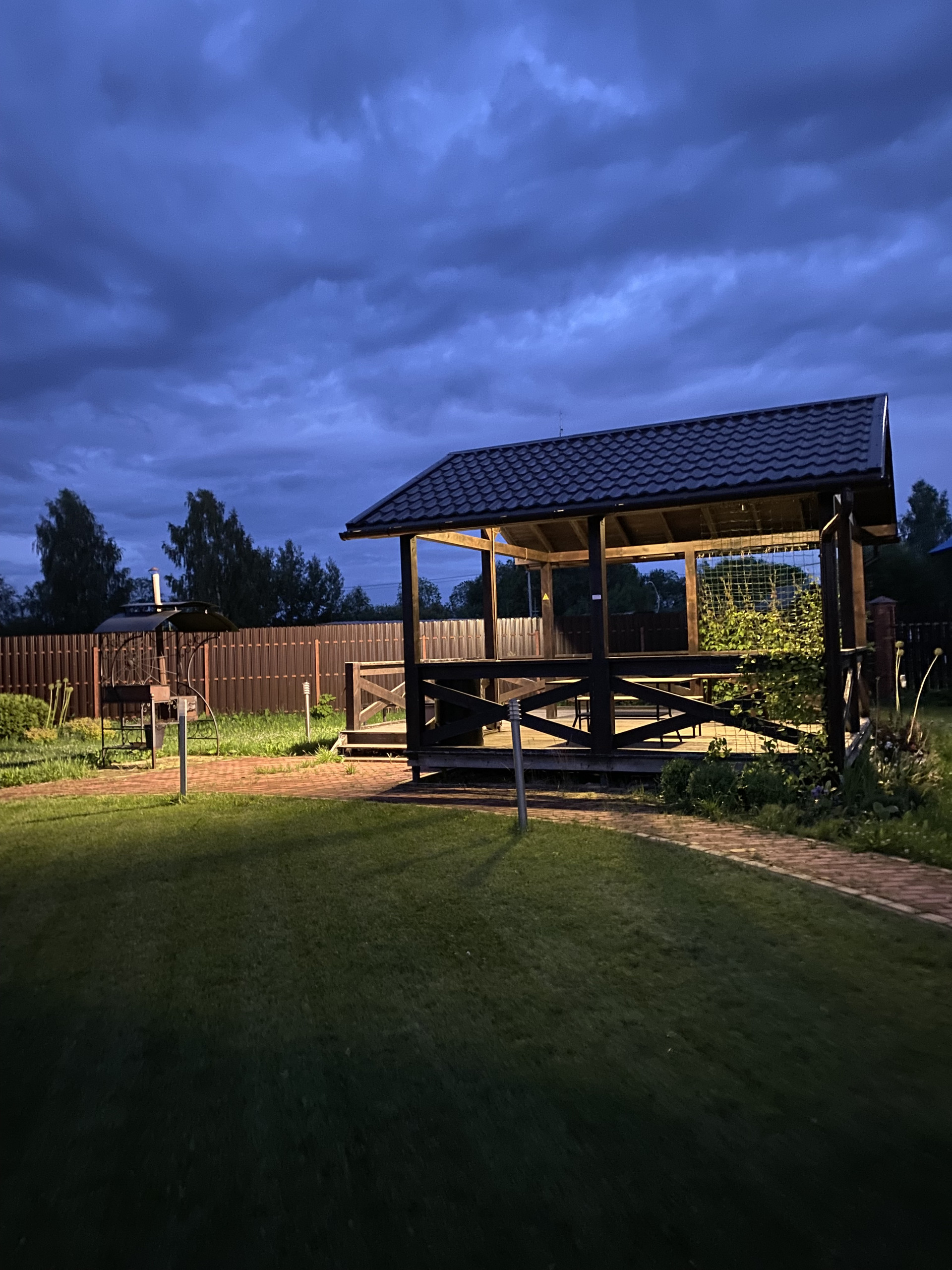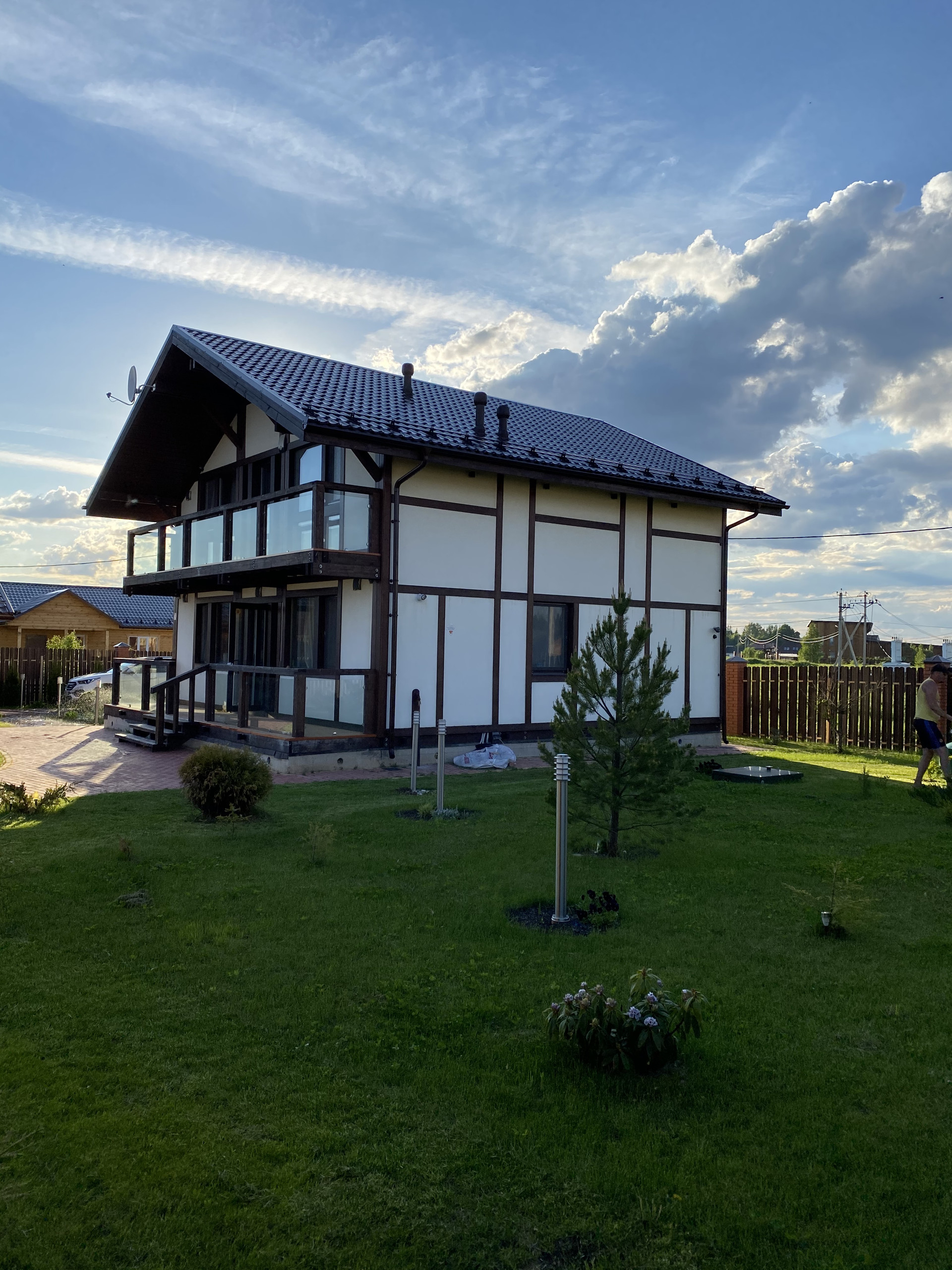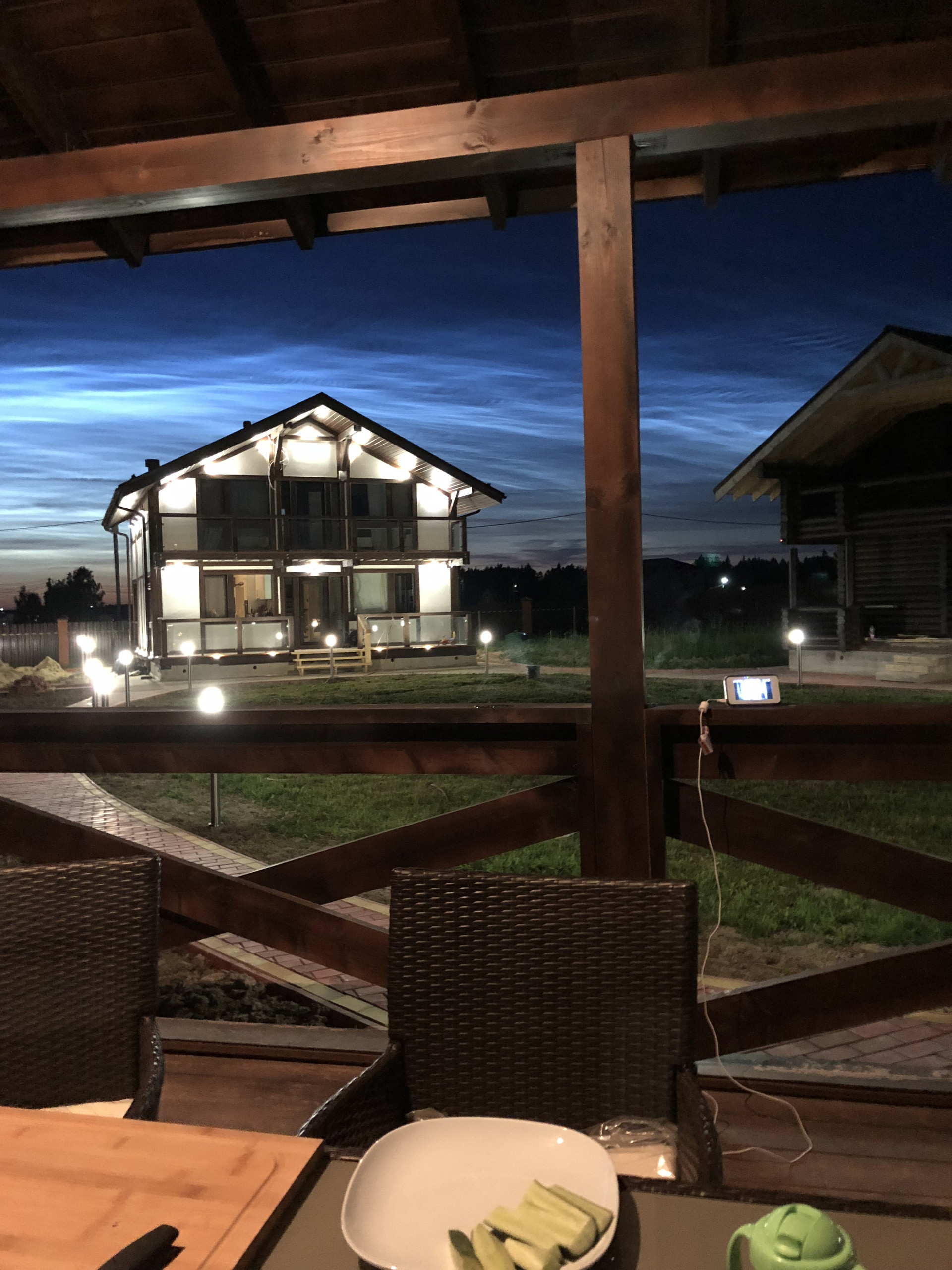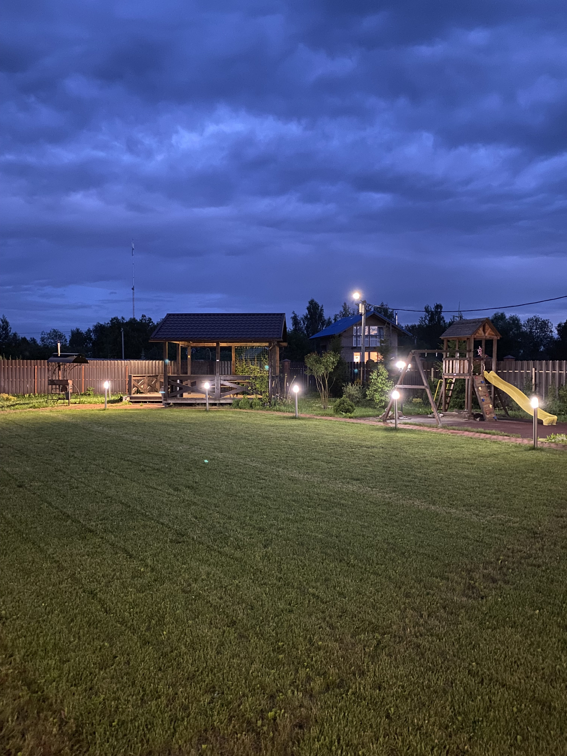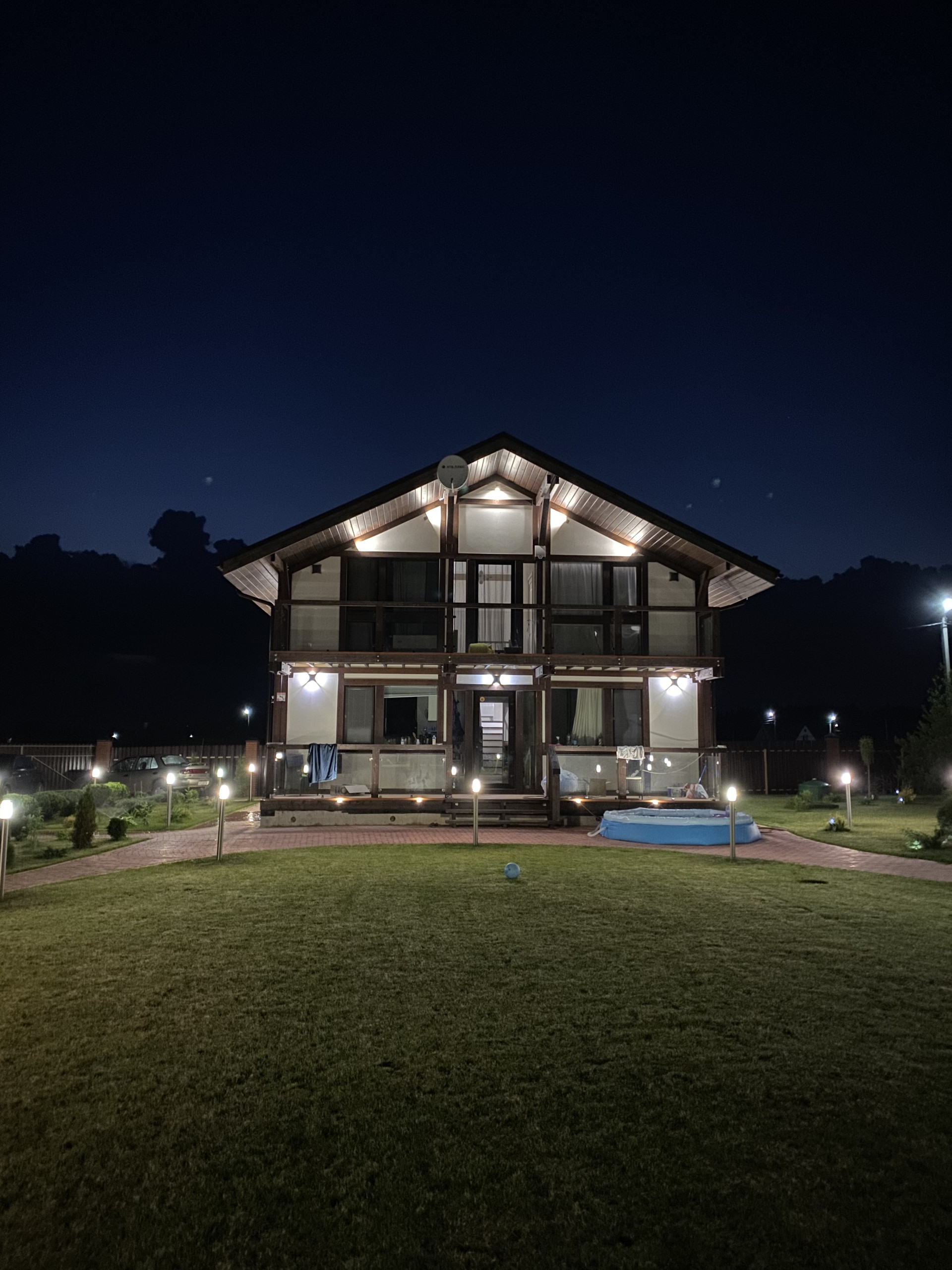 На участке и домах архитектурное освещение!!