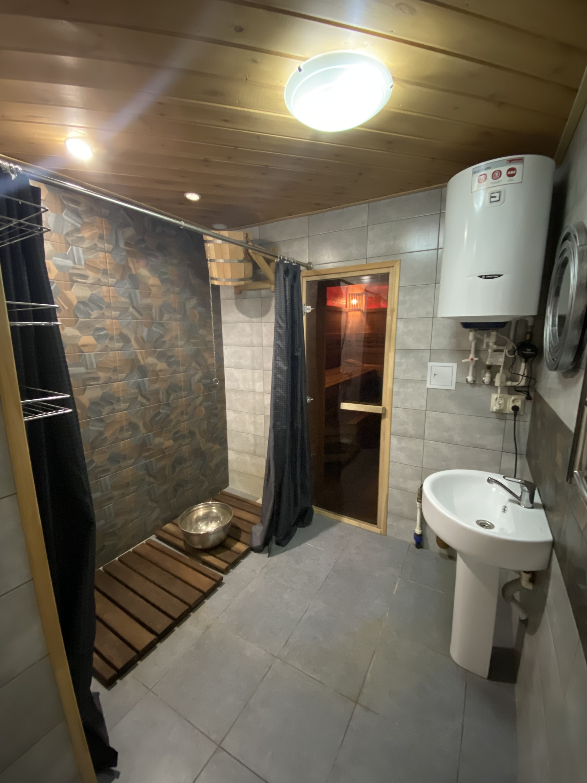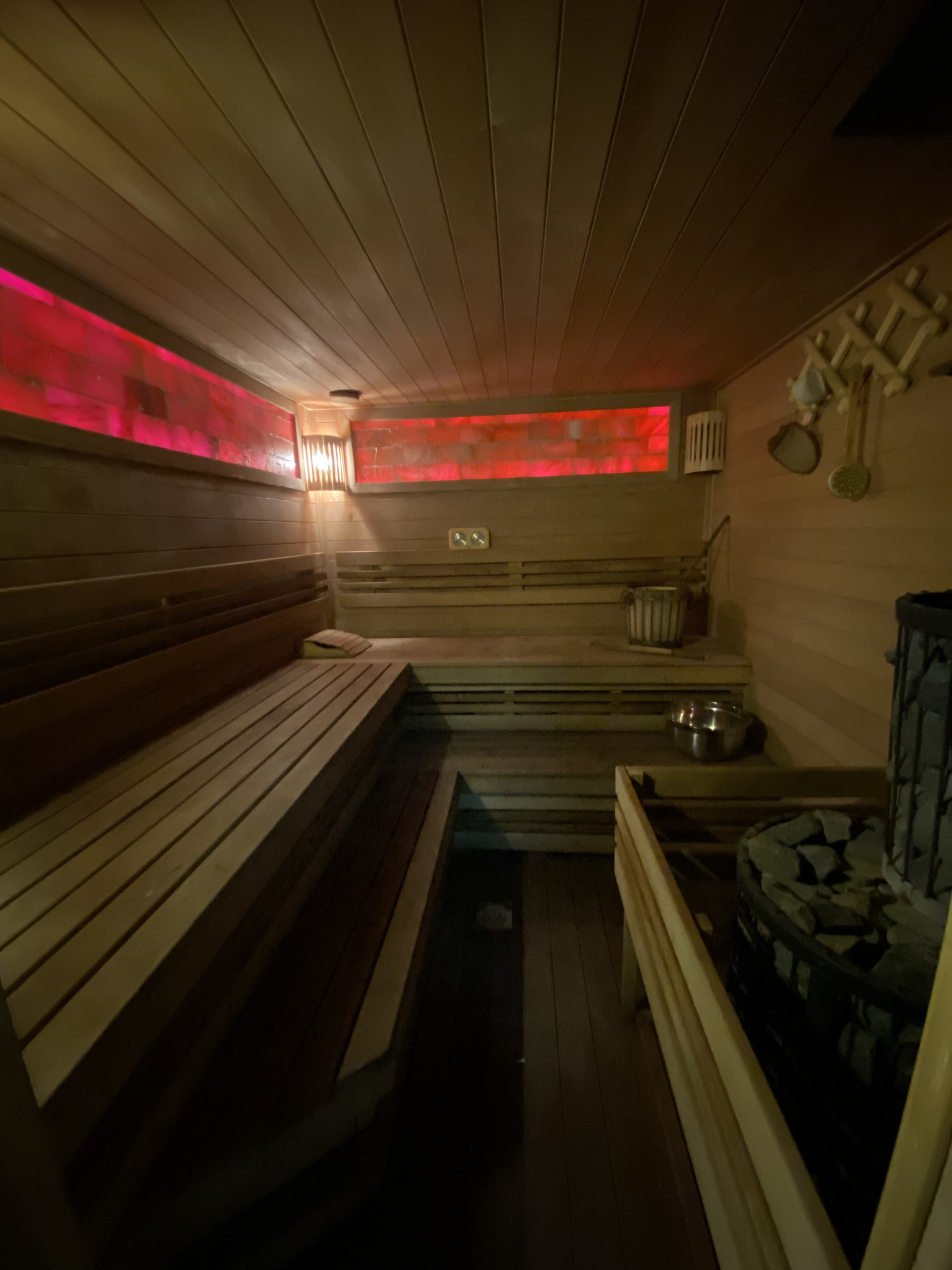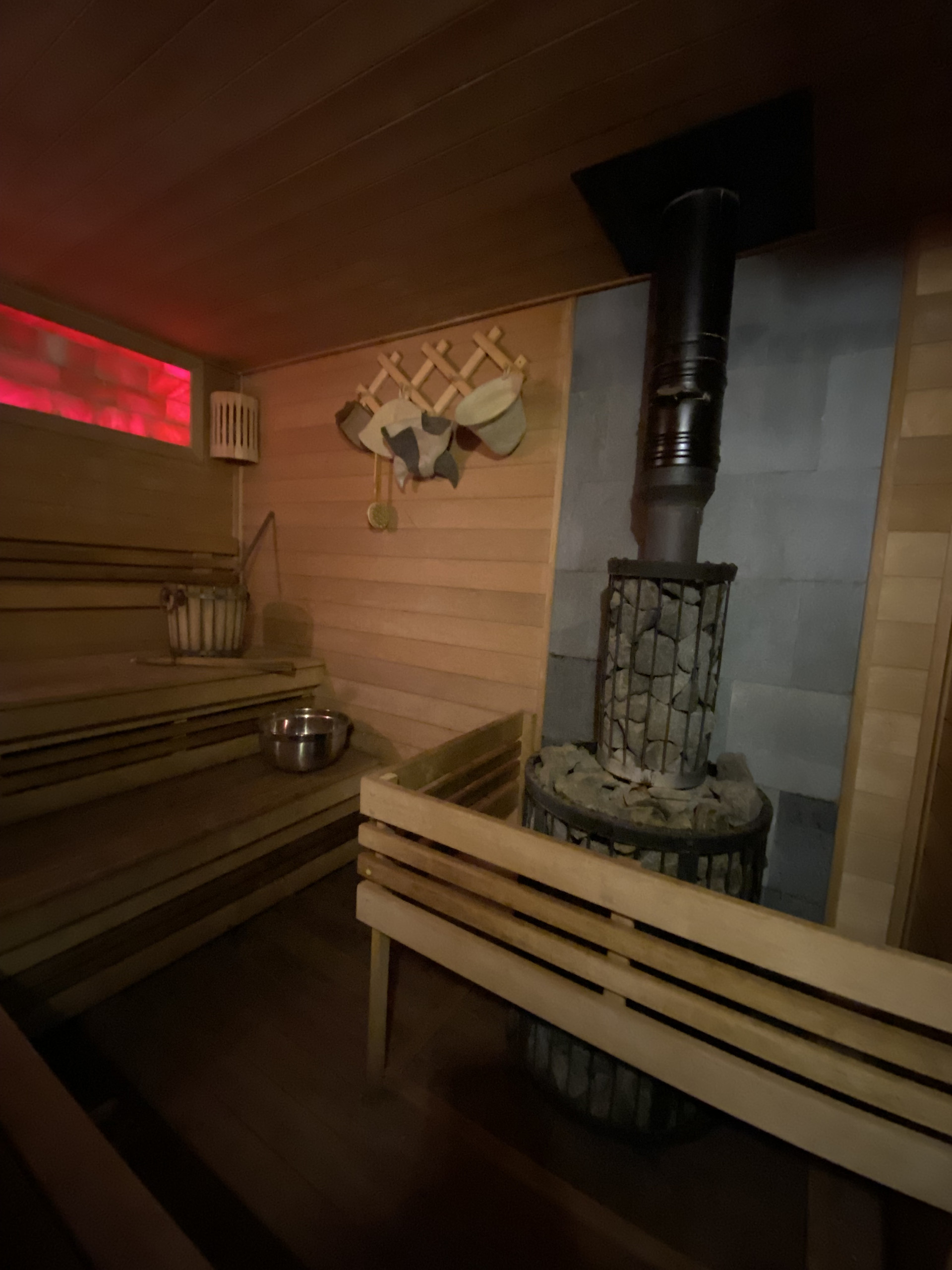 Финская парная, 3 гостевых комнаты, солевые камни в парилке, вмонтированные в стену с подцветкой.