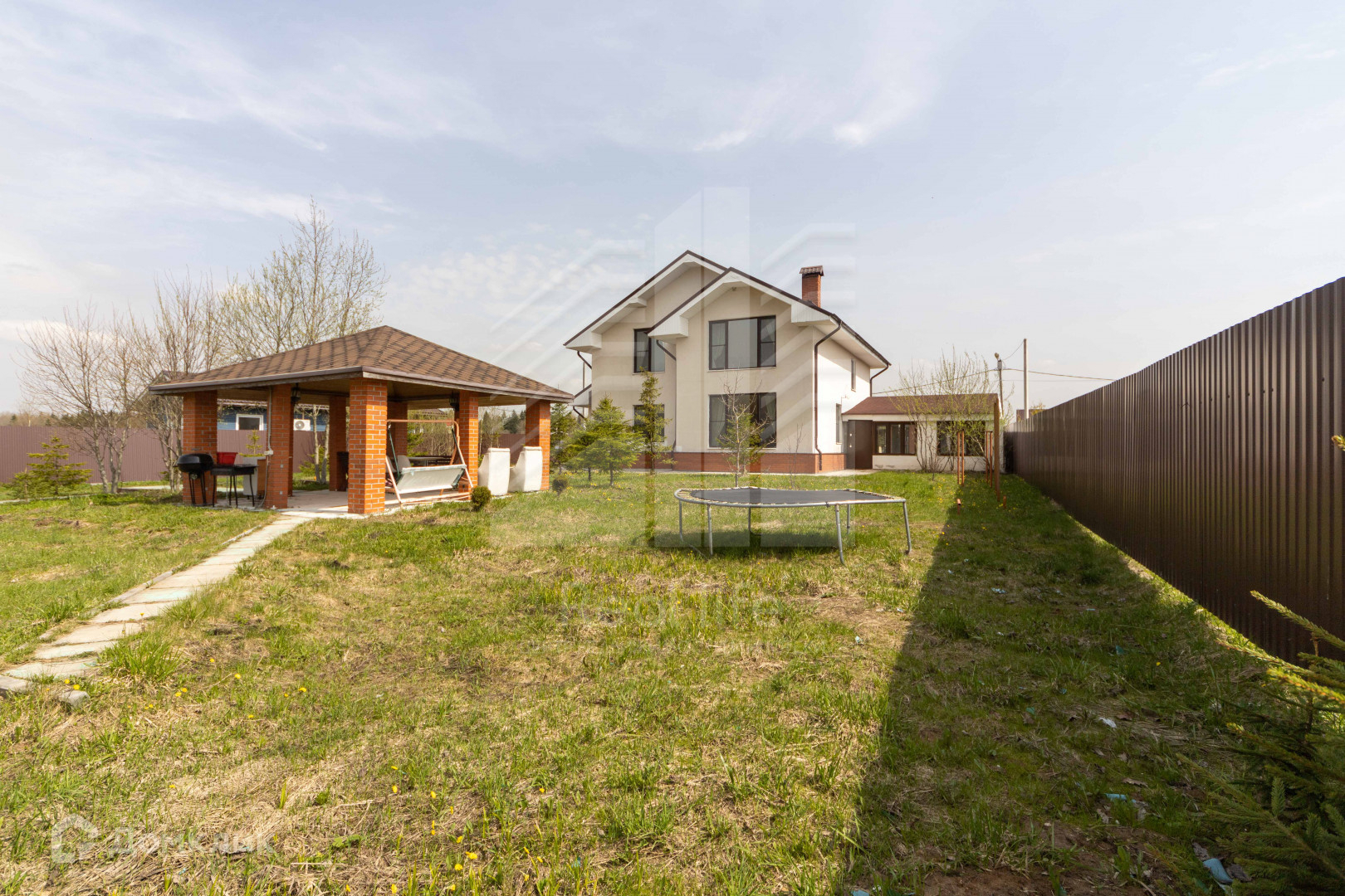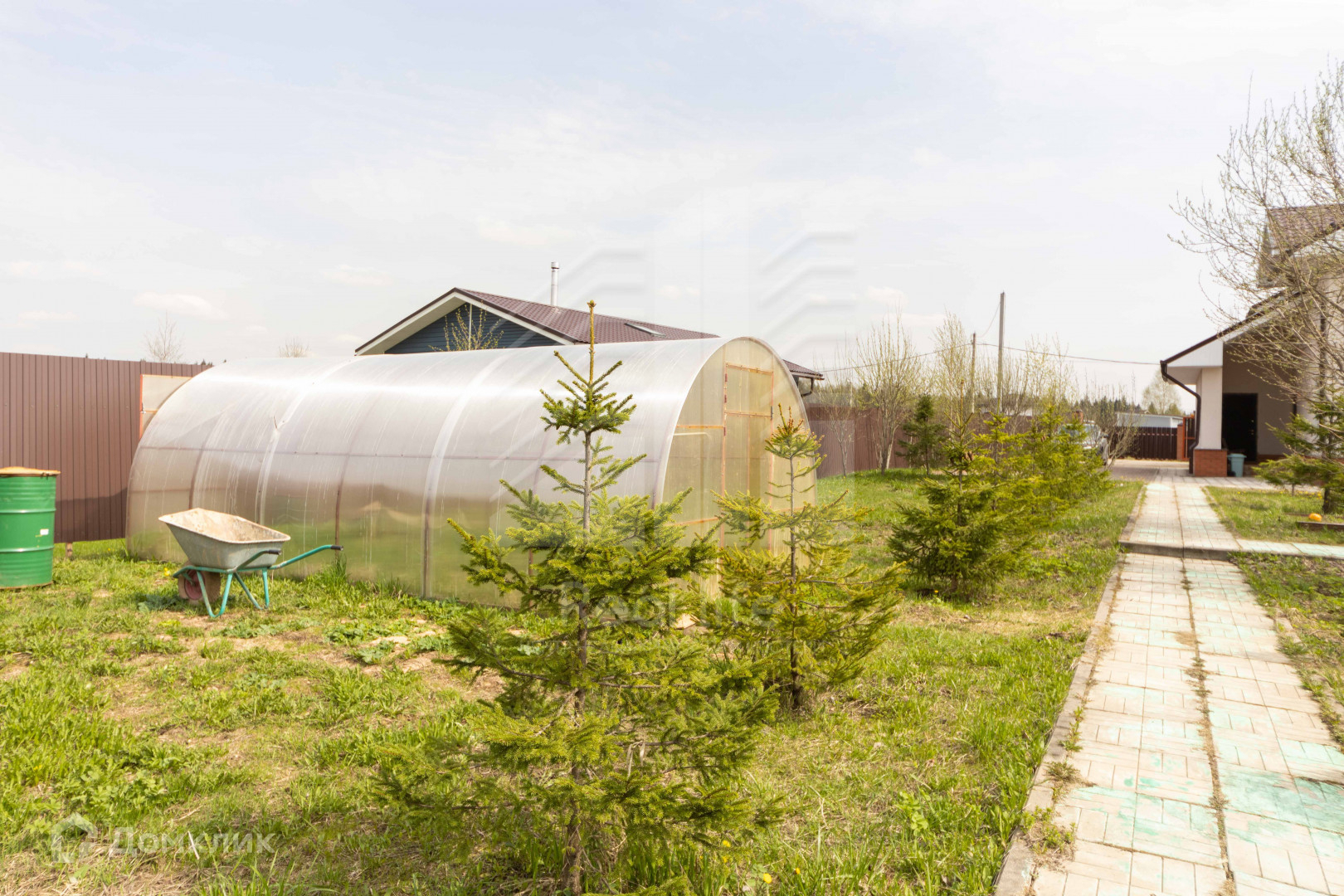 На участке отдельностоящая банька из бруса, беседка, парник, хозблок, для деток есть батут. Посажены лесные и плодовые деревья.