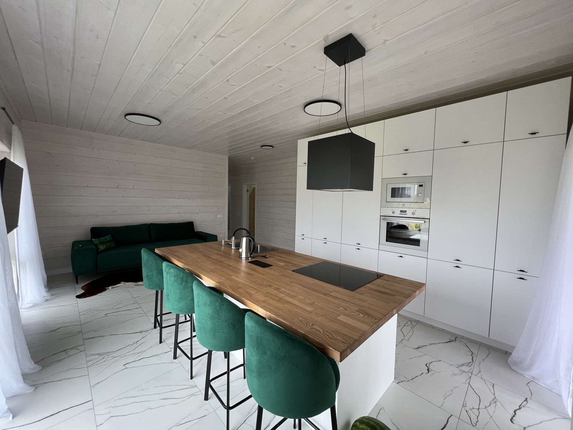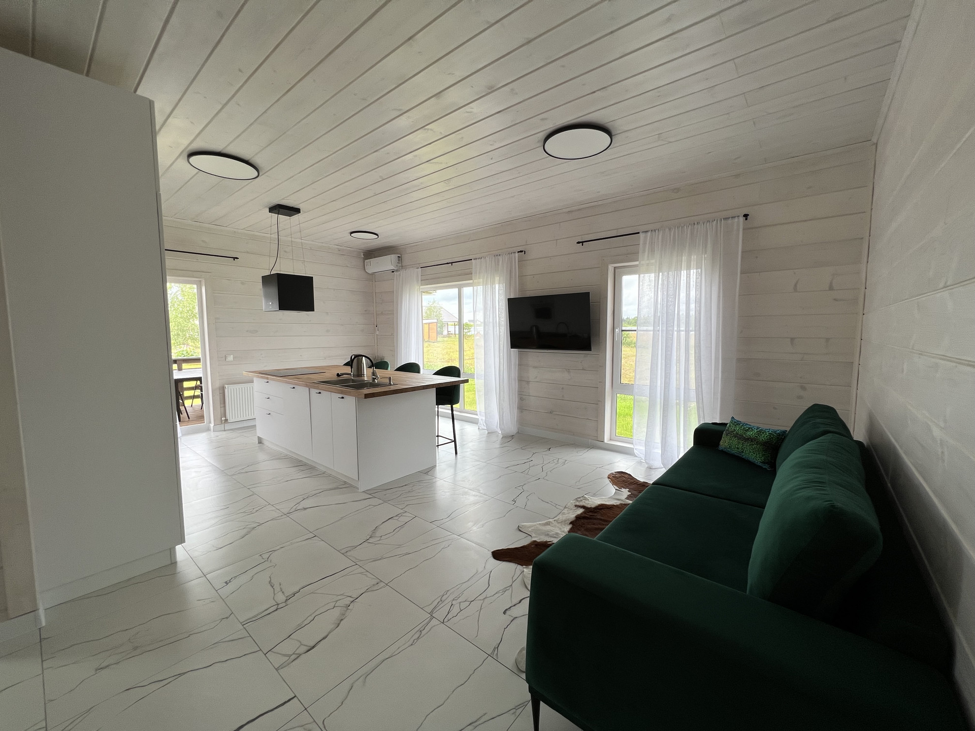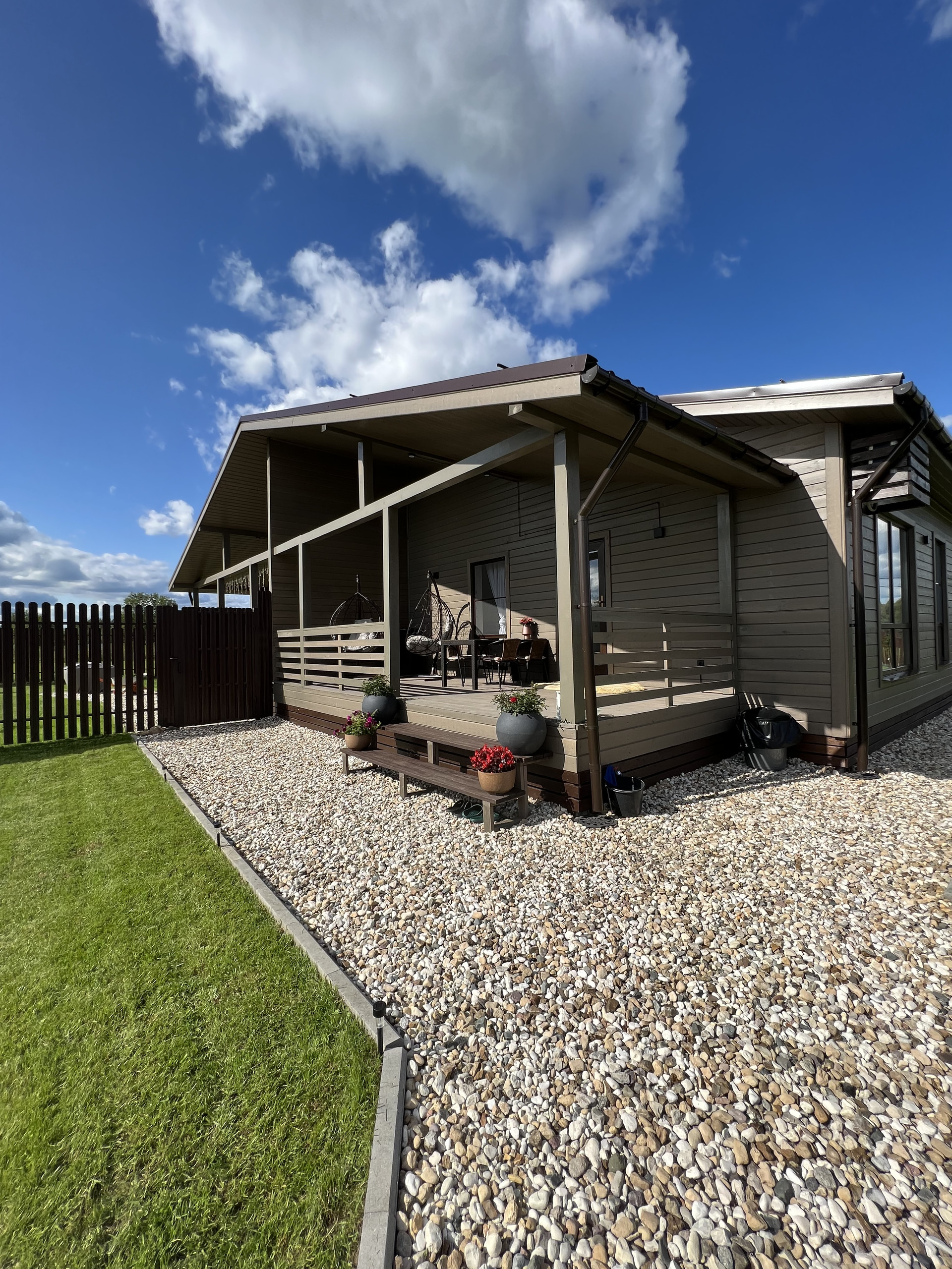 Идеальный,  современный, стильный дуплекс на две семьи! По сути это два дома, с идентичными планировками, с техникой, мебелью и всем необходимым. В одной половине можете наслаждаться спокойным отдыхом, свежим воздухом, прекрасными видами Вы, а другую поселить своих родителей (как пример). Теплый, светлый дом! Дом построен по каркасной технологии, с перекрестным утеплением 200 мм. Сваи 200х200х4000мм-88 штук. Имитация фасадного бруса покрашена в заводских условиях. Окна Rehau. Тёплые  водяные полы, электричество 15 кВт, газ, центральное водоснабжение, плюс колодец, большой септик.  Все сделано из хороших материалов, для себя! Дом состоящий из двух половин, с отдельными входами, и поделенной территорией, при каждом таунхаусе мангальная зона. Гараж  35 кв. метров. Ворота Herman. Большие парковки для автомобилей.  Под каждым водоотливом установлены дождеприёмники с выведением воды в дренажную канаву. Отдельно огорожен фруктовый сад  с грядками. Хозблок. Парник. Соседи просто замечательные! В доме остаётся всё. Таунхаус нельзя документально оформить как два отдельных дома. (цена при полной стоимости в договоре). Коммунальные платежи низкие (деревенский тариф).