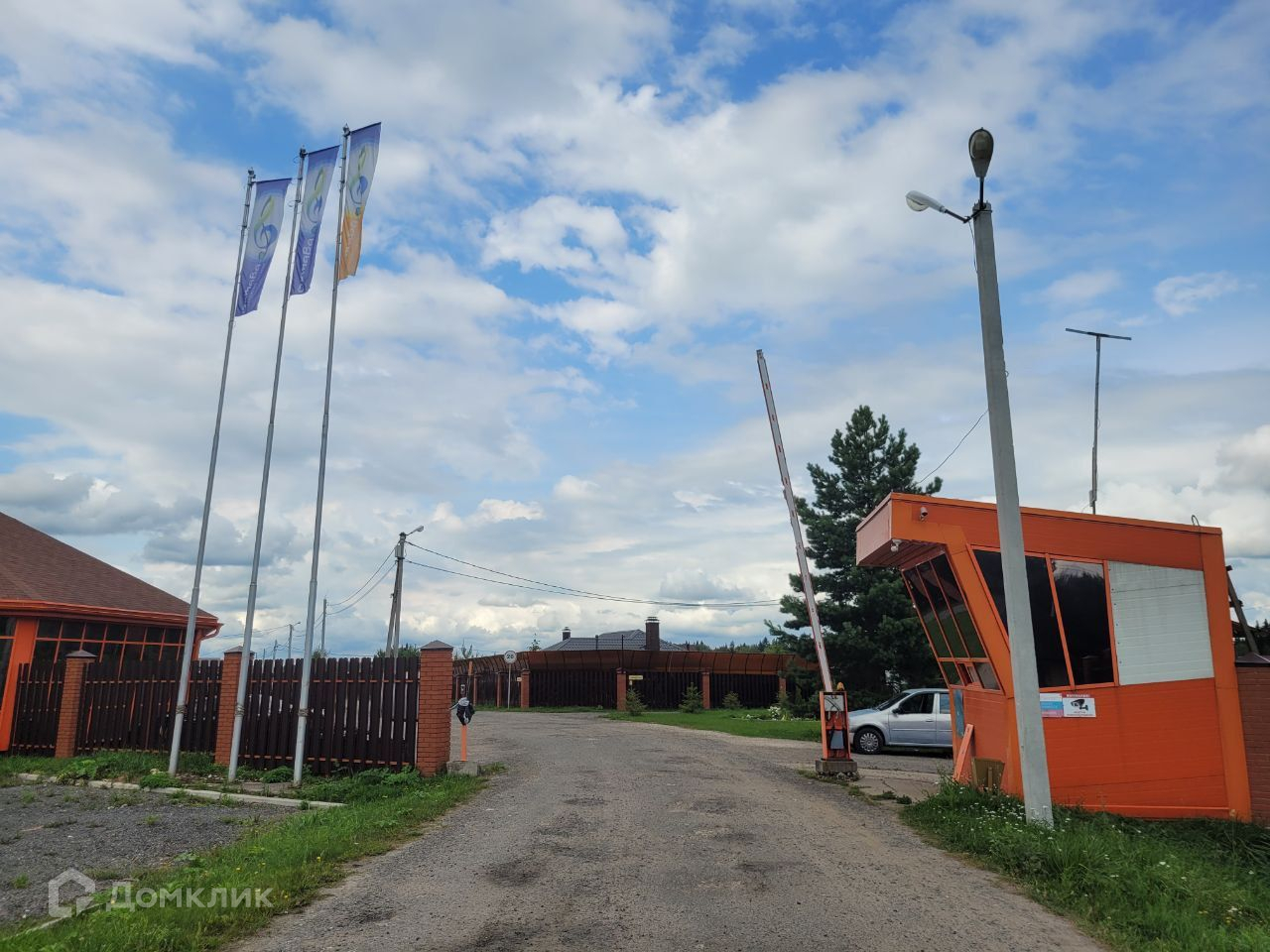 Поселок окружен лесным массивом и огорожен высоким металлическим забором, въезд осуществляется через охраняемый КПП.