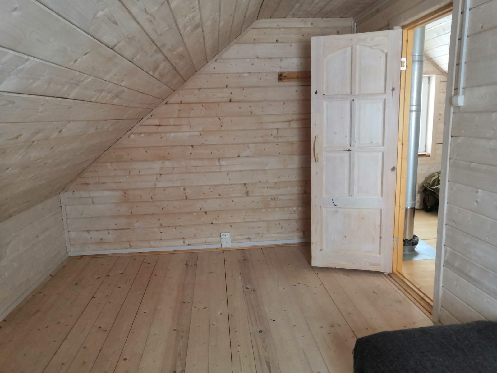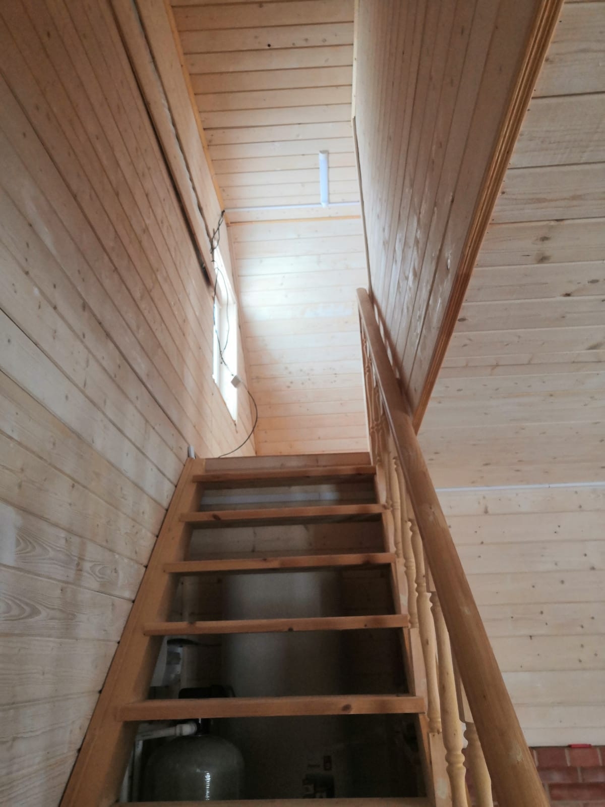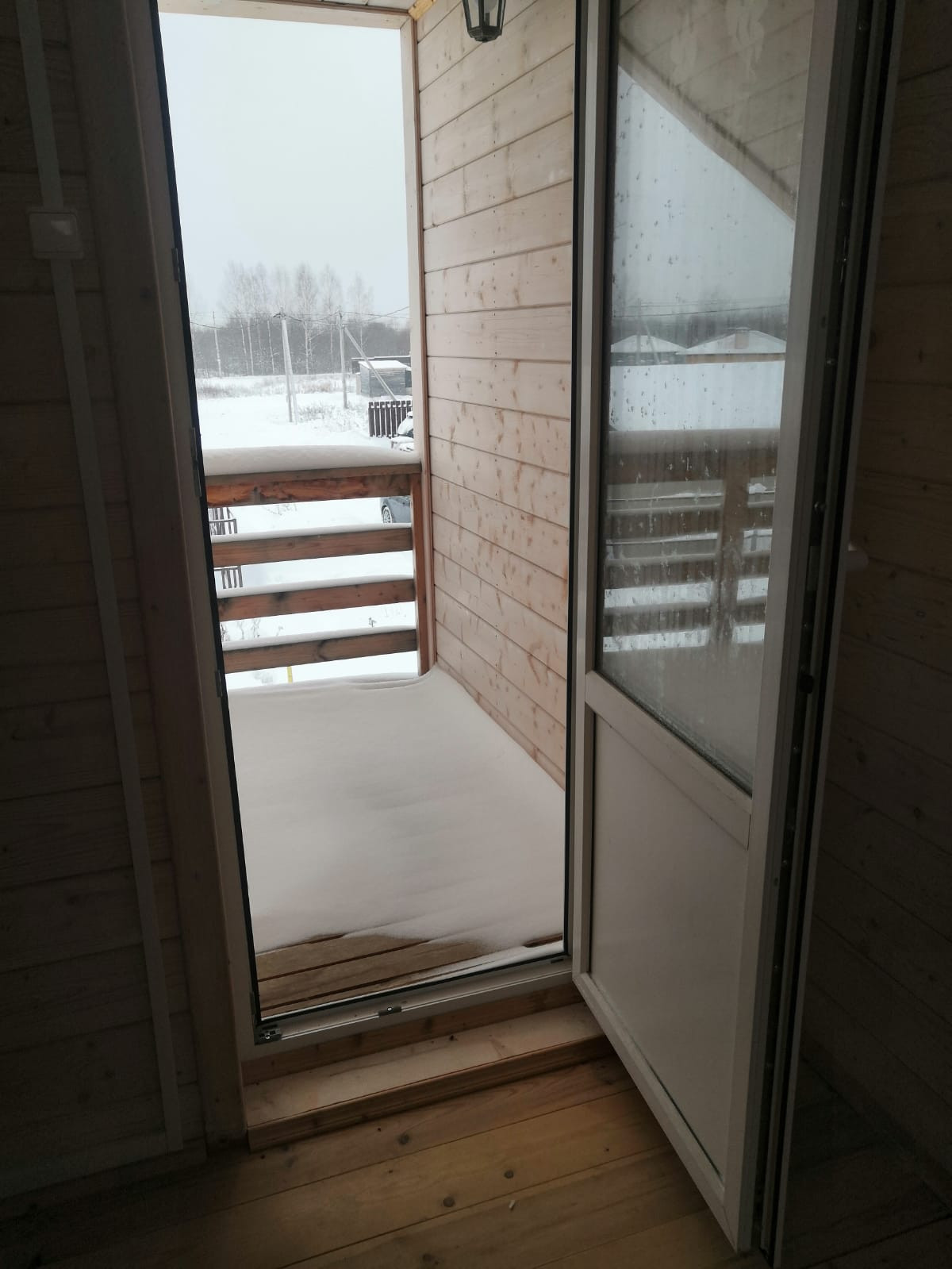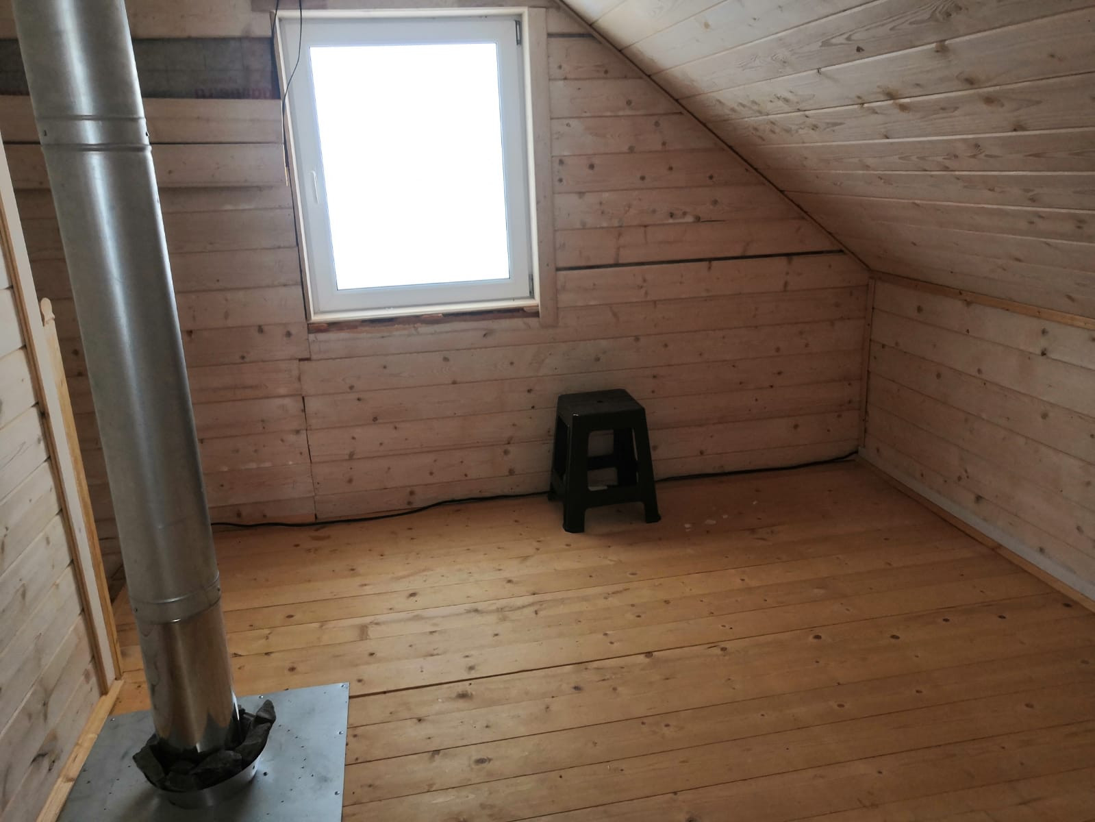 При входе открытая терраса, в доме одна большая комната (20 кв.м.) на 1м этаже и 2 маленькие комнаты (15 и 10 кв.м.) на 2м этаже, с выходом на балкон.