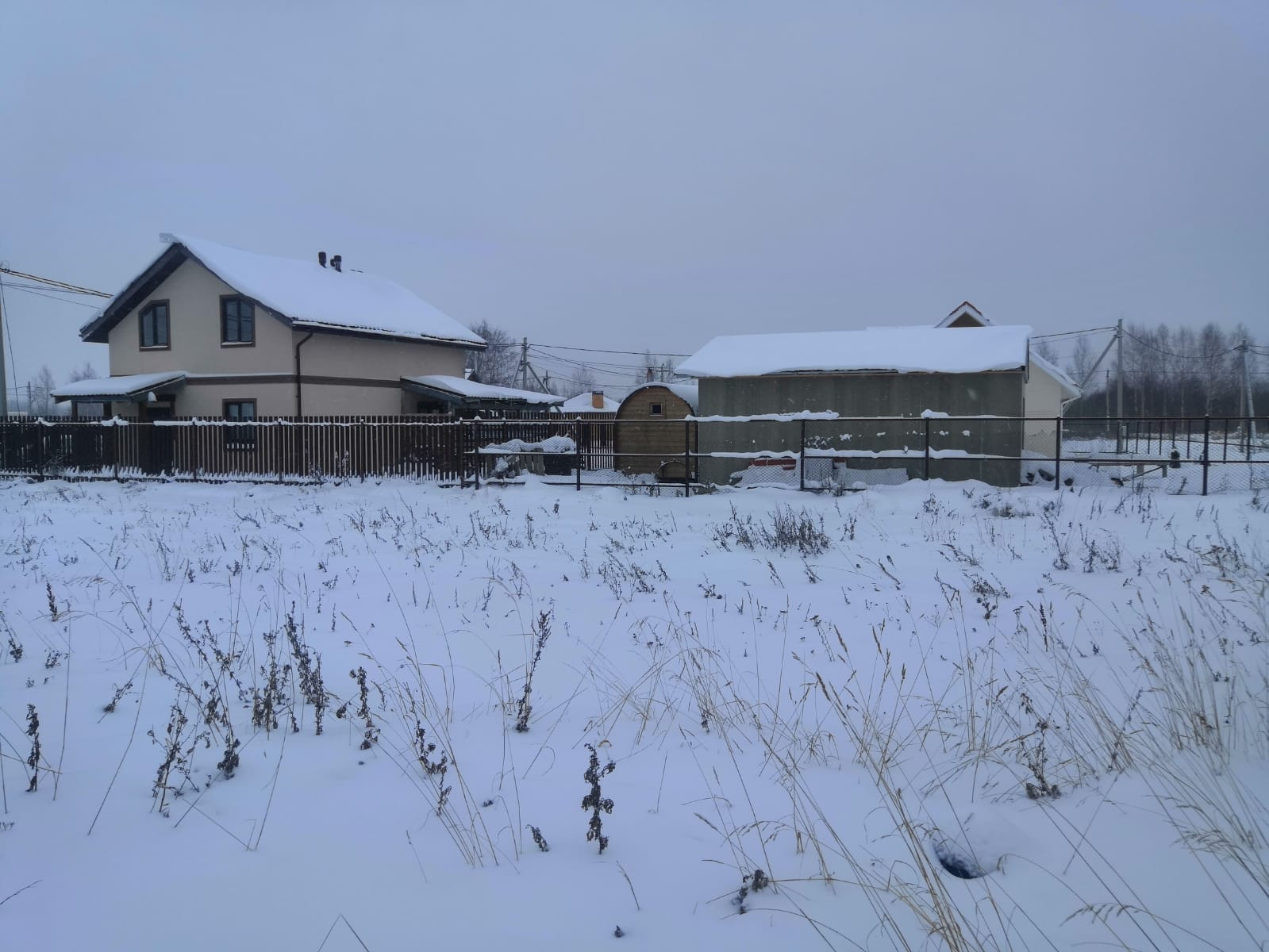 Дом в глубине участка. Планировали еще построить большой дом, поэтому есть место для постройки основного большого дома.