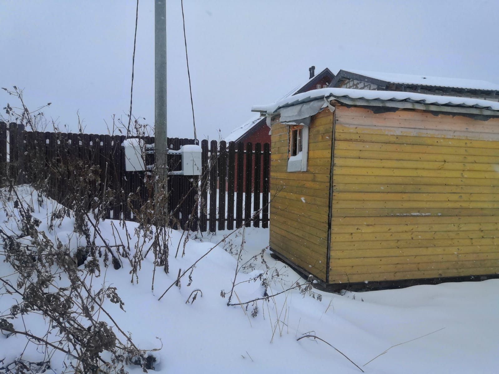 На участке есть строительный вагончик.