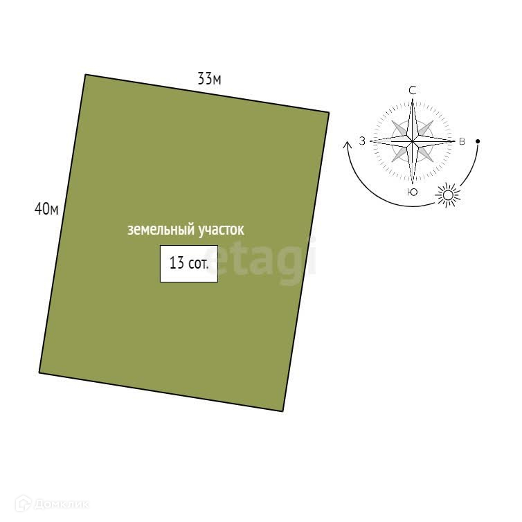 Площадь участка 13 сот.