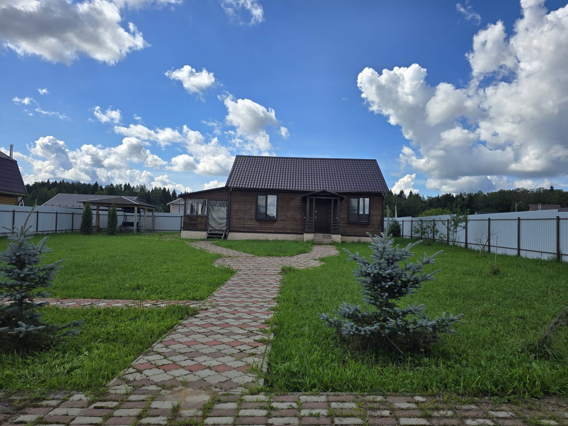 Уютный дом в коттеджном поселке Ольшаны, который находится в окружении хвойного леса, в 42 км от Москвы на трассе А-107 между Дмитровским и Ярославским шоссе. До поселка ведет асфальтированная дорога. Рядом с поселком в пешей доступности - Сбоевское озеро, в котором можно купаться, на автомобиле легко добраться до горнолыжного курорта "Сорочаны" и Яхромского водохранилища. Поселок находится в 3,5 км от поселка городского типа Новое Гришино, в котором есть магазины, аптека, школа, больница. У коттеджного поселка есть внешнее ограждение и КПП, проезд только по пропускам, внутри детский городок, зона отдыха. Есть возможность подключения газовой сети. Участок правильной формы с минимальным уклоном, вода на участке не застаивается, участок облагорожен,