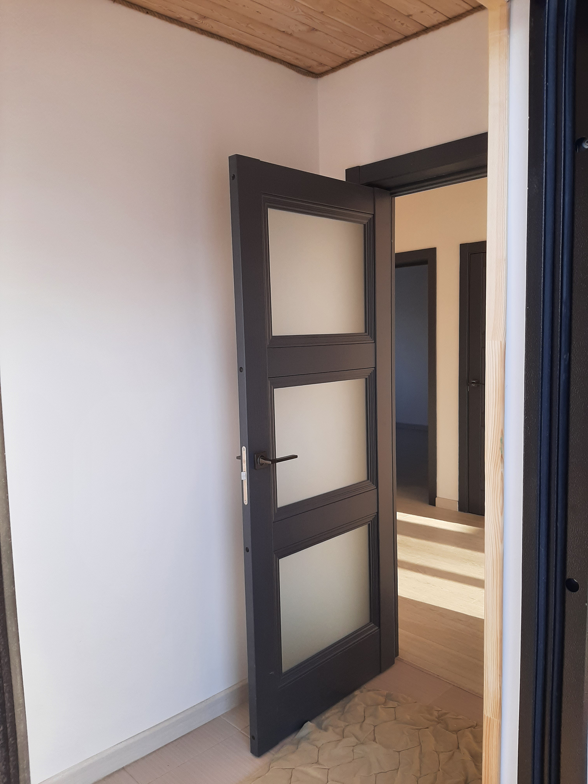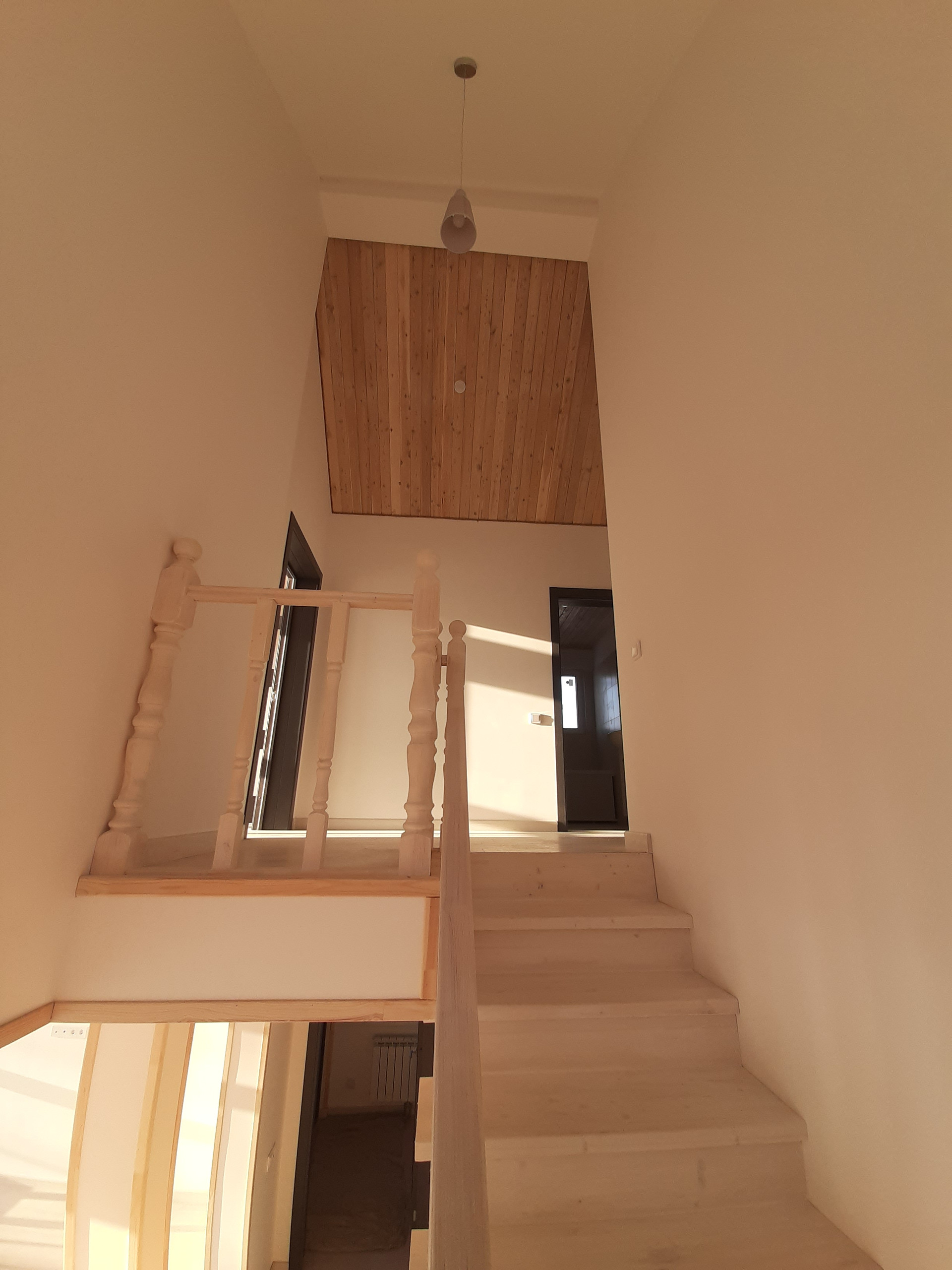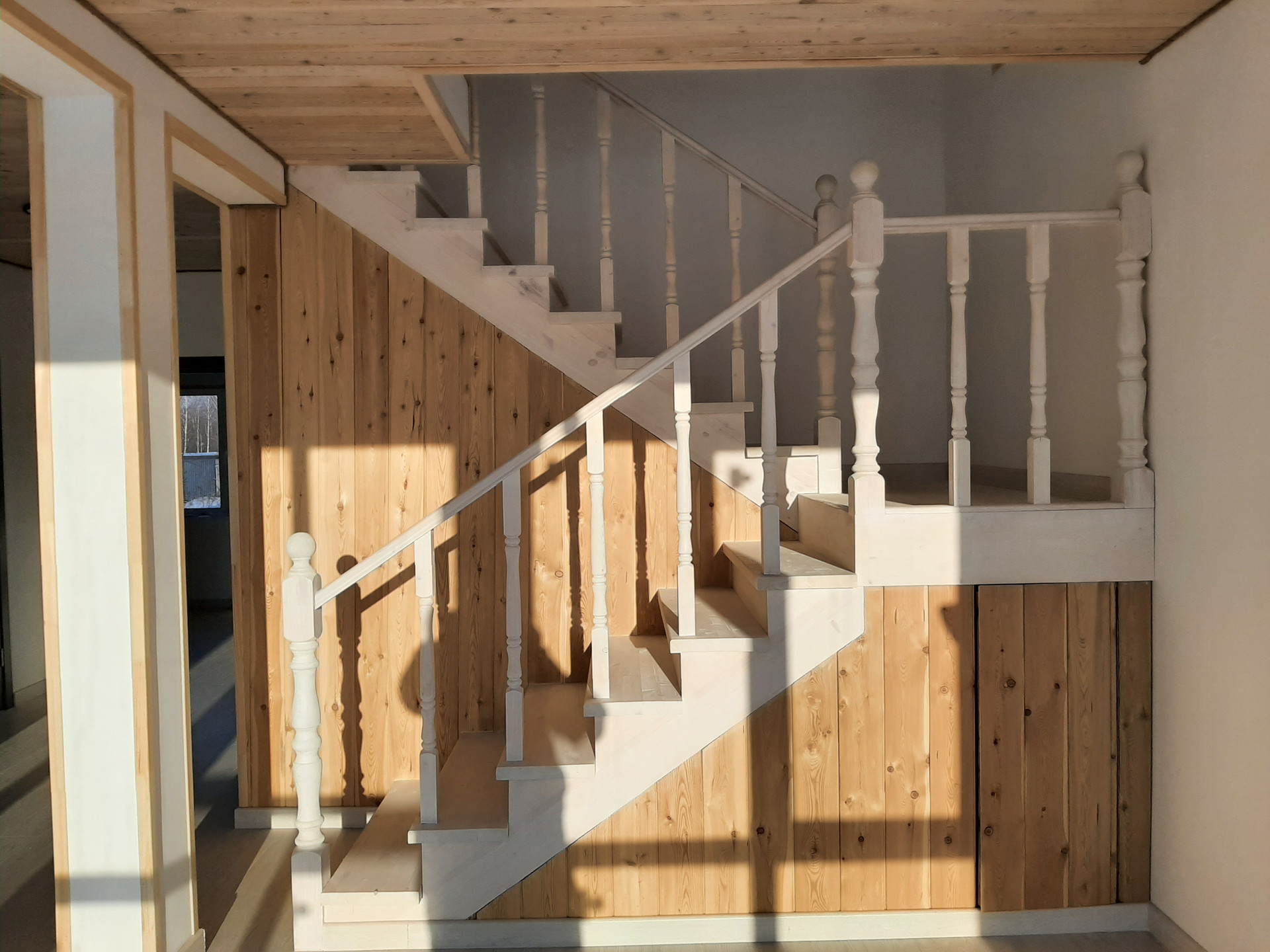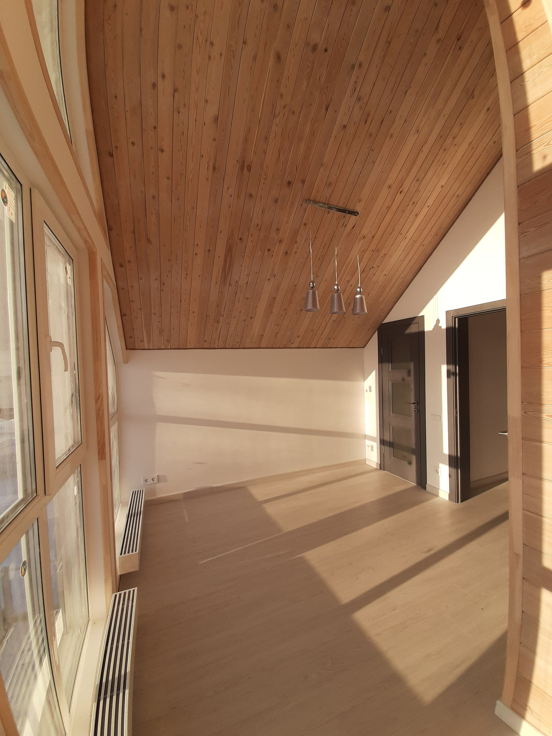 Дом построен на винтовых сваях по каркасной технологии из седвич-панелей заводского производства. Пригоден для круглогодичного проживания. Наружная отделка - имитация бруса из лиственницы окрашенной в серый цвет, внутренняя отделка стен - оштукатурены и окрашены. В санузлах и прихожей плитка, потолок комбинированный - листовой материал/вагонка из лиственницы. Панорамные окна из родительской спальни и гостиной. На первом этаже - тмабур, гостиная, кухня, спальня, санузел. На втором этаже спальни, санузел общий, родительская спальня с собственным санузлом.