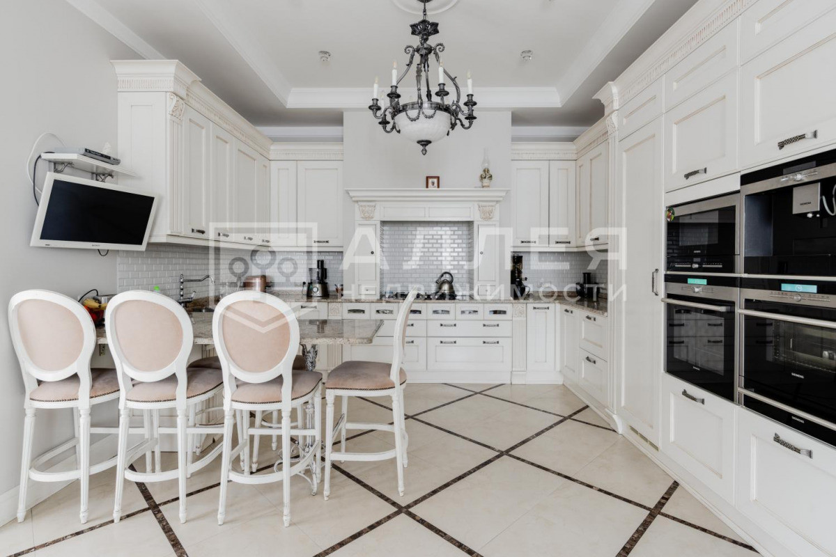 ДОМ: Дом под ключ, в идеальном состоянии. Строился для себя, по авторскому дизайн-проекту. Изысканный интерьер выполнен в неоклассическом стиле, в пастельных тонах. Дорогая отделка с использованием натурального дерева и керамогранита. Мраморный каминный портал, подоконники и лестница. Гипсовые карнизы. Дом полностью меблирован итальянской мебелью и светом Luxury сегмента. Кухня спроектирована с зоной для завтраков и оснащена Немецкой бытовой техникой. Ванные комнаты оборудованы сантехникой французского и итальянского производства. В доме есть бильярдная, SPA зона с финской сауной, кладовая с зоной для хранения вина, прачечная.