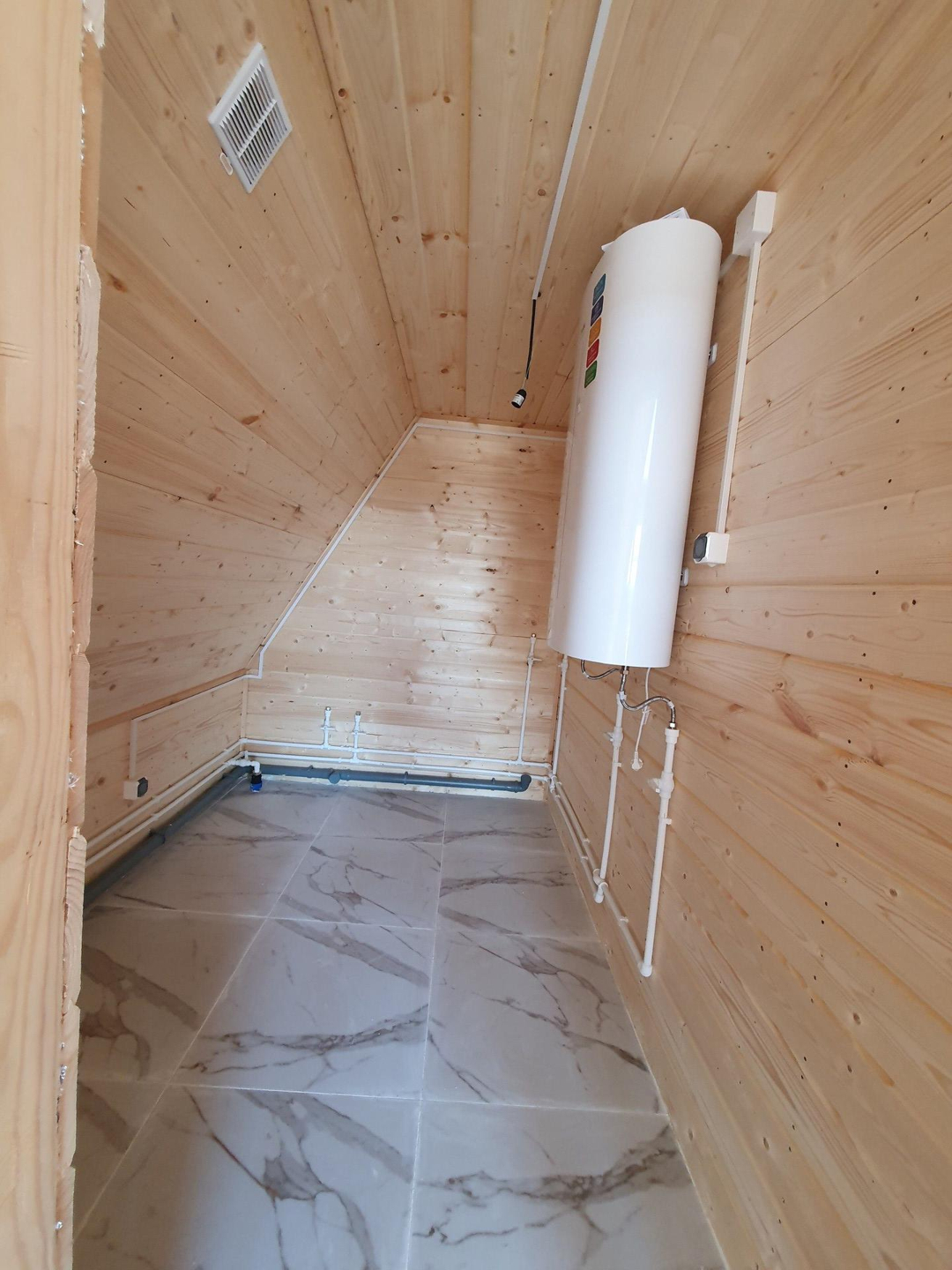 Инженерные коммуникации внутри дома: Комплект электропроводки на 15 кВт, система водоснабжения и канализации, водонагреватель 100л, система вентиляции.