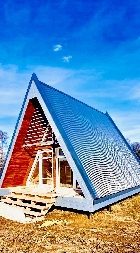 Предлагаем вашему вниманию современный, стильный, каркасный дом-шалаш в стиле A-Frame 6х6 с террасой 1.5х6 в активно застраивающемся коттеджном поселке на Новорязанском шоссе для круглогодичного проживания! ОДИН ВЗРОСЛЫЙ СОБСТВЕННИК! По документам оформлен участок и дом!