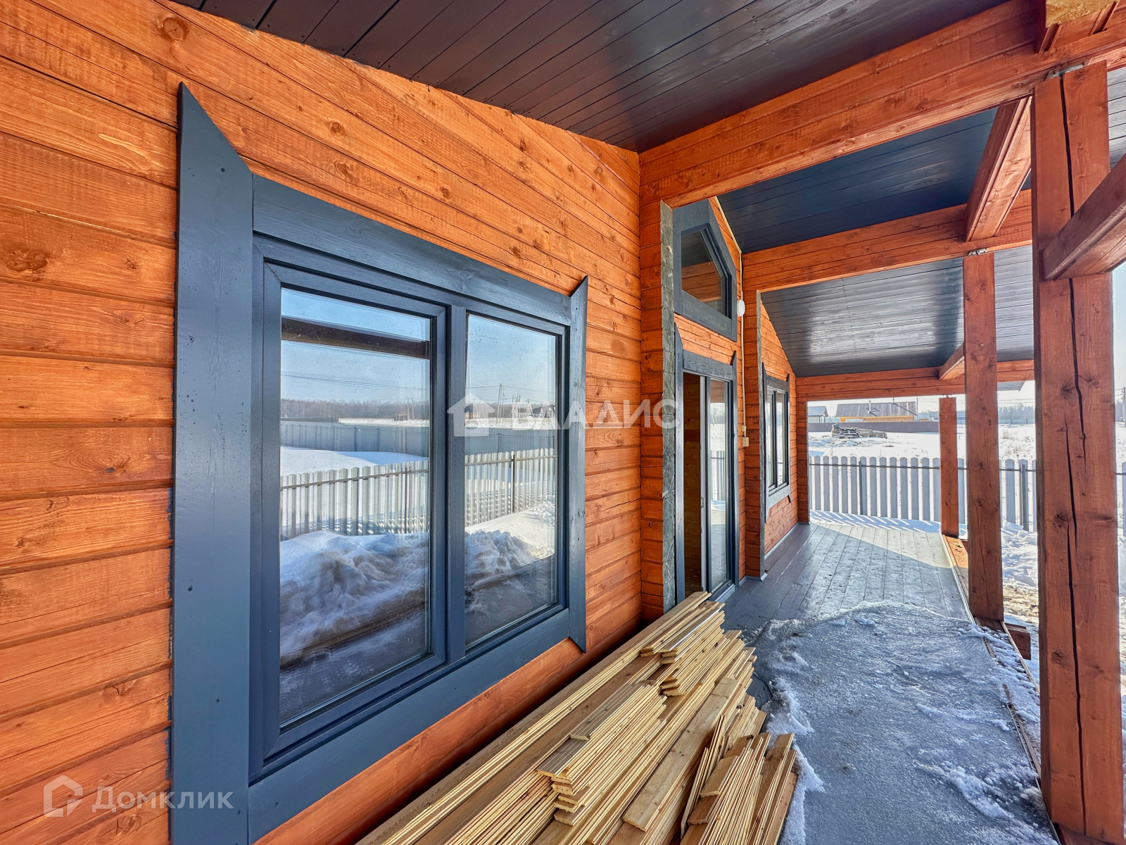 Основанием дома являются бетонные сваи, каркас дома выполнен с применением качественного бруса и утеплителя толщиной 200 мм (потолок), что обеспечивает высокие показатели энергоэффективности. Пластиковые окна обеспечивают хорошую звукоизоляцию и сохраняют тепло в доме.