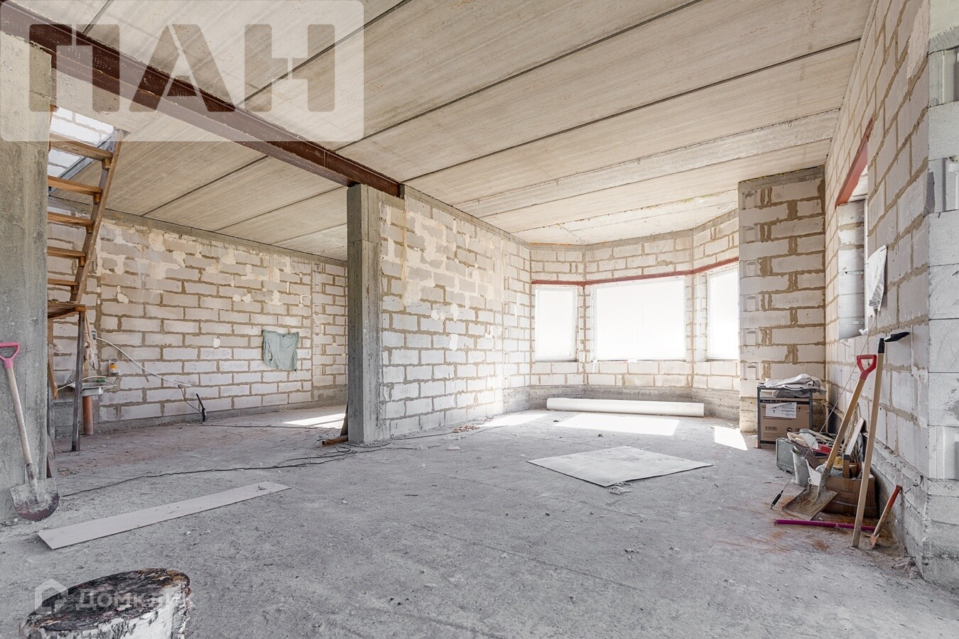 Дом построен в 2013 году. все конструкции отстоялись. Так что Вы можете сразу приступать к внутренней отделке.