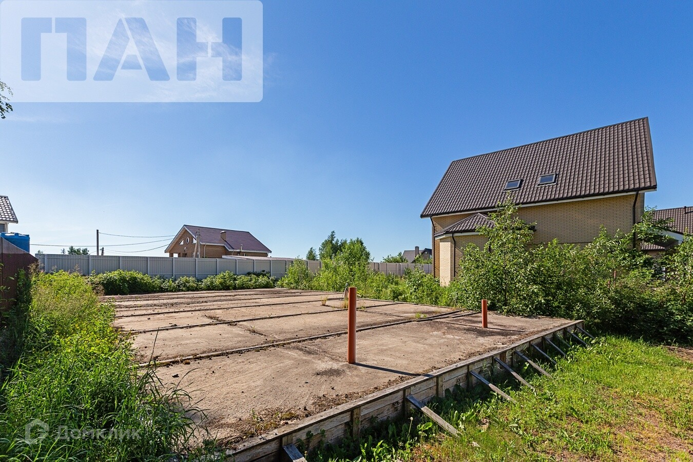 На участке выполнен ж/б фундамент под гараж с гостевым домом. Также, выполнены ж/б террасы согласно плану ландшафтного дизайна.