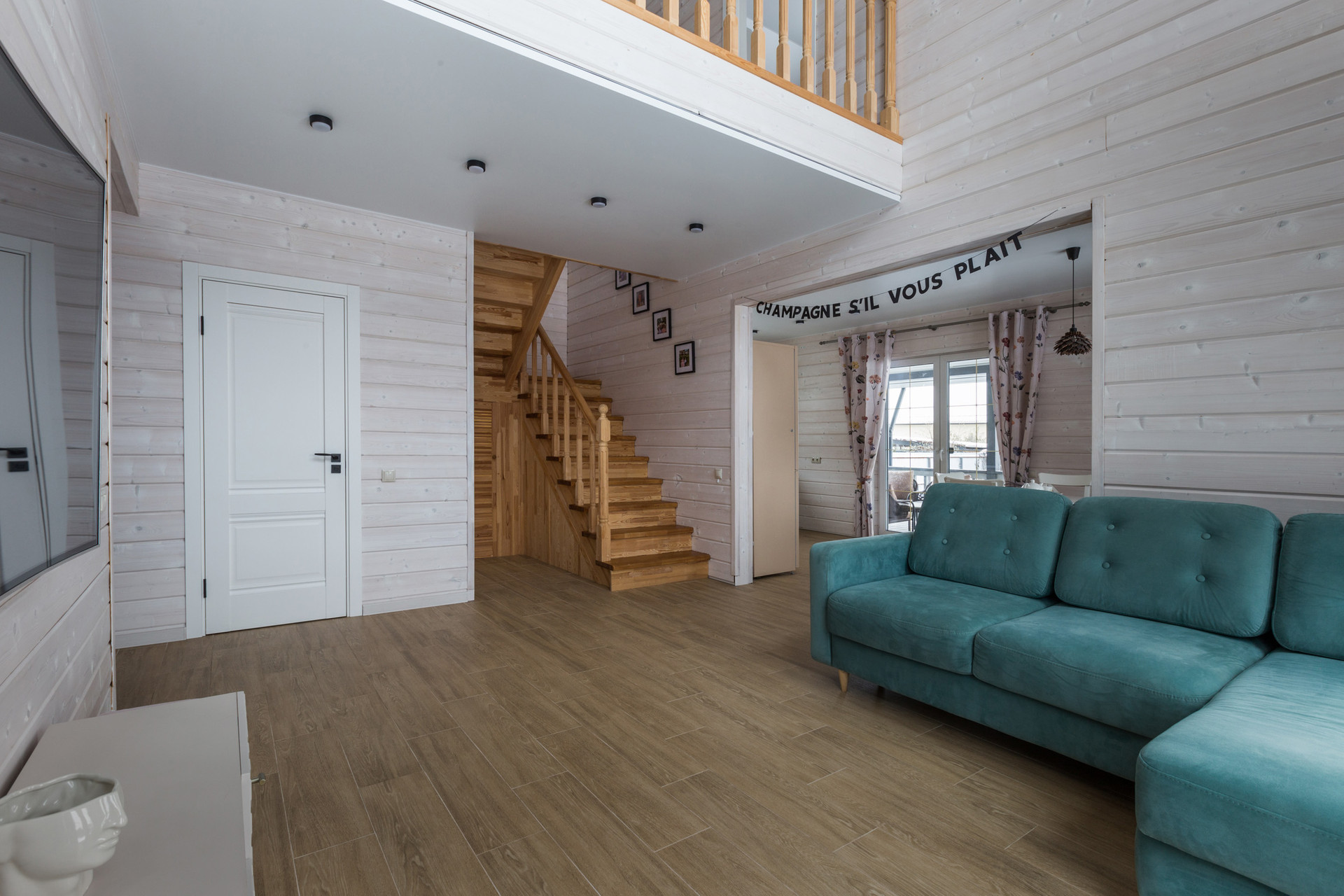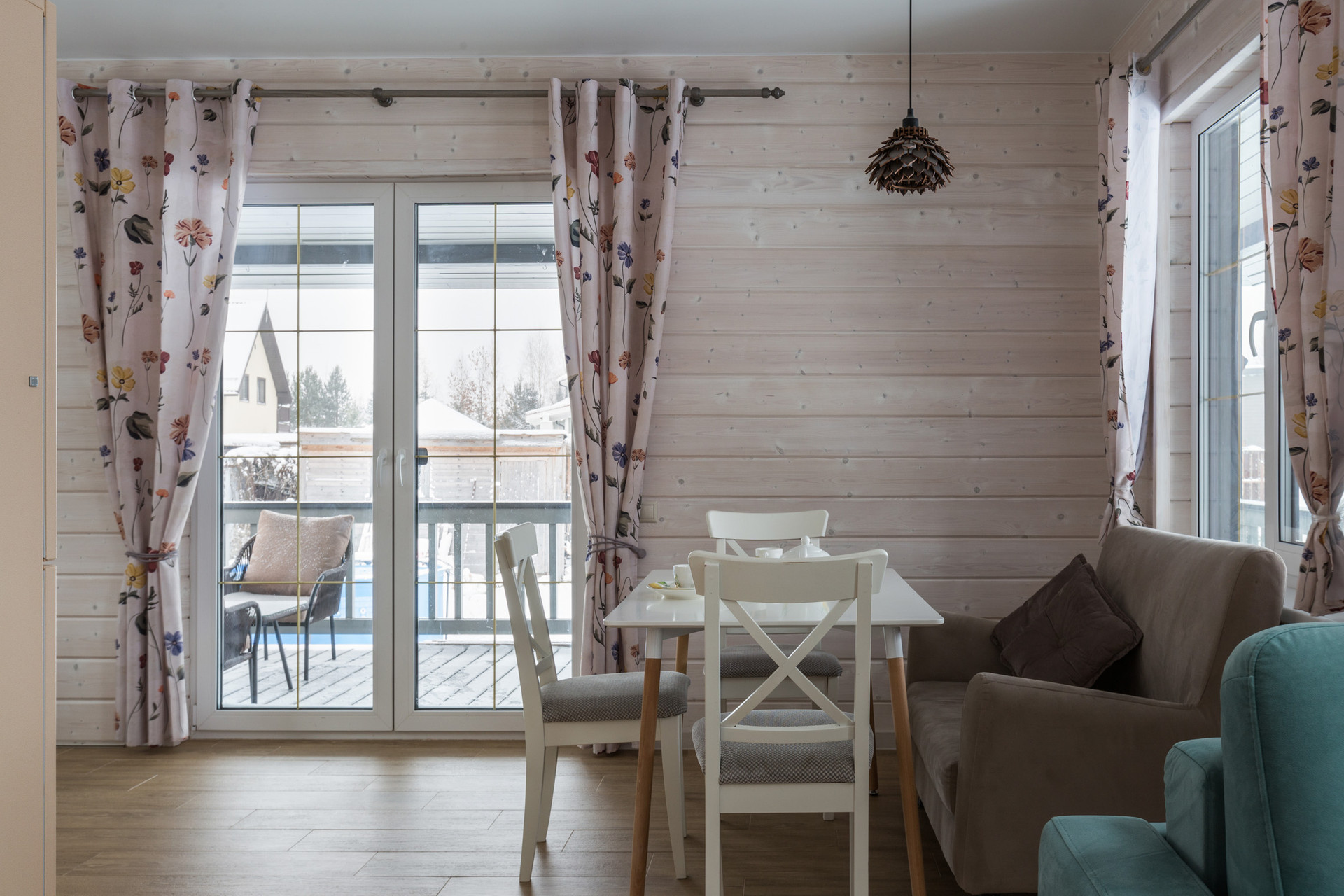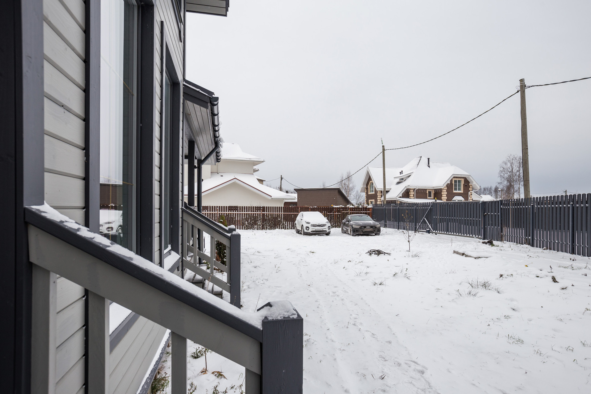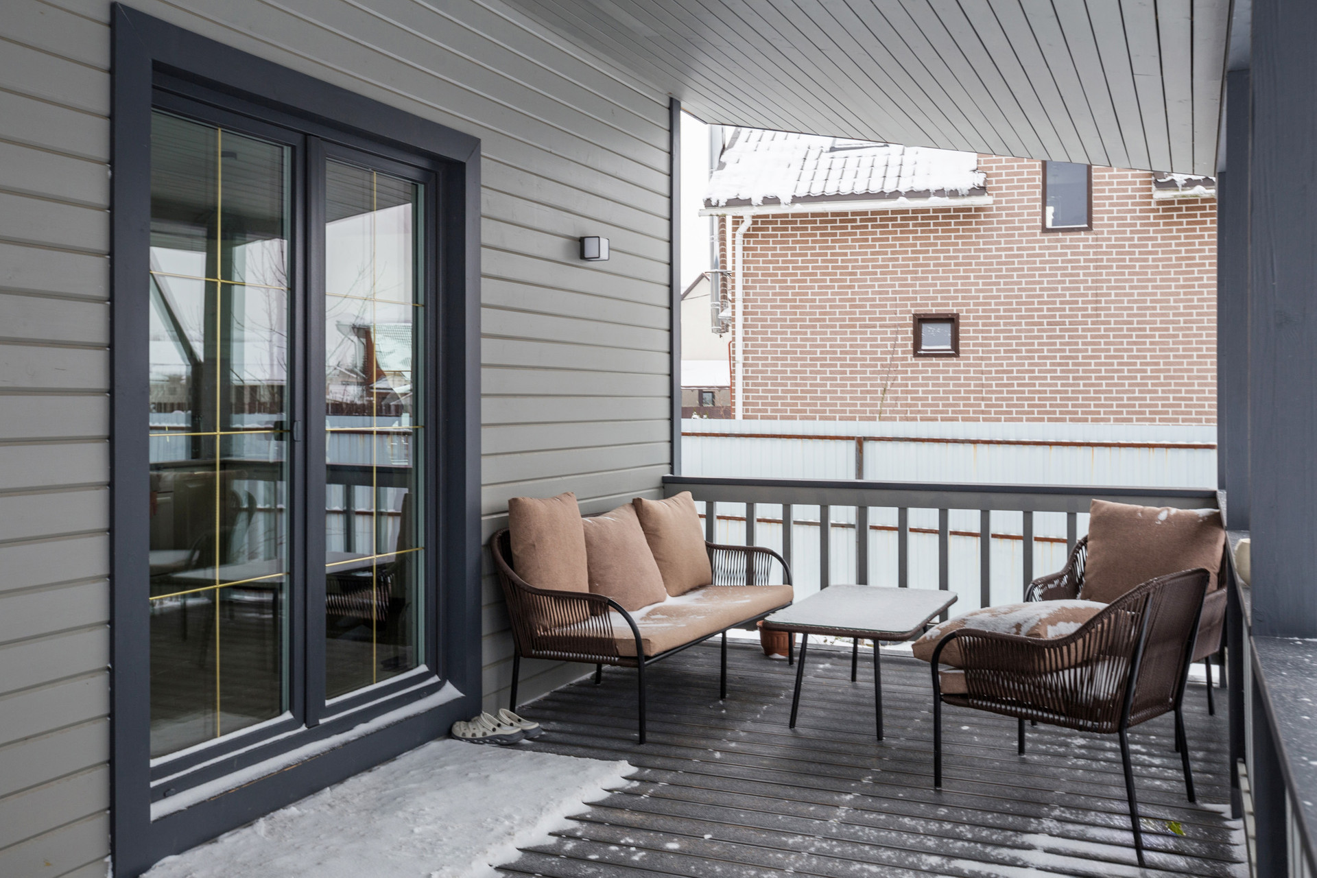 Двухэтажный каркасный дом 113 квадратов со вторым светом, с тремя спальнями, двумя санузлами, гостиной, кухней-столовой и огромной террасой.