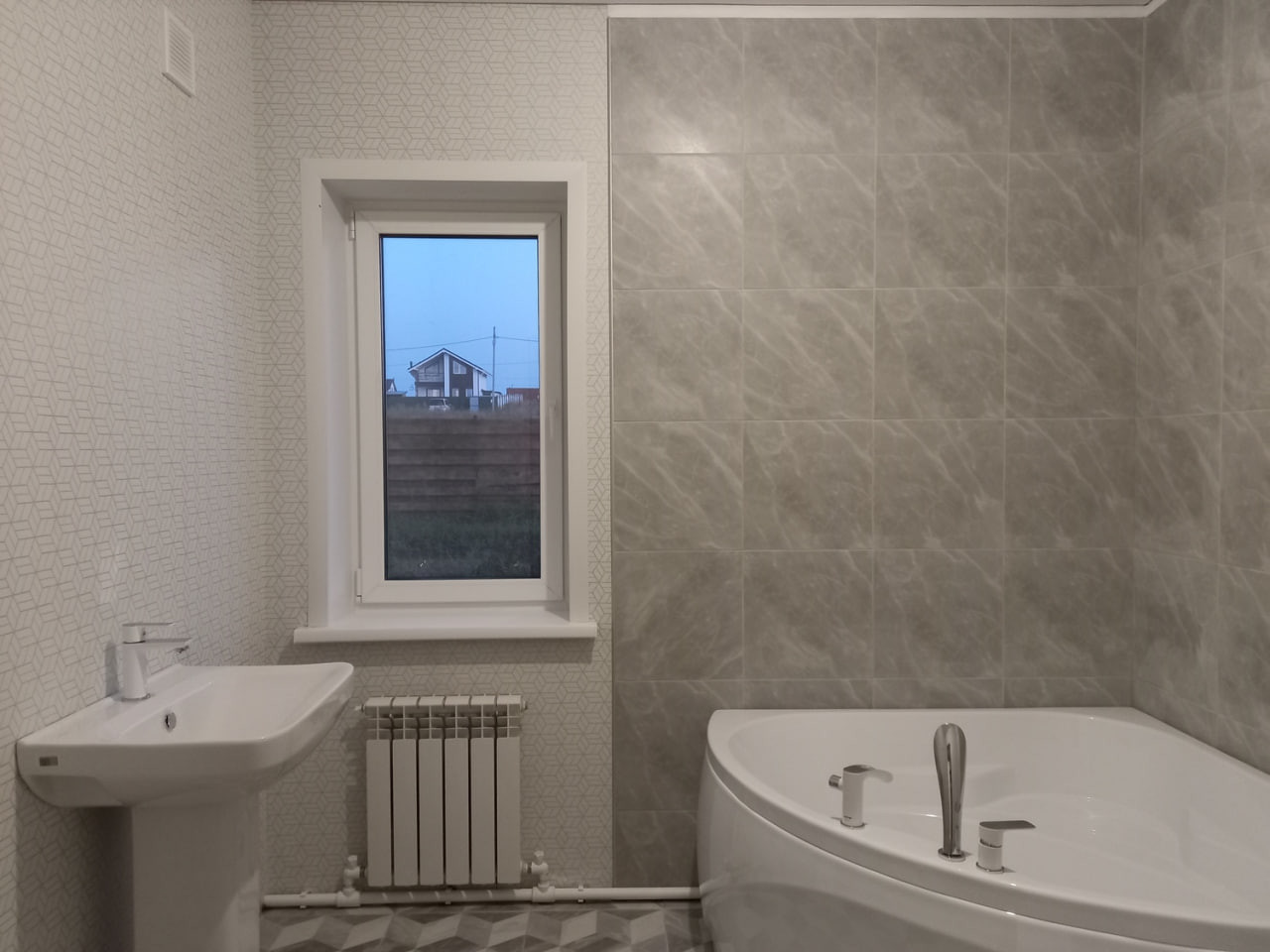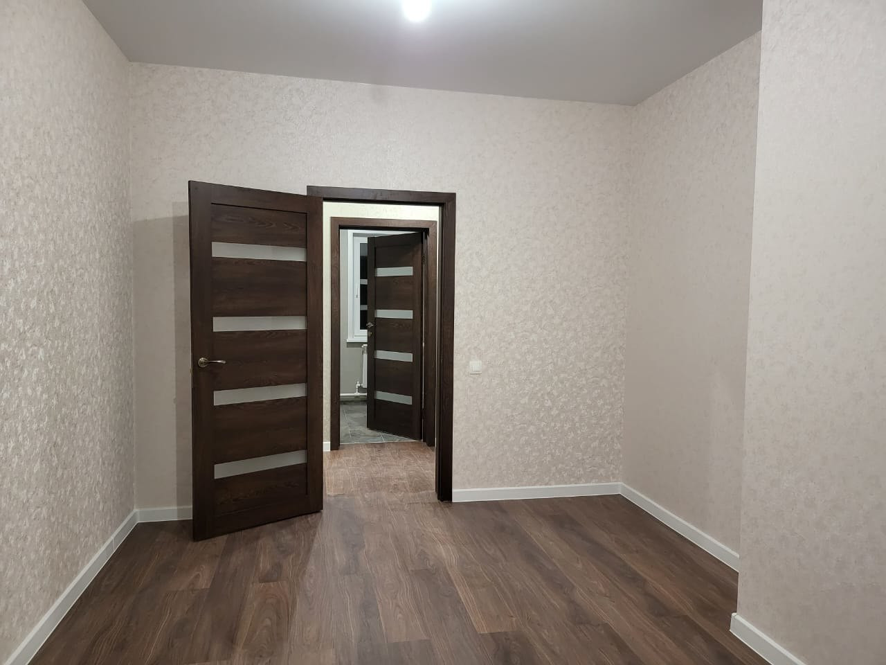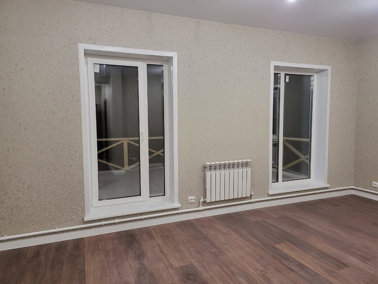 Планировка евро-трешка ( кухня-гостиная ,большая спальня(или зал) и спальня с большим окном выходящим на лицевой фасад), два сунузла.Вся необходимая сантехника установлена (раковины, унитаз, ванна , бойлер) . Выполнен евроремонт с использованием качественных материалов, на полу ламинат, стены выровнены наклеены обои , натяжные потолки со светильниками . На полу керамогранит. Вся электрика сделана из негорючей проводки. Высота потолков почти 2.8 метра.