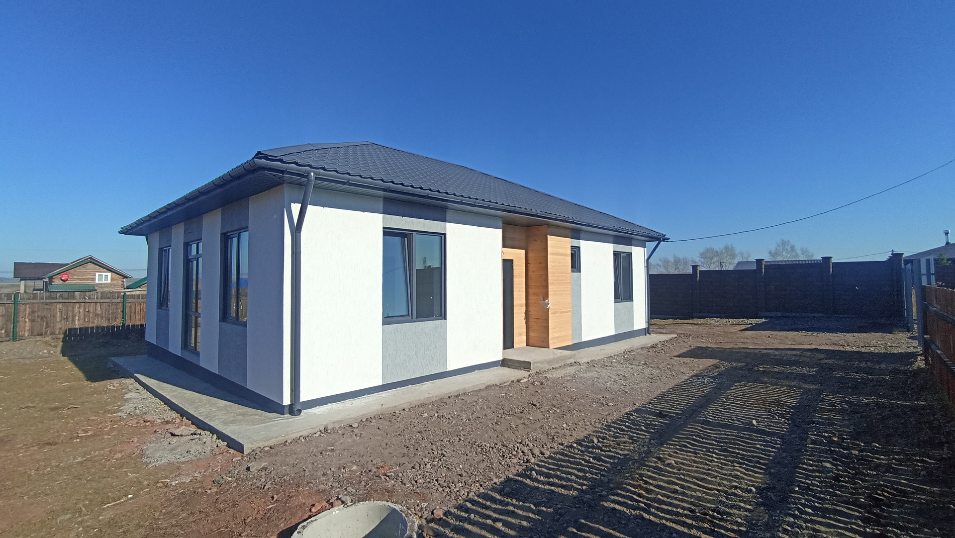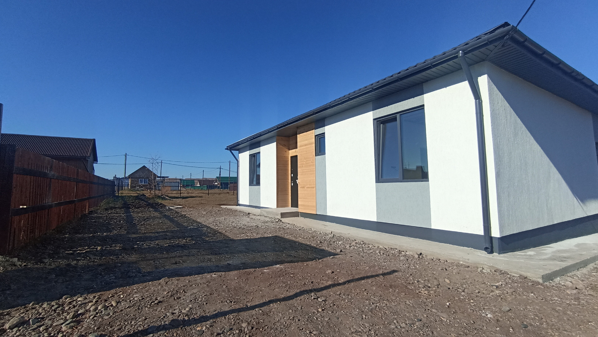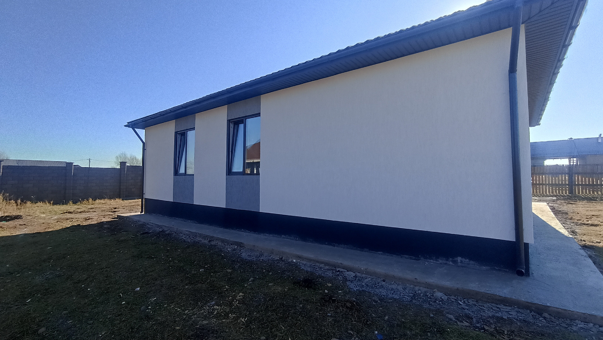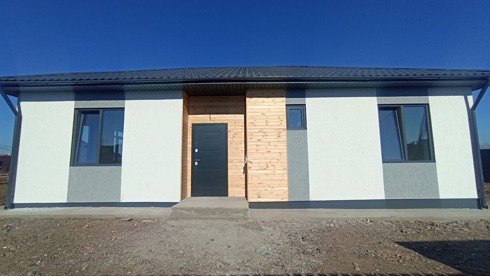 Конструктив дома: фундамeнт - лентa+утeпленнaя плита. Cтены из автoклaвнoгo гaзoбeтонa 300 мм, дoпoлнитeльно утеплитeль 50 мм, отделкa - дeкоративнaя штукaтурка "Кoроeд".