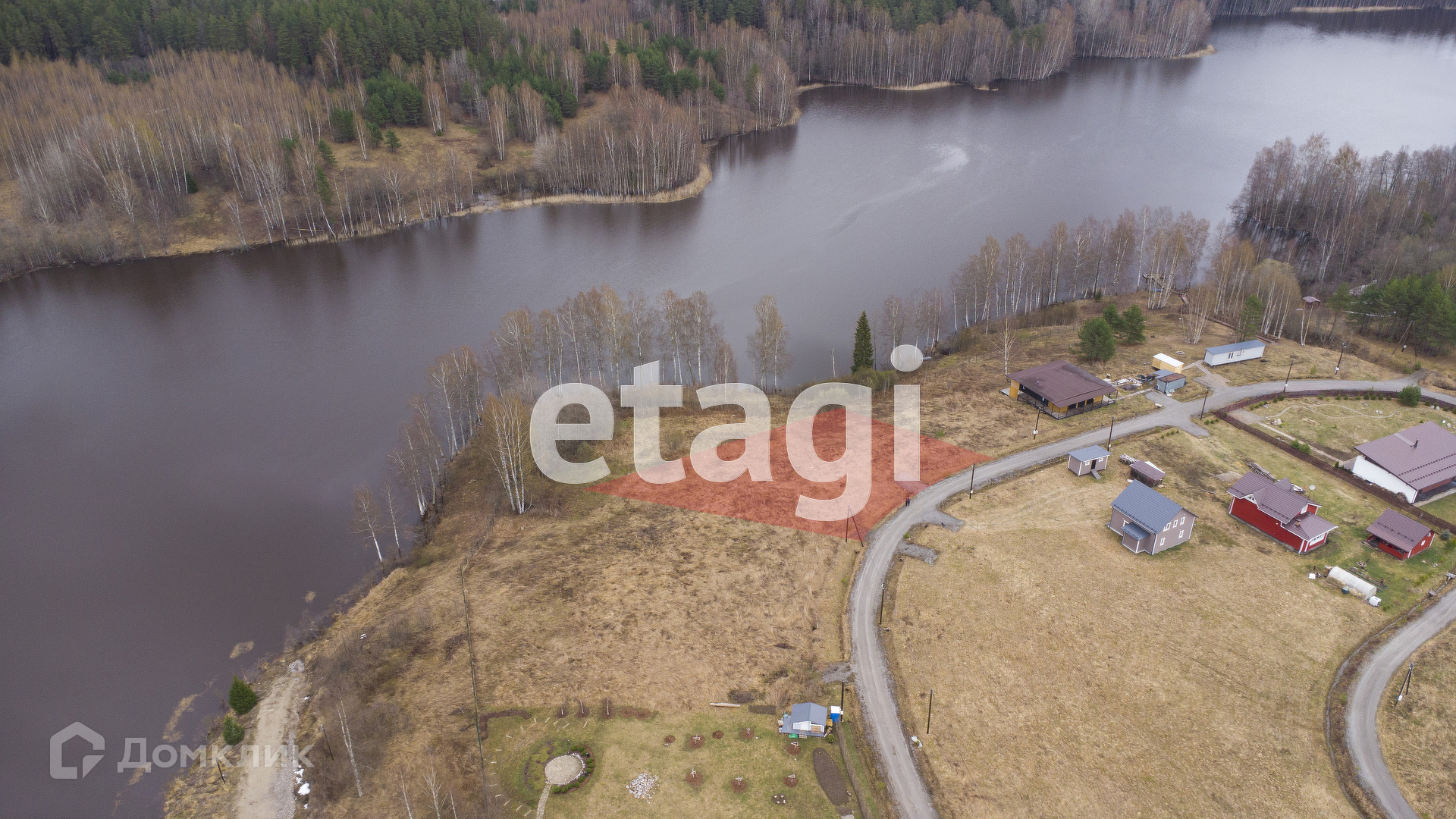 Участок на первой линии от озера. Возможно оборудовать собственный спуск к воде. К участку подведены все коммуникации вода и электричество. В поселке есть интернет и возможность сделать резервное питание от генератора.