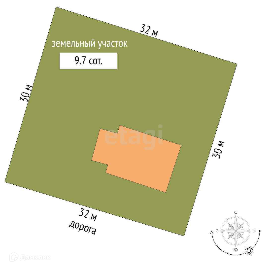 Площадь участка 9.7 сот.