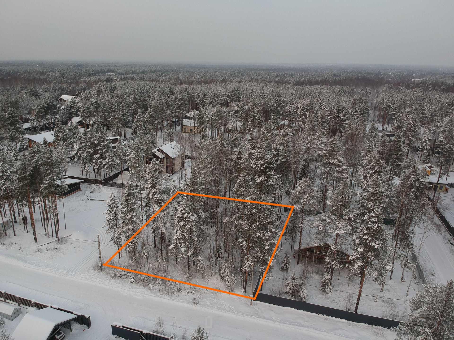 Предлагаю вашему вниманию правильной формы участок 12 соток в обжитом посёлке бизнес класса находящемся в окружении леса. На участке деревья, ель, сосна.