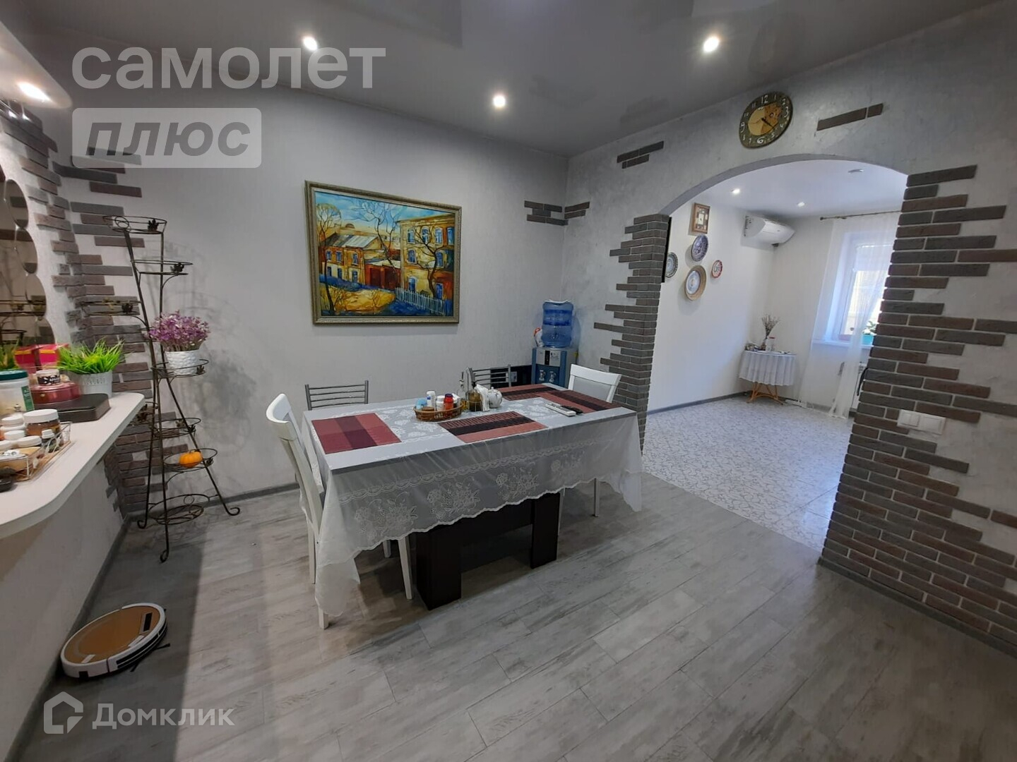 - Отделка В доме выполнен качественный ремонт. На окнах 2х-камерные стеклопакеты и рольставни. Натяжные потолки. Напольное покрытие на первом этаже - плитка (тёплые полы), гостиная - ламинат, второй этаж - ковролин. На 1-ом этаже 1 с/у с душевой кабиной и гигиеническим душем и ванная комната с ванной и душем, на 2-ом этаже с/у с биде. С/узлы первого этажа в плитке. Фартук кухни, также, оформлен плиткой. Столовая зона декорирована зеркальными сотами и камнем с подсветкой.
