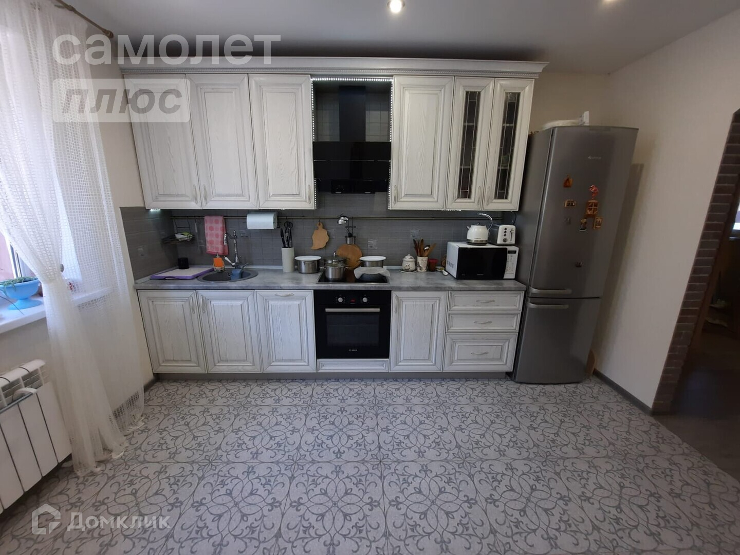 - Кухонный гарнитур со встроенной плитой, духовым шкафом, посудомоечной машиной и холодильником, стиральная машина, сплит-системы остаются будущим хозяевам дома.