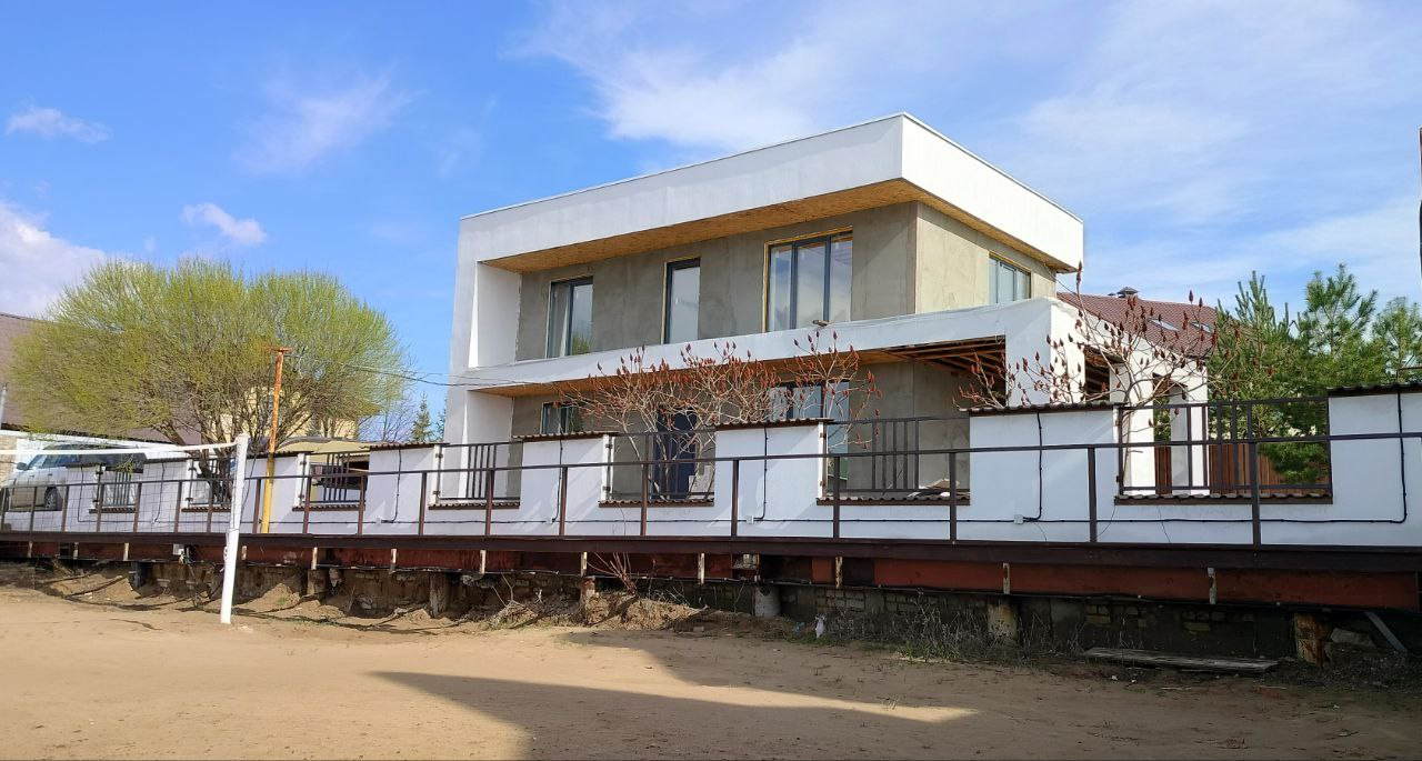 Современный, продуманный проект - оптимальное соотношение размера и количества жилых площадей. Дом стоит в уникальном месте: берег Волги, чистый пляж, собственный спуск для катера.