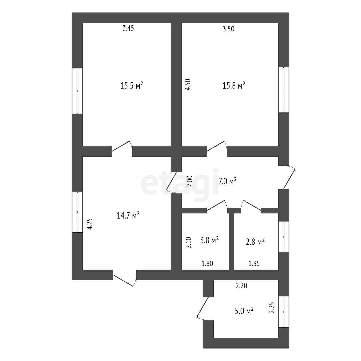 Общая площадь дома 65 кв.м.
