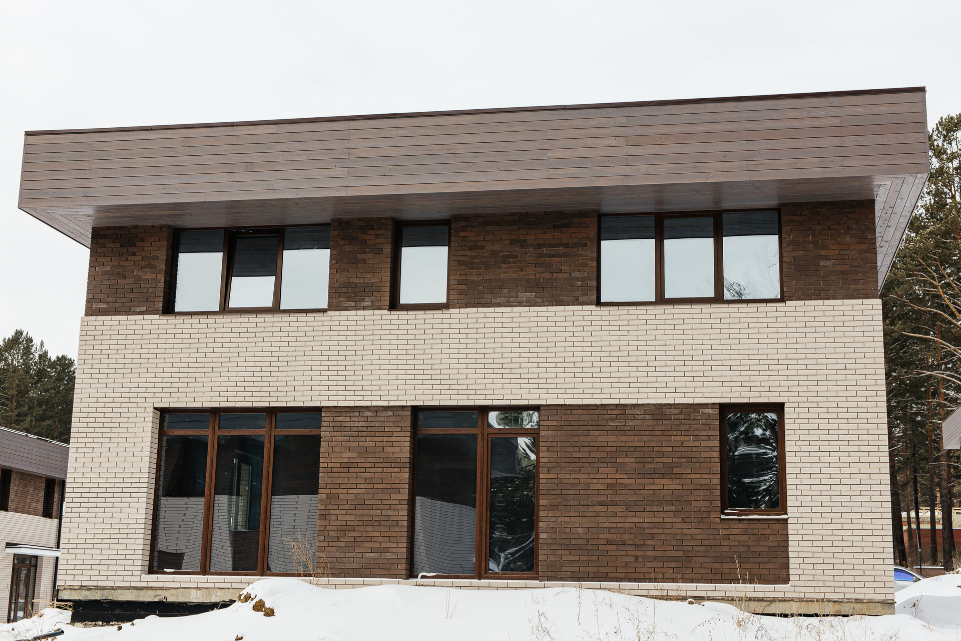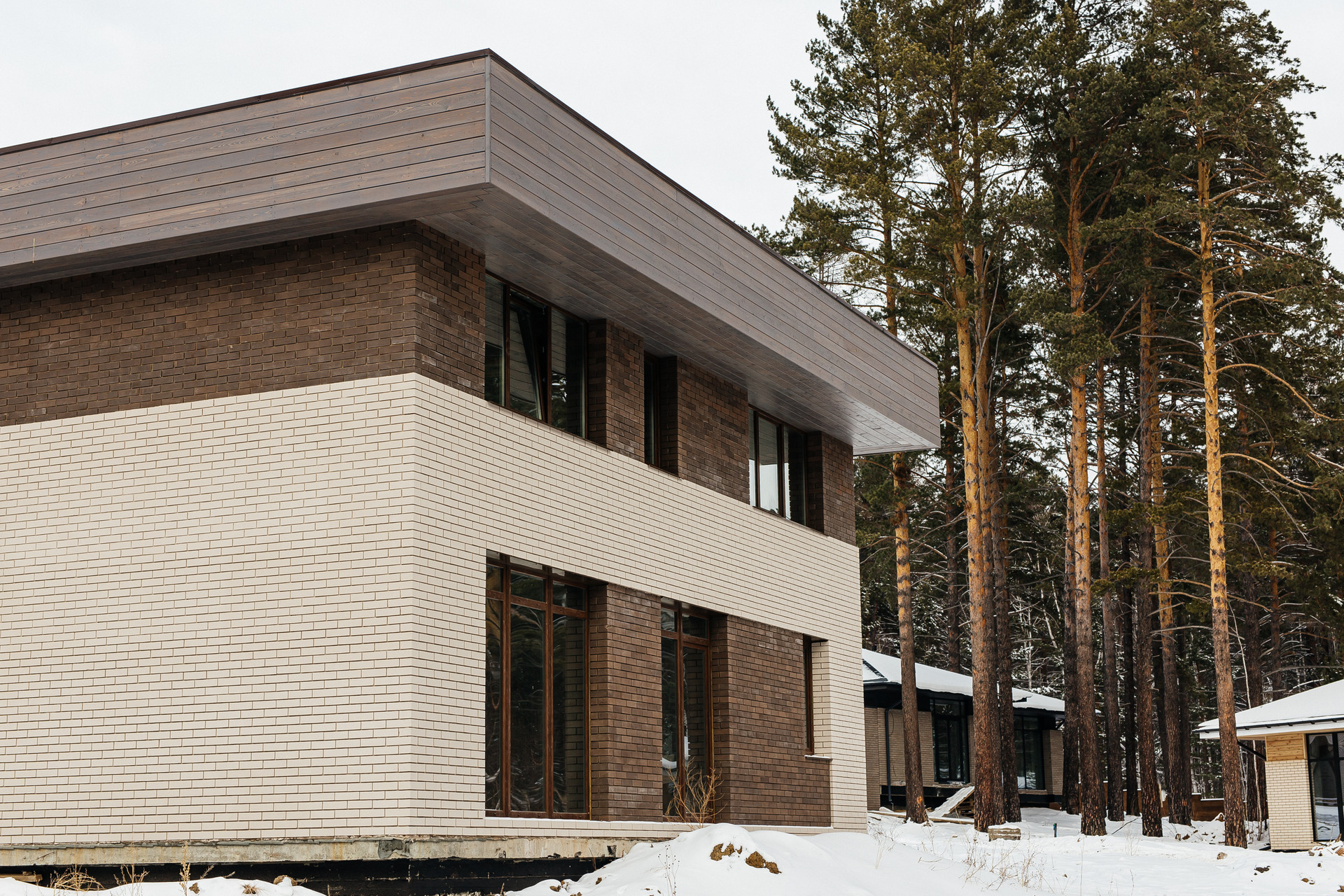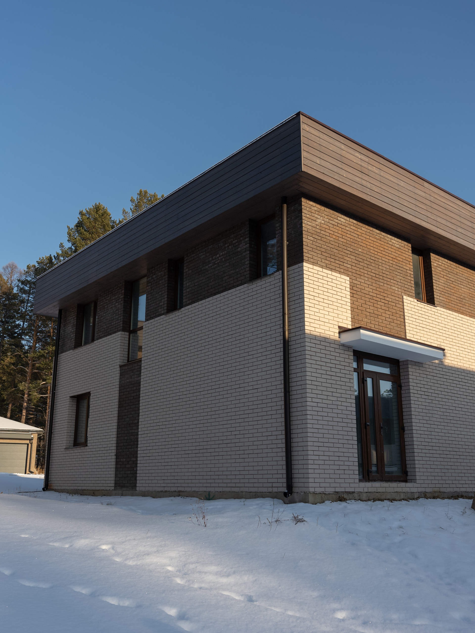 • Облицовка кирпич и лиственничный планкен