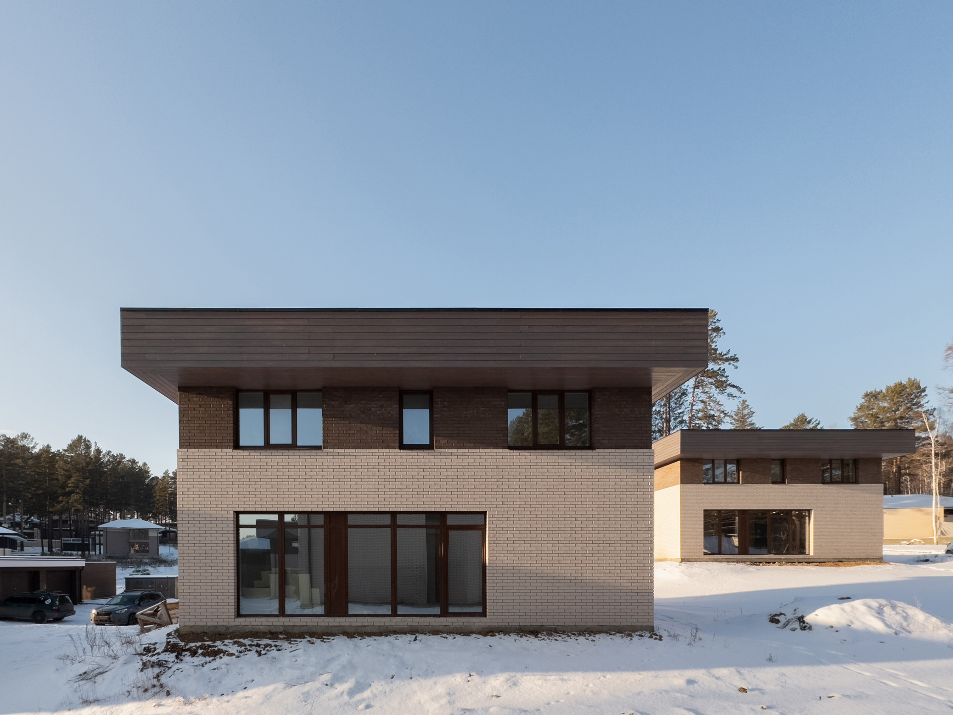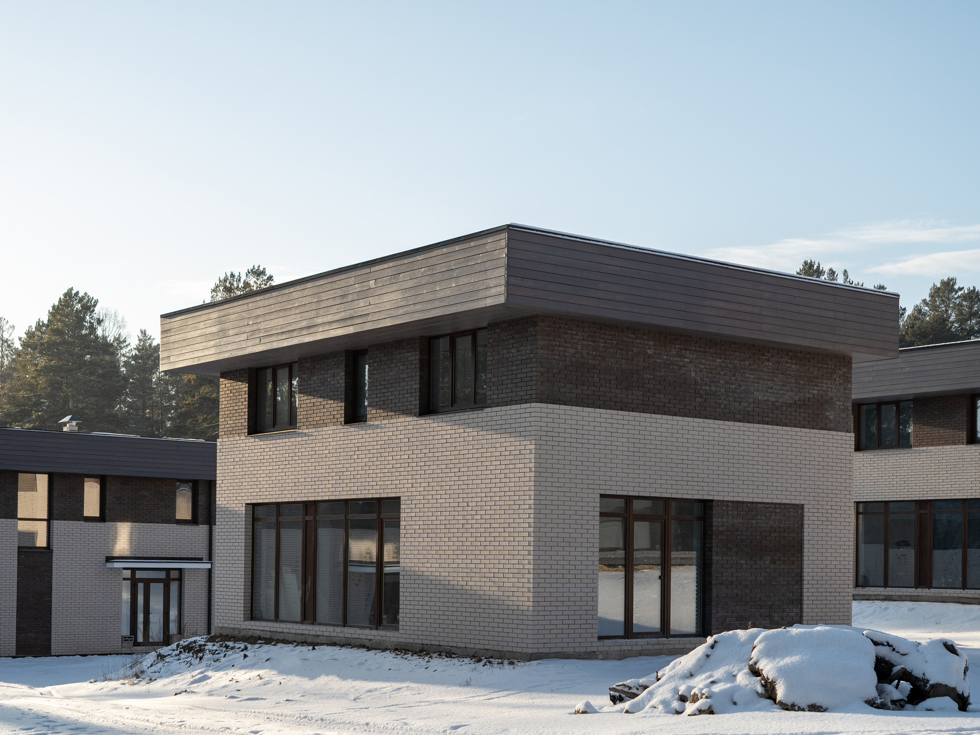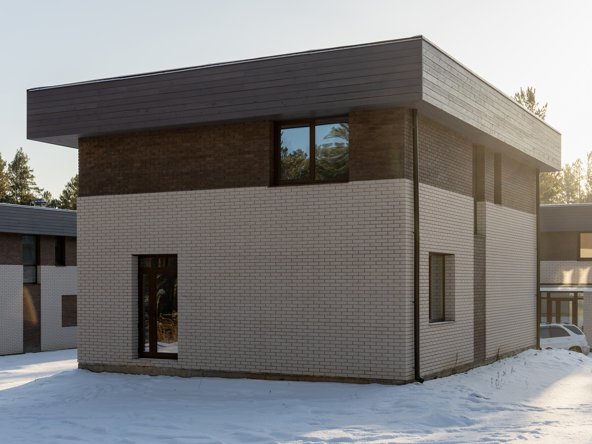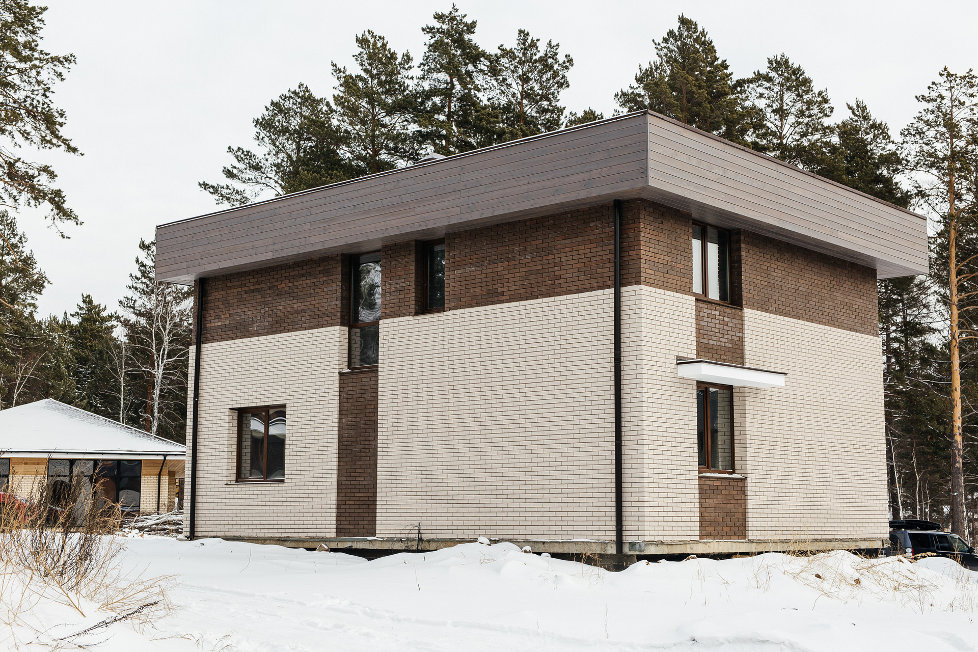 • Облицовка кирпич и лиственничный планкен