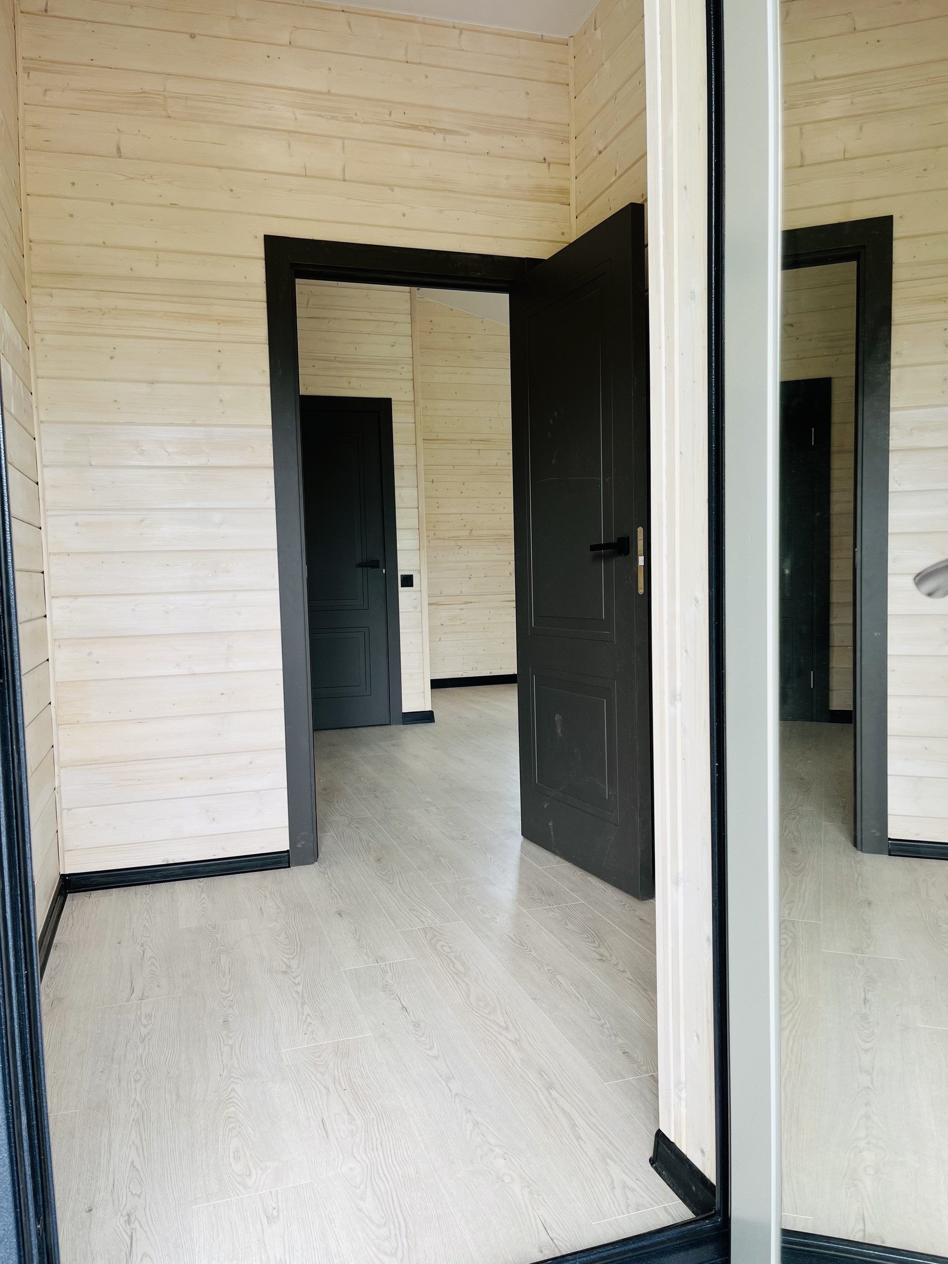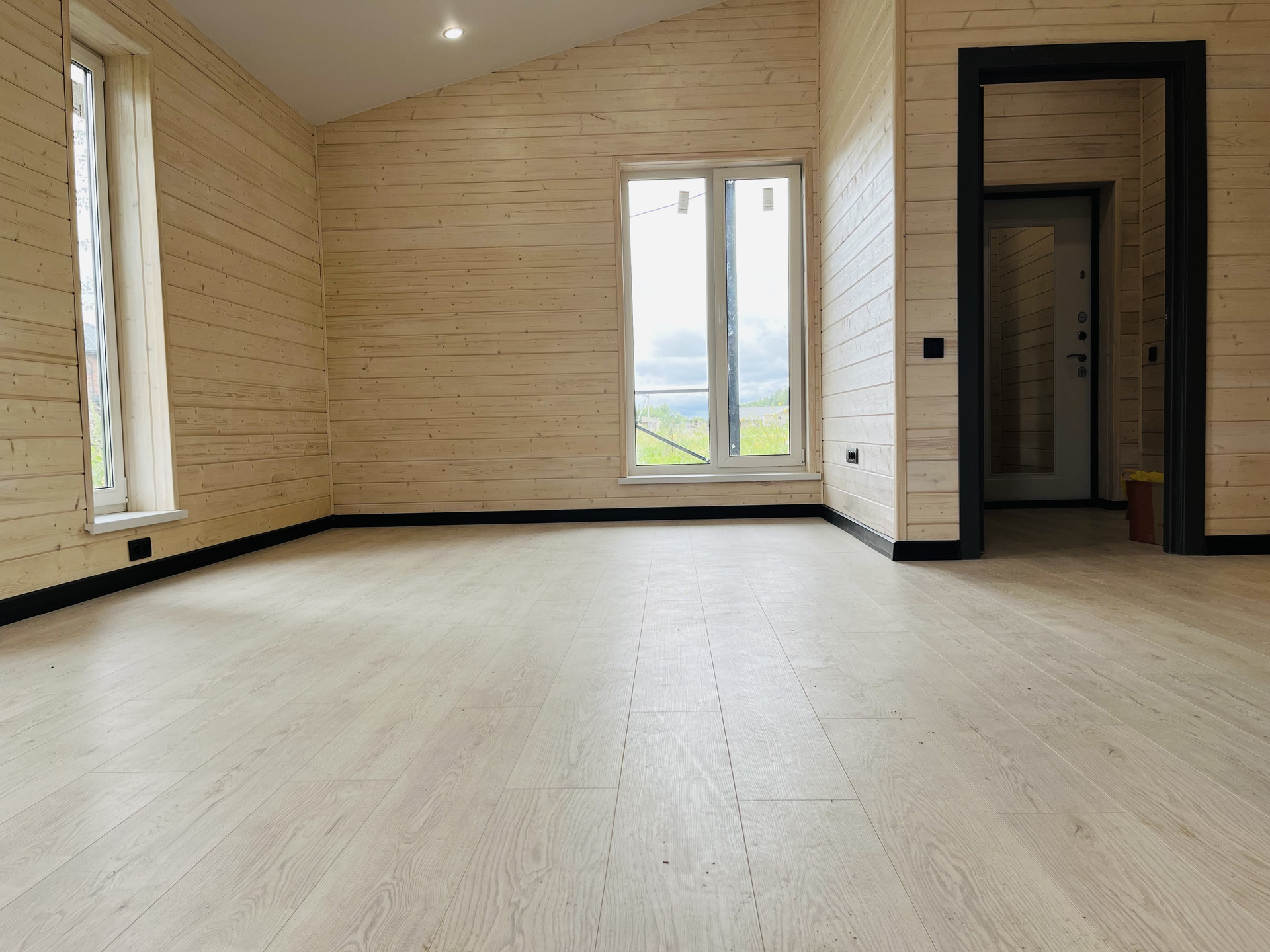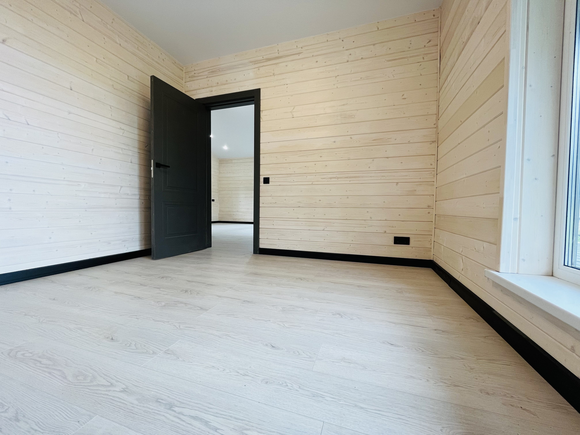 12.    Отделка имитация бруса покрашена в прозрачный белый цвет