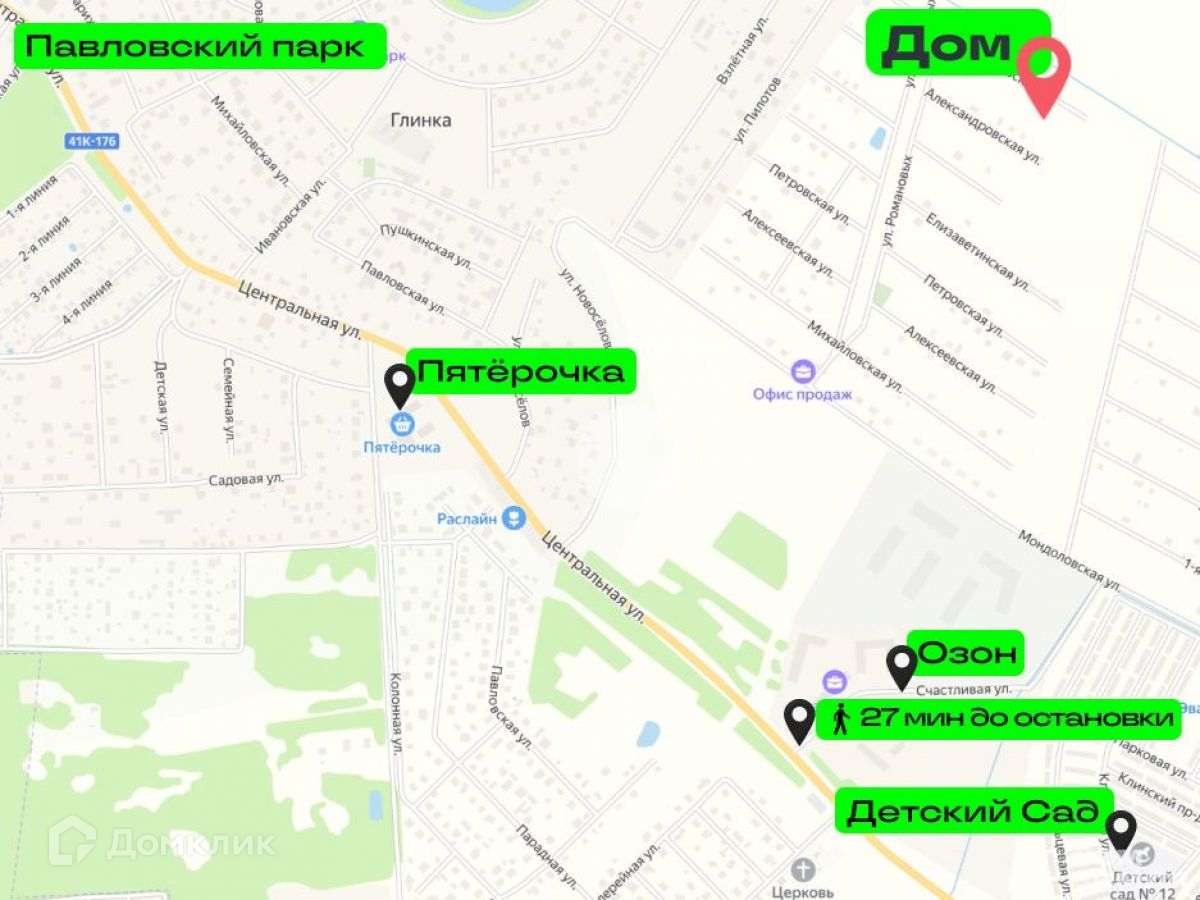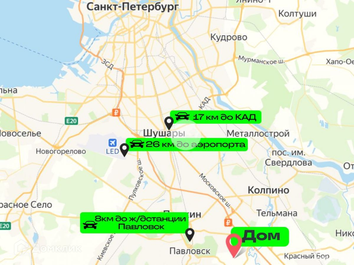 Транспортная доступность:20 минут от КАД по Московскому шоссе35 минут на электричке с Витебского вокзала до Павловска и 20 минут от вокзала Павловска 493, 521, 618 автобусы1 час на автобусе 521 от станции метро Купчино до поселка1 км до Павловска6 км до ЖД Павловскдо аэропорта Пулково не более 25 минут40 минут до центра города